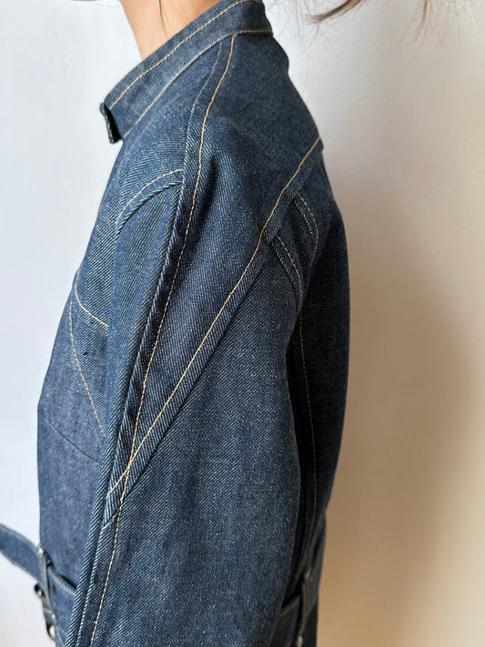 Circa 1940s Mont Saint Michel Blue Moleskin Firefighter Jacket