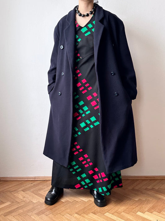90s cashmere mix double breast navy coat