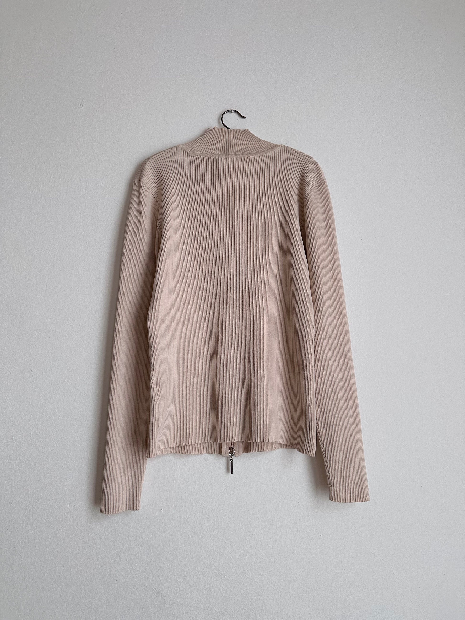 シルクの入った柔らかな素材の細かい縦リブマテリアル。