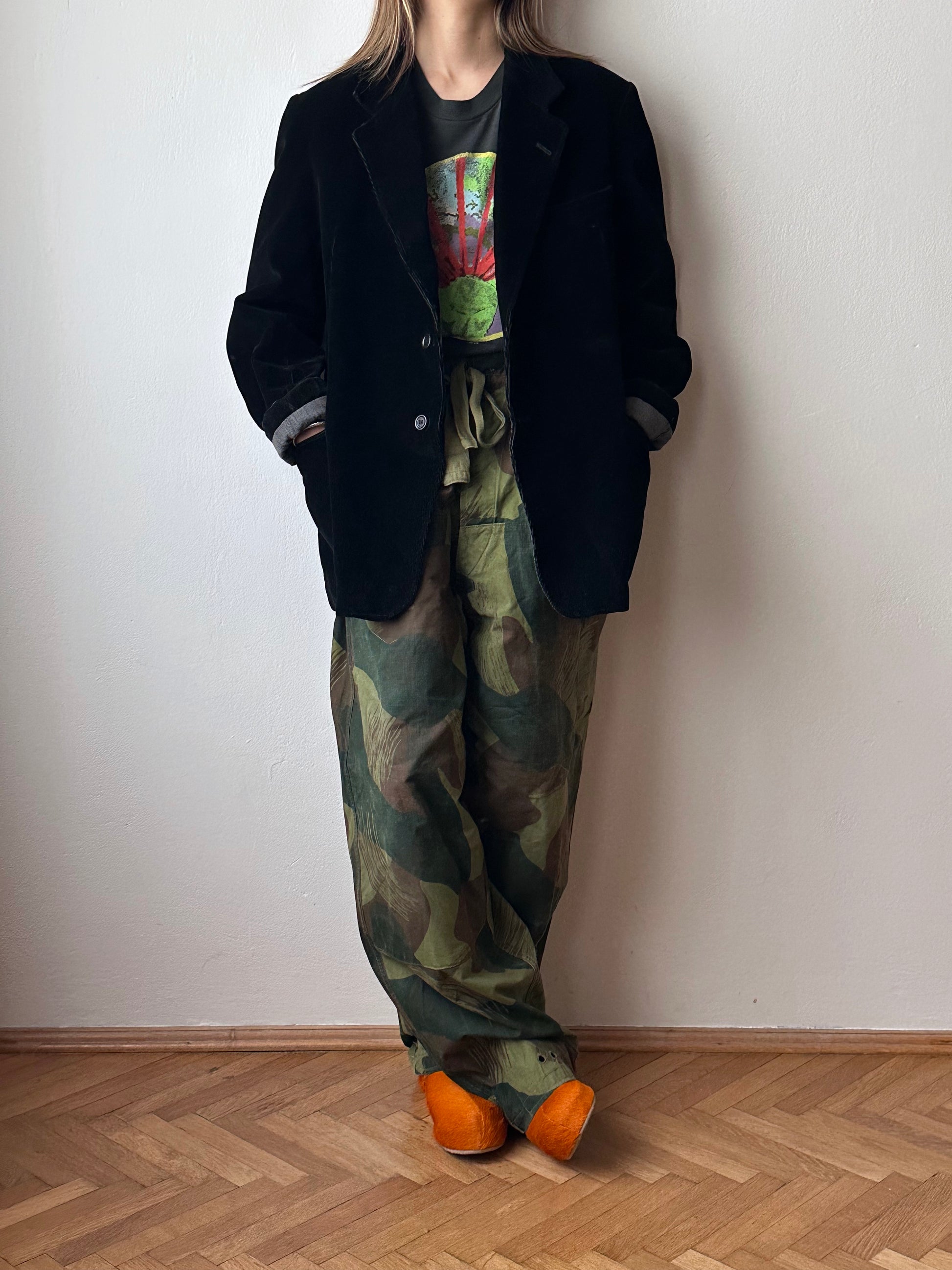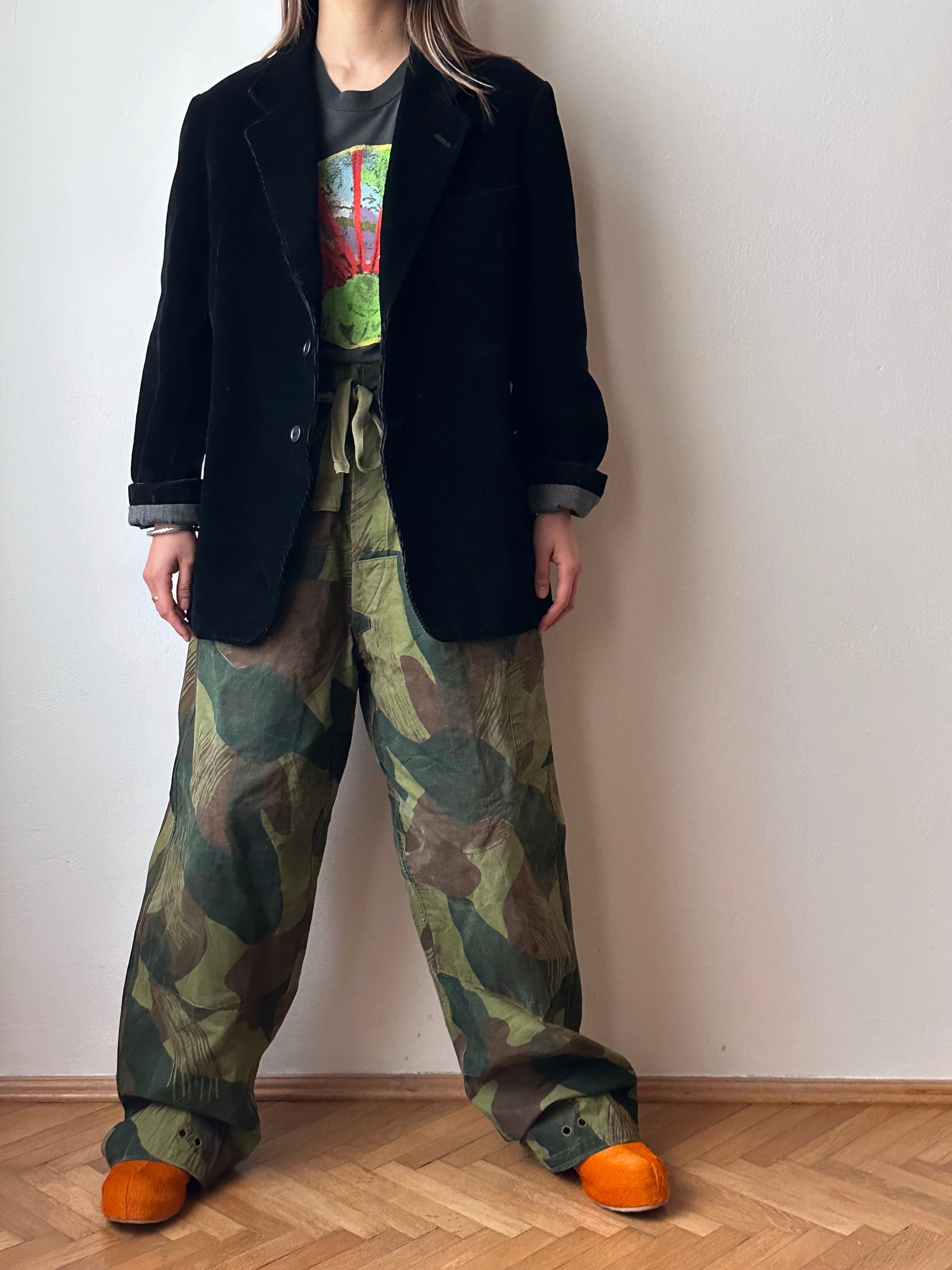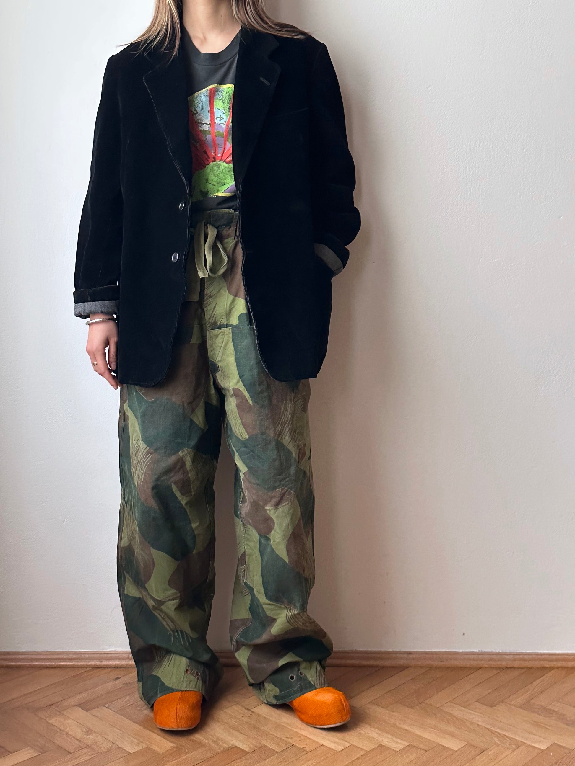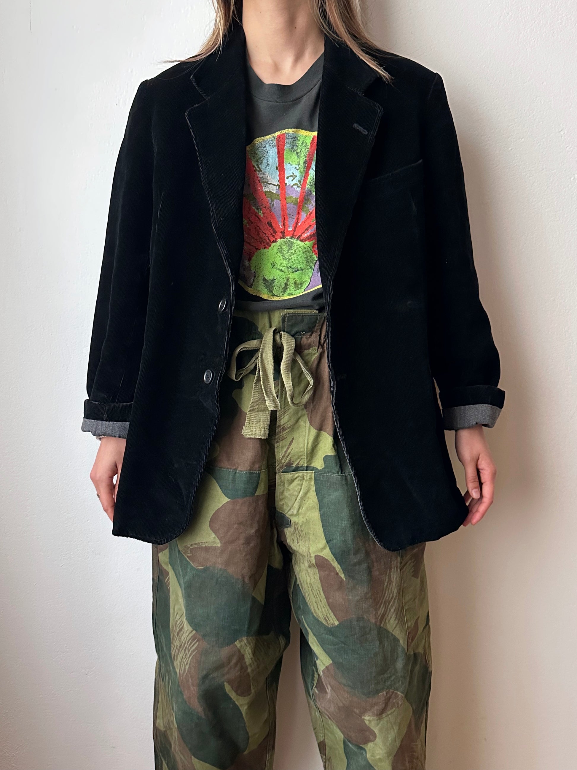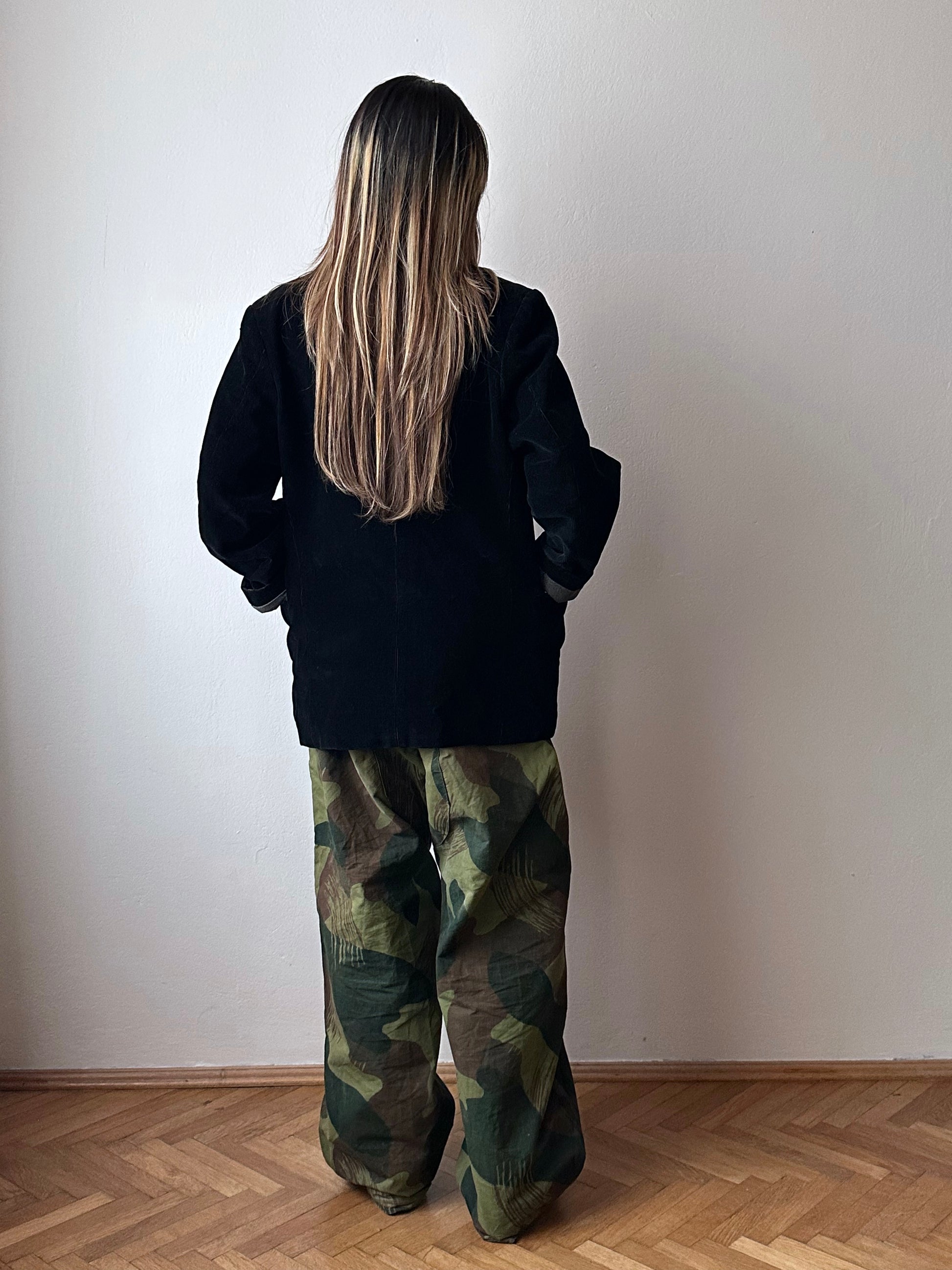 生地はコットン100の肉厚なコーズ、恐らくですが古いフレンチのハンティングの生地で間違いないです、裏地はコットンヘリンボーン、贅沢すぎる。笑