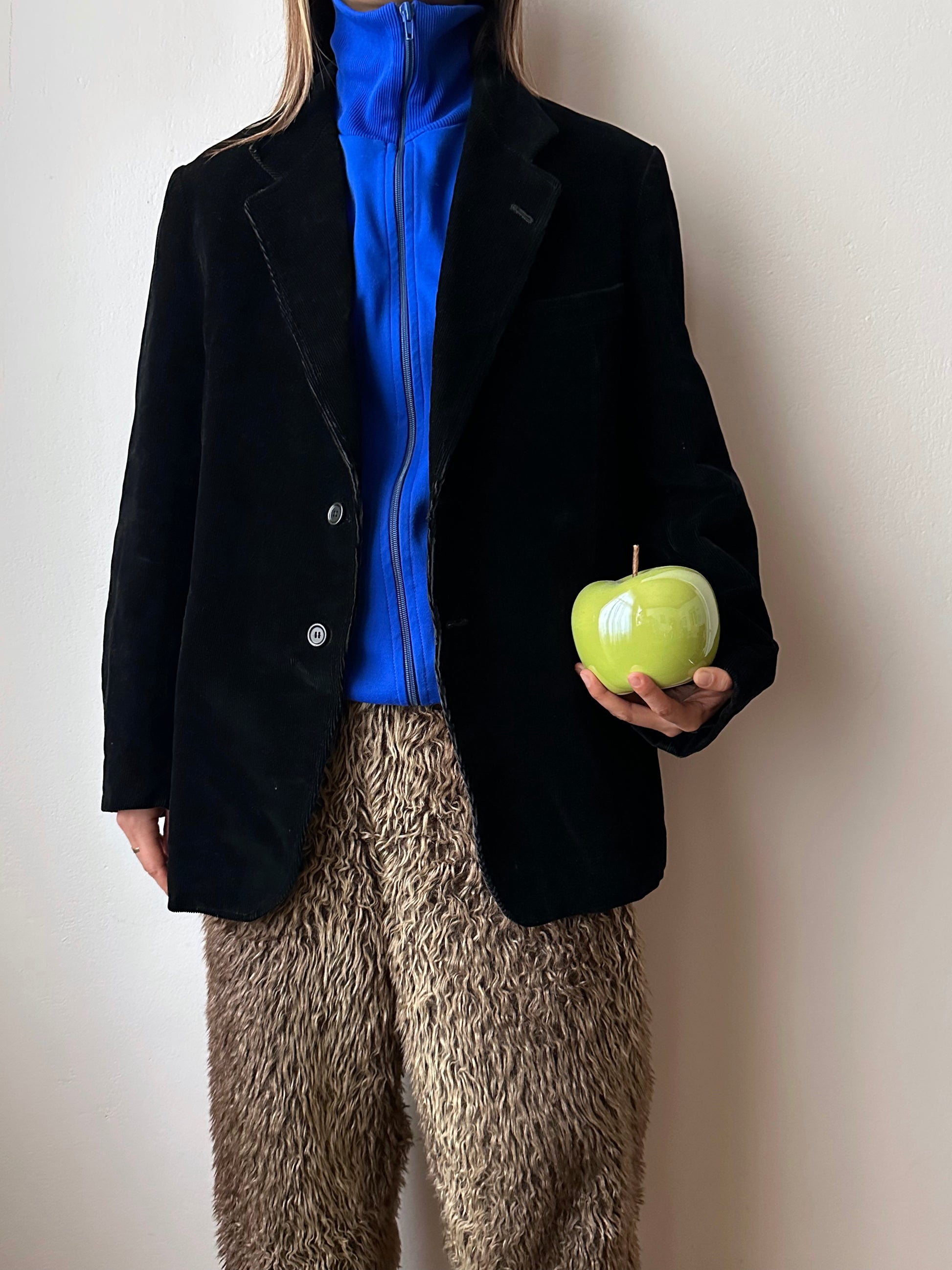一見ただの真っ黒いコーズのテーラードのように見えますが、のんのんのん。