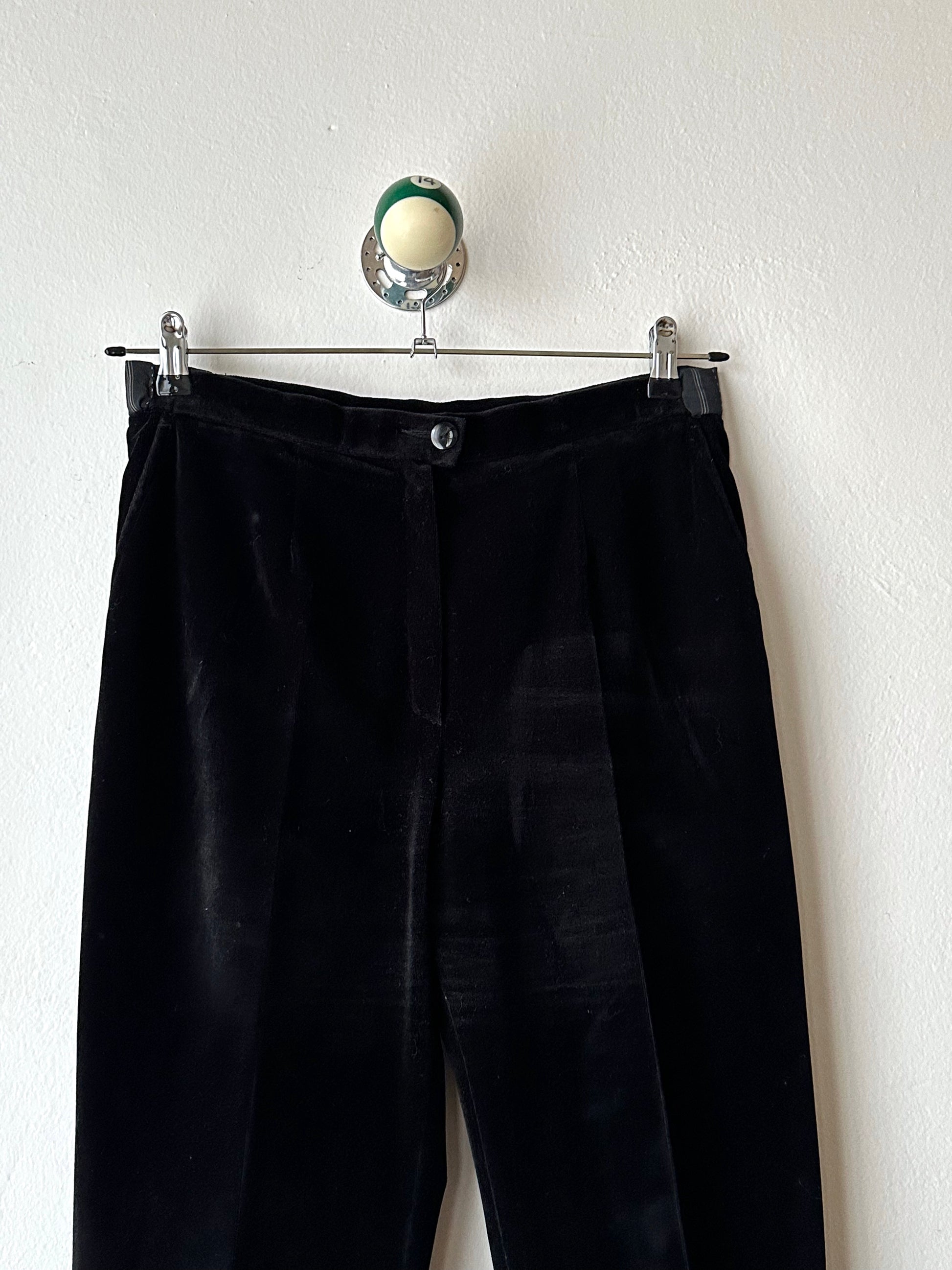 1990s French Black faux velour trousers - w29