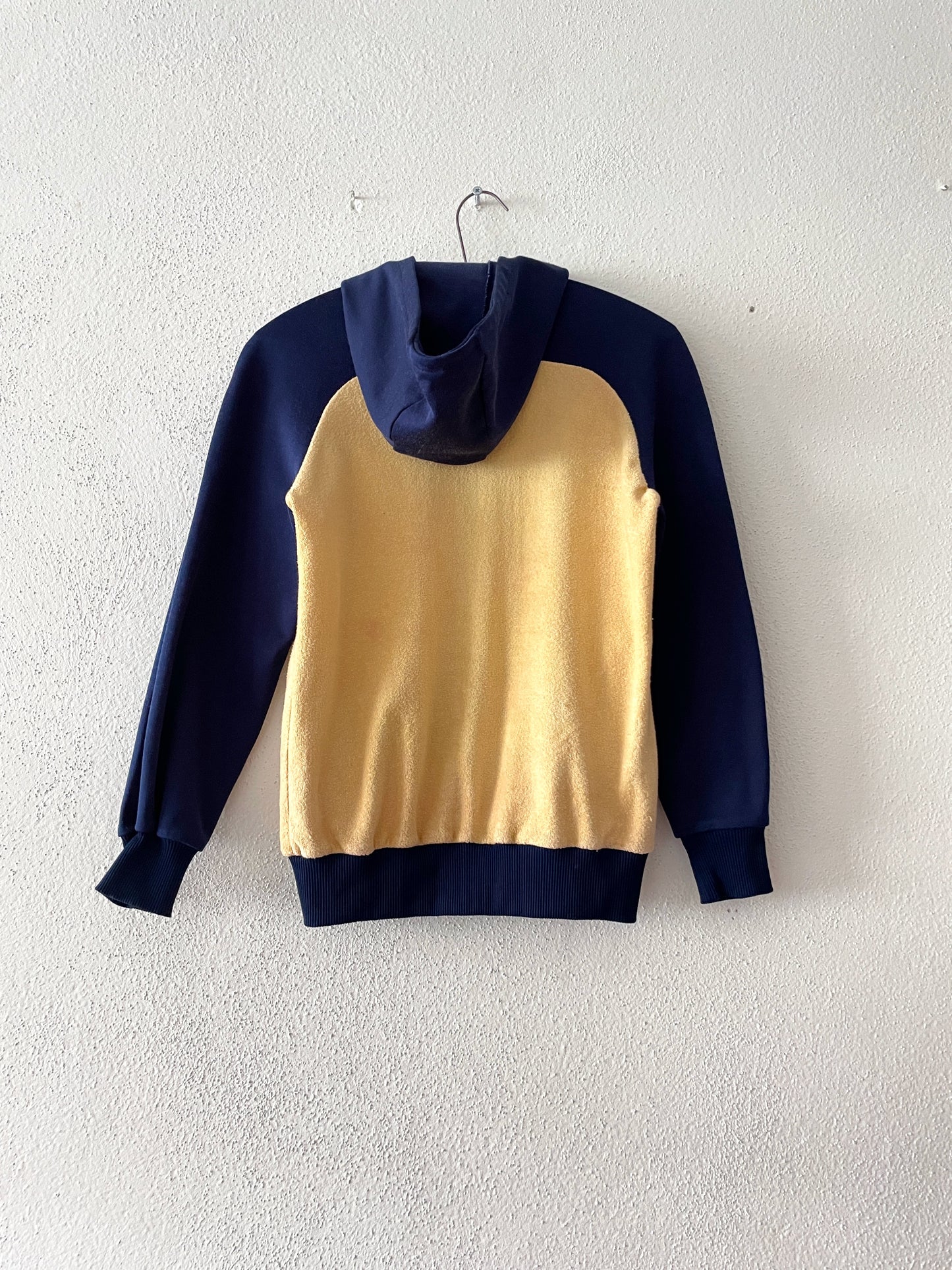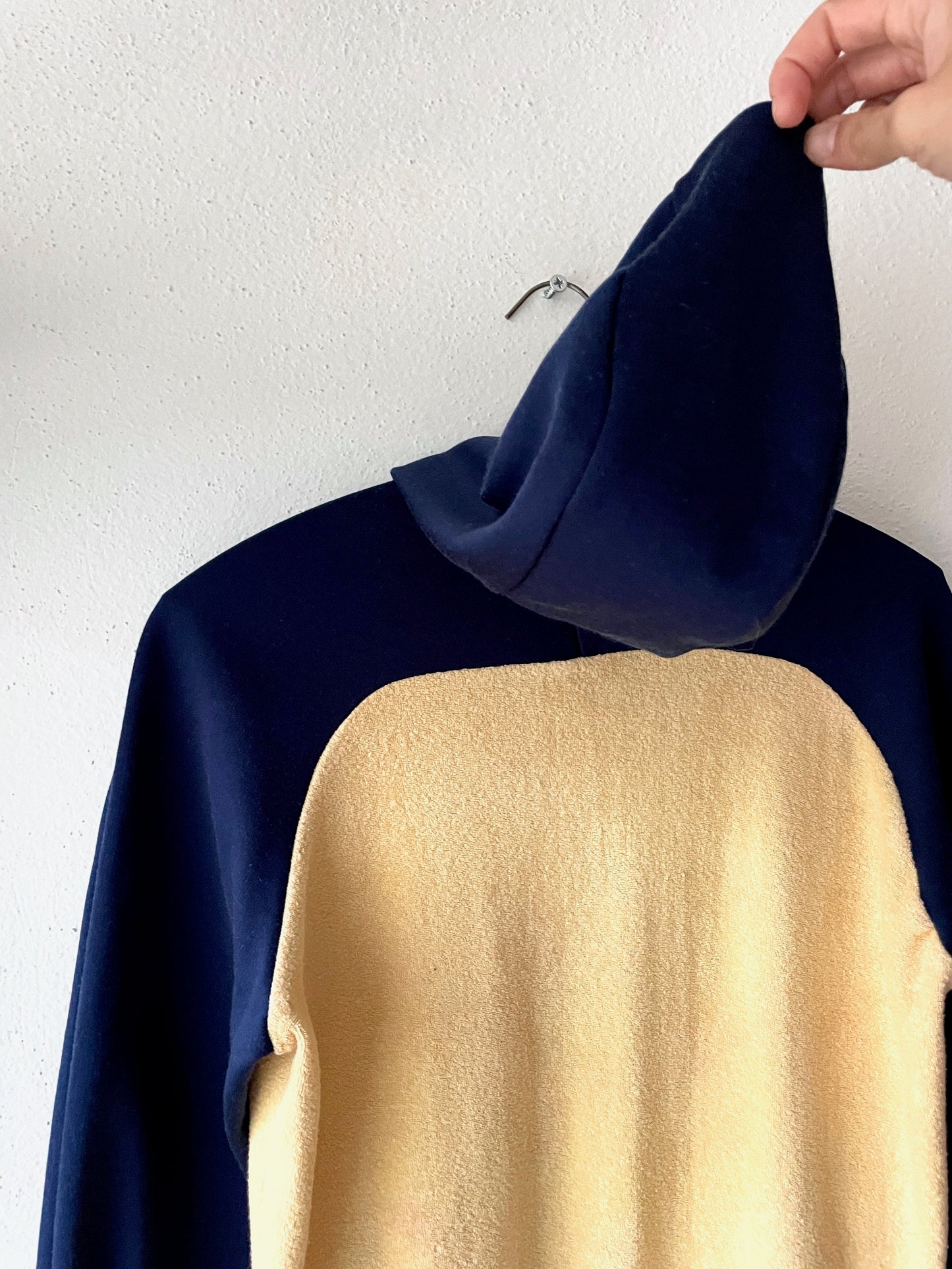 アイボリーのパイルに、ネイビーの体操服ジャージ素材のミックス。