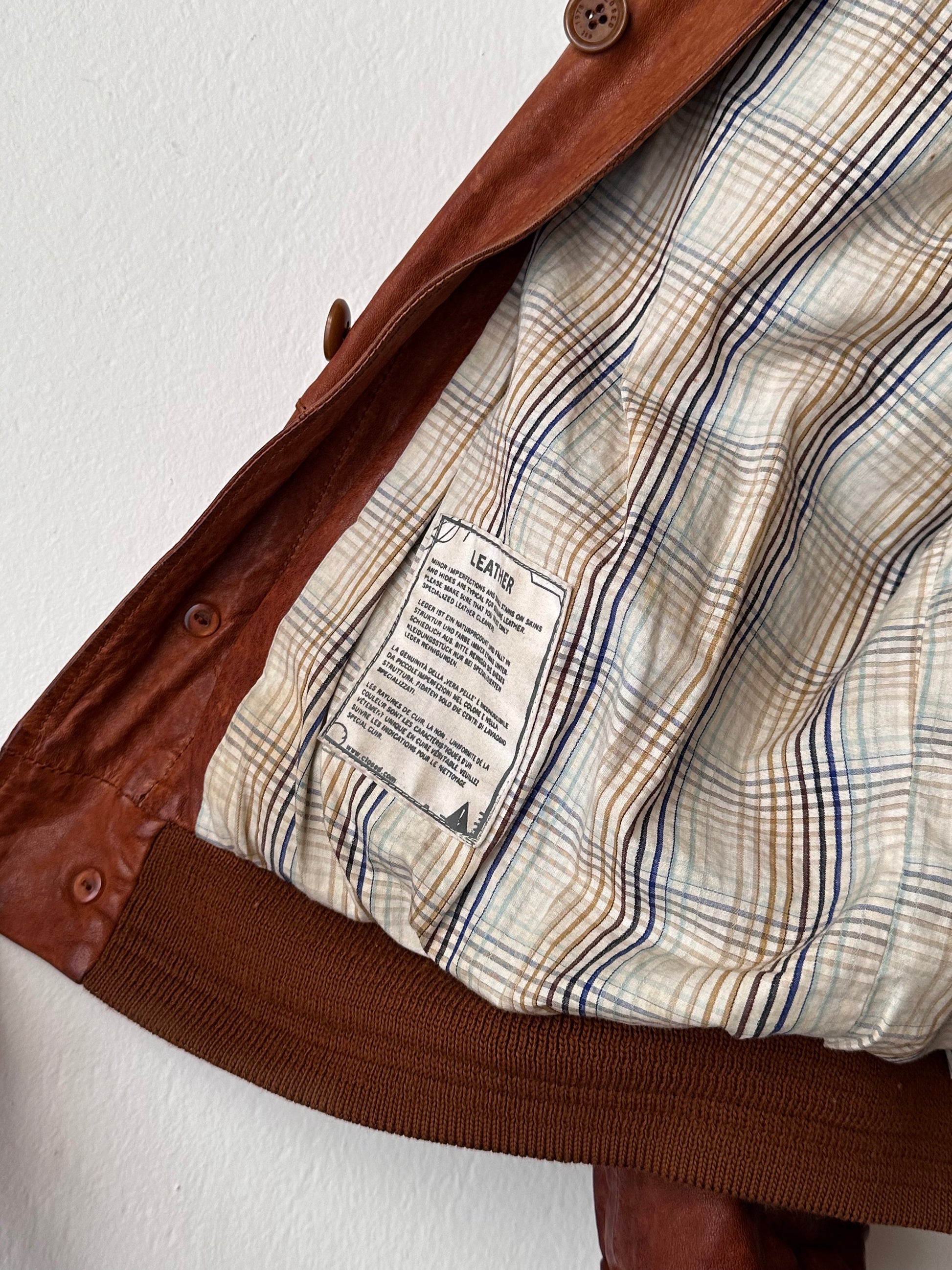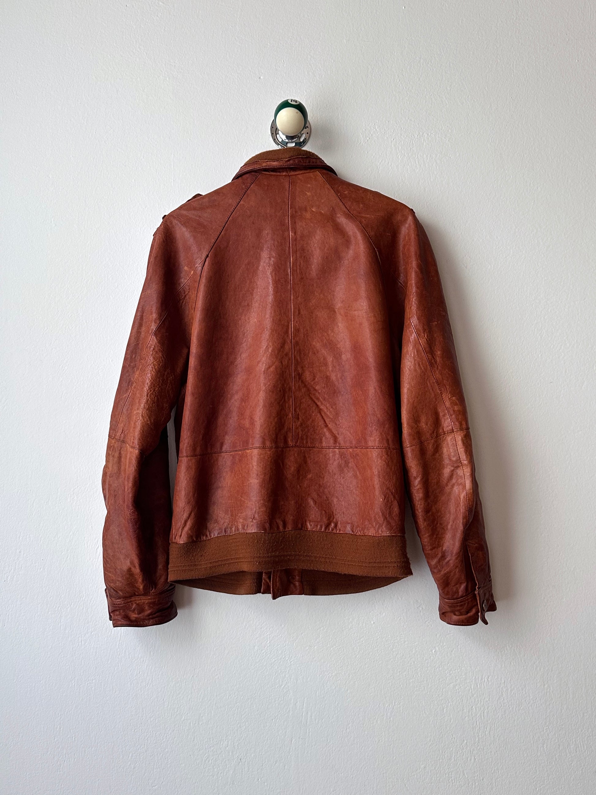 年をとるに連れて年々ブラウンのレザーが好きになってます、特に今回とかめっちゃイタリアンなレザージャケット。ニットの使い方とかエポレットとかポッケとかもろもろ。薄いジーンズにアディダス履いてパーカーの上にこのレザージャケットとか着てそう。