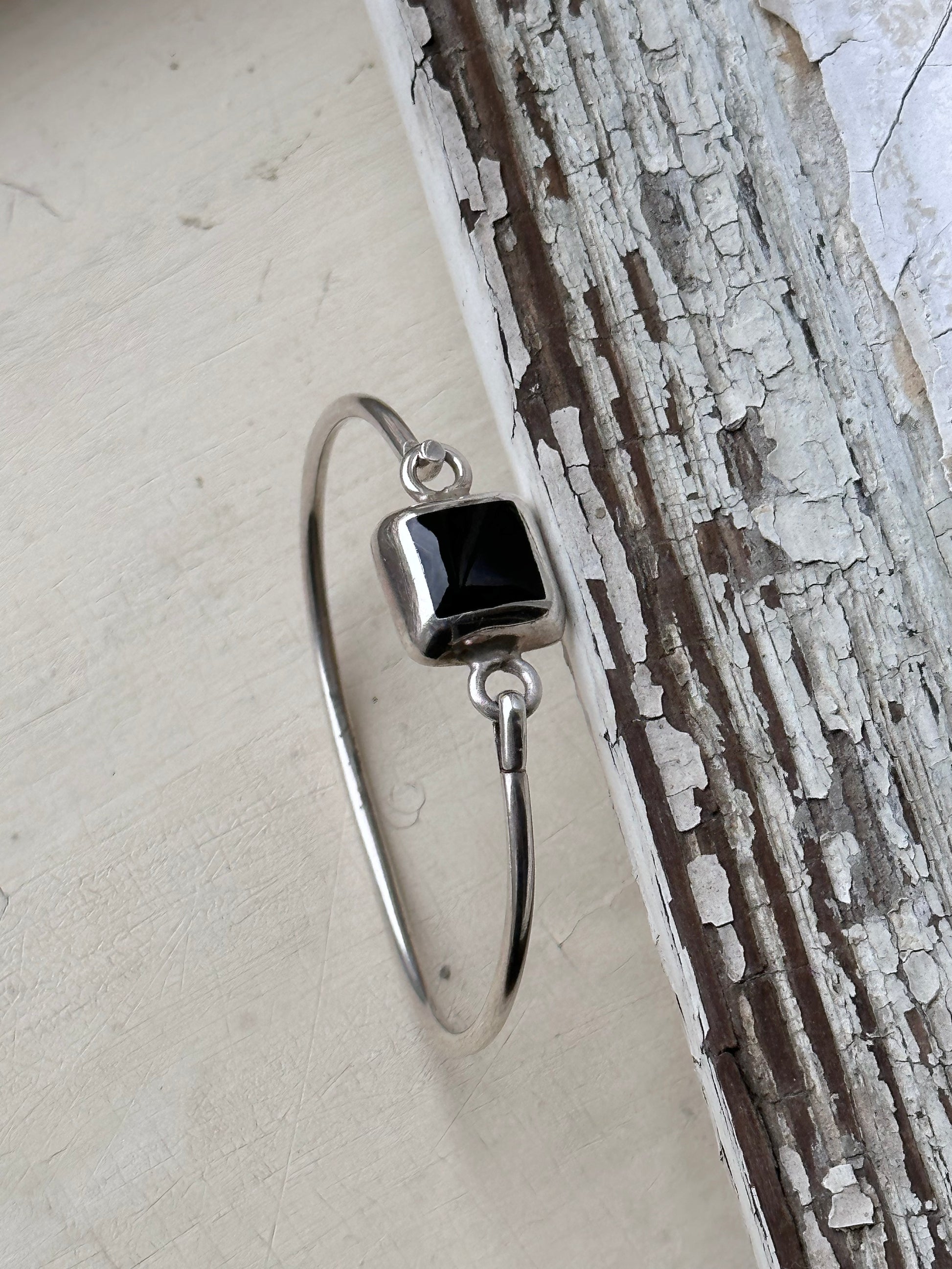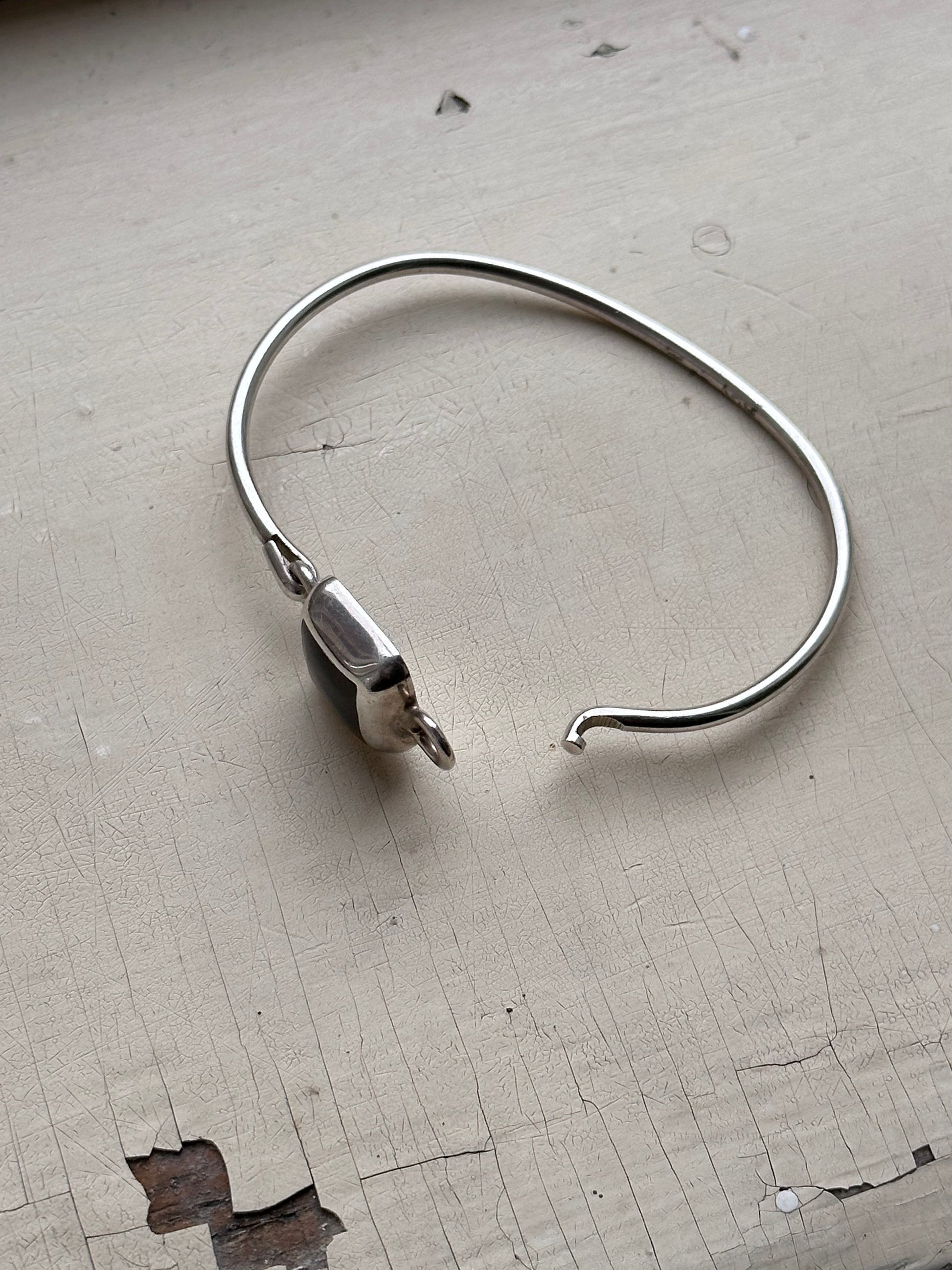細い一本のワイヤのようなバングルの中央に、
