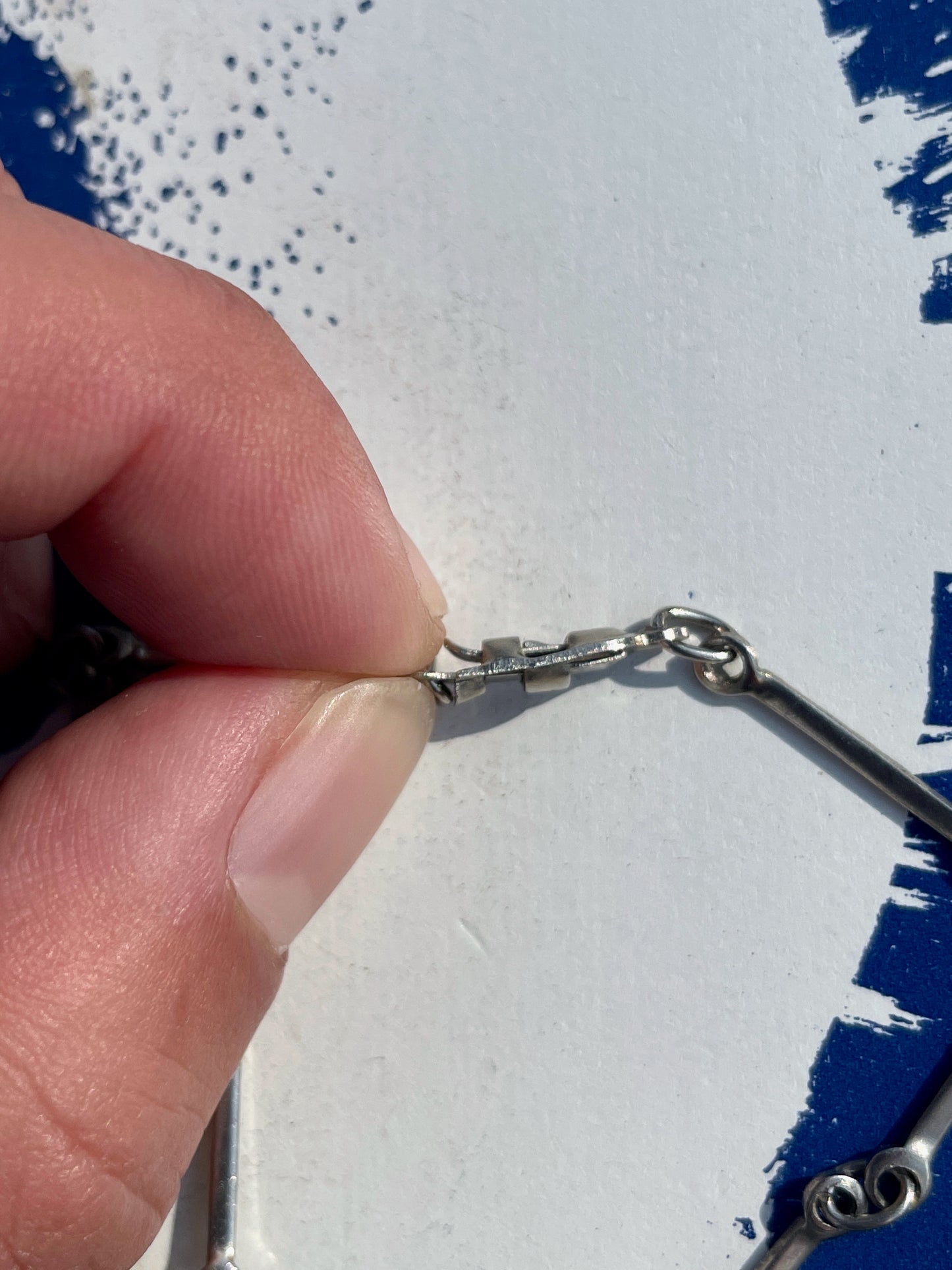 光沢のない渋い光り方で、シルバーやゴールドのほかのアクセサリーともとても合うと思います。