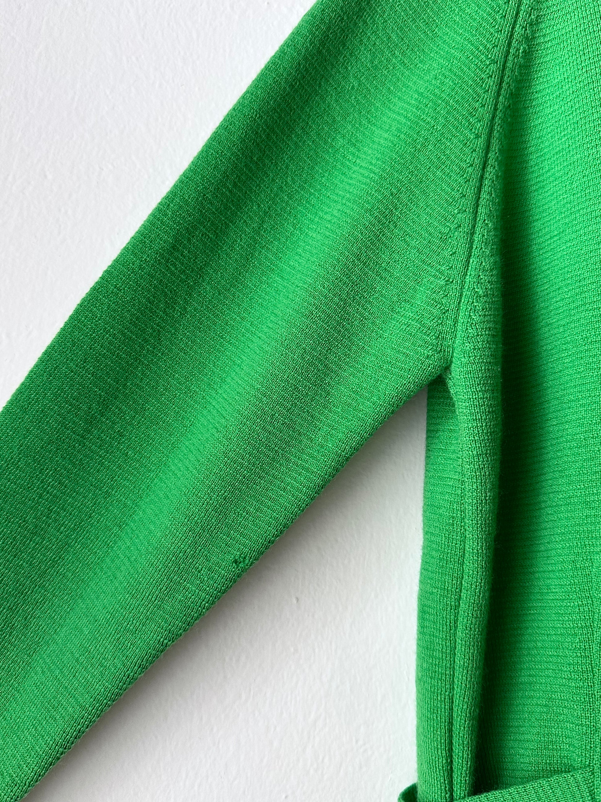 丁寧な作りやデザインもそうですが、特にこのニットは現代では再現すらできない、50年代のイタリアの最高峰の技術を感じます。高密度ながら、ふっくらとした立体感、そしてこの発色。一見ウールとは思えないほどスポーティーな、ジャージーのような素材です。