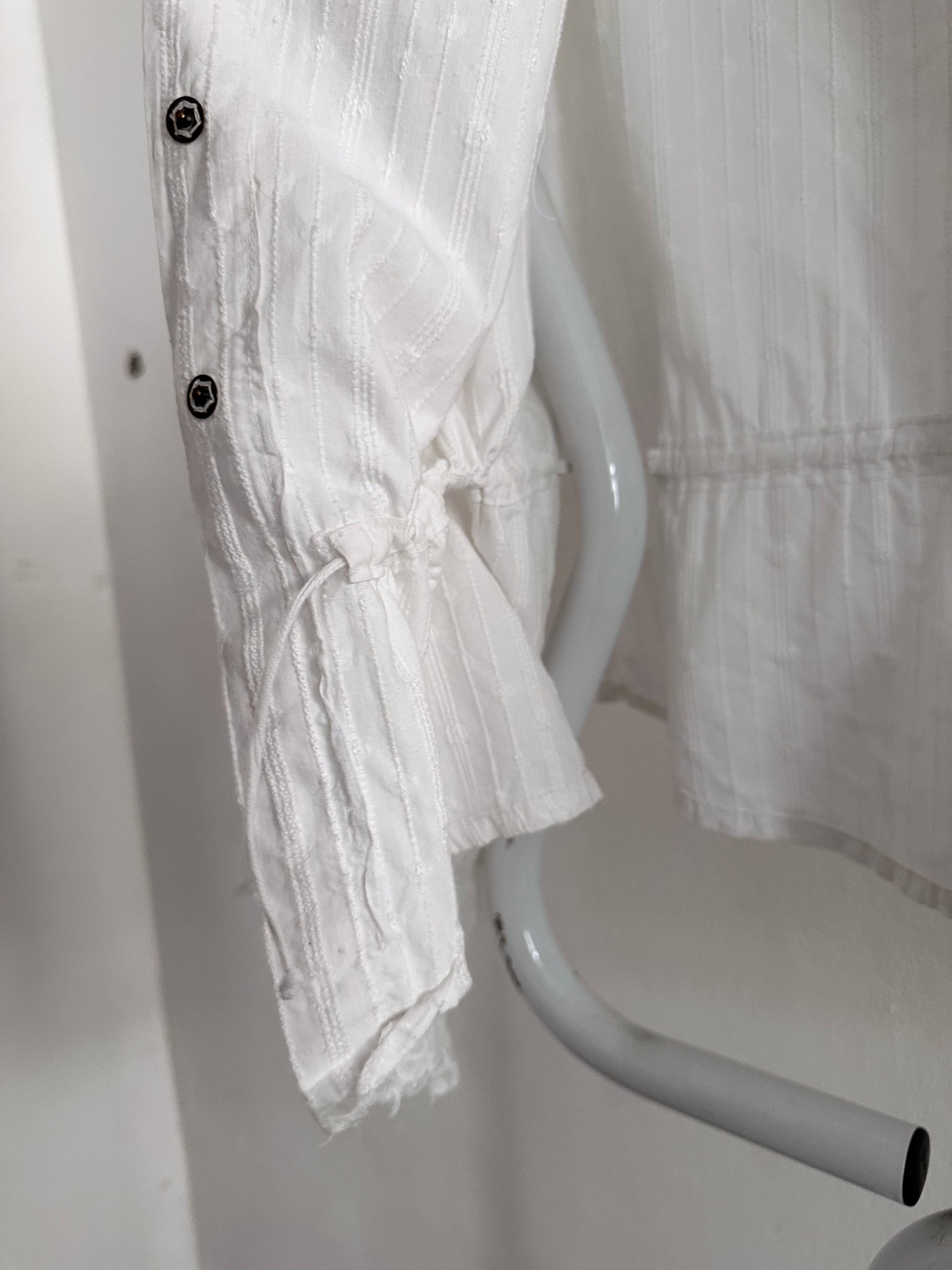 袖口と肘あたりにドローコードが入っていて3段階にシェイプします。