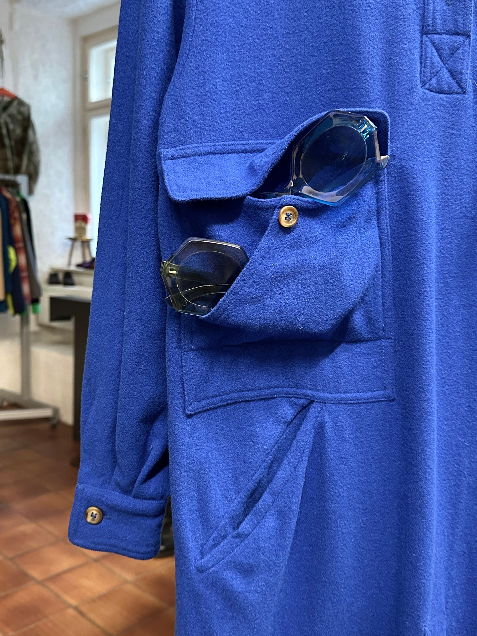 合計で言うと7つもついてるポケット。前のポケットが素敵すぎてこのままカットしてシャツとして着たいほど。