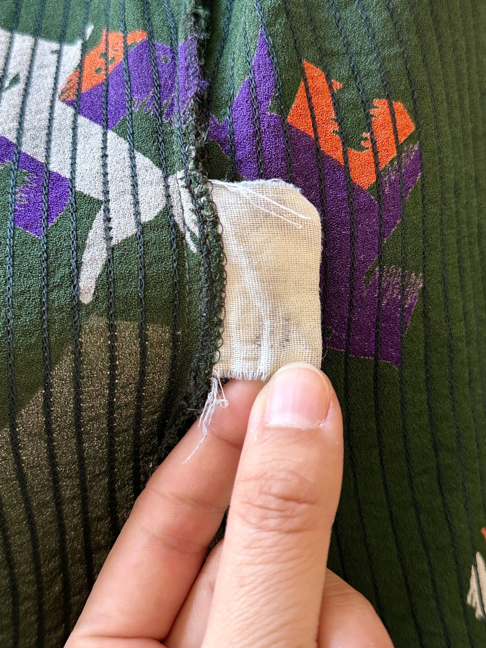 程よくシアー感のあるジョーゼット、シルクではなくおそらくレーヨン系かなと思います。家庭の洗濯機でもネットに入れて洗うことができます。