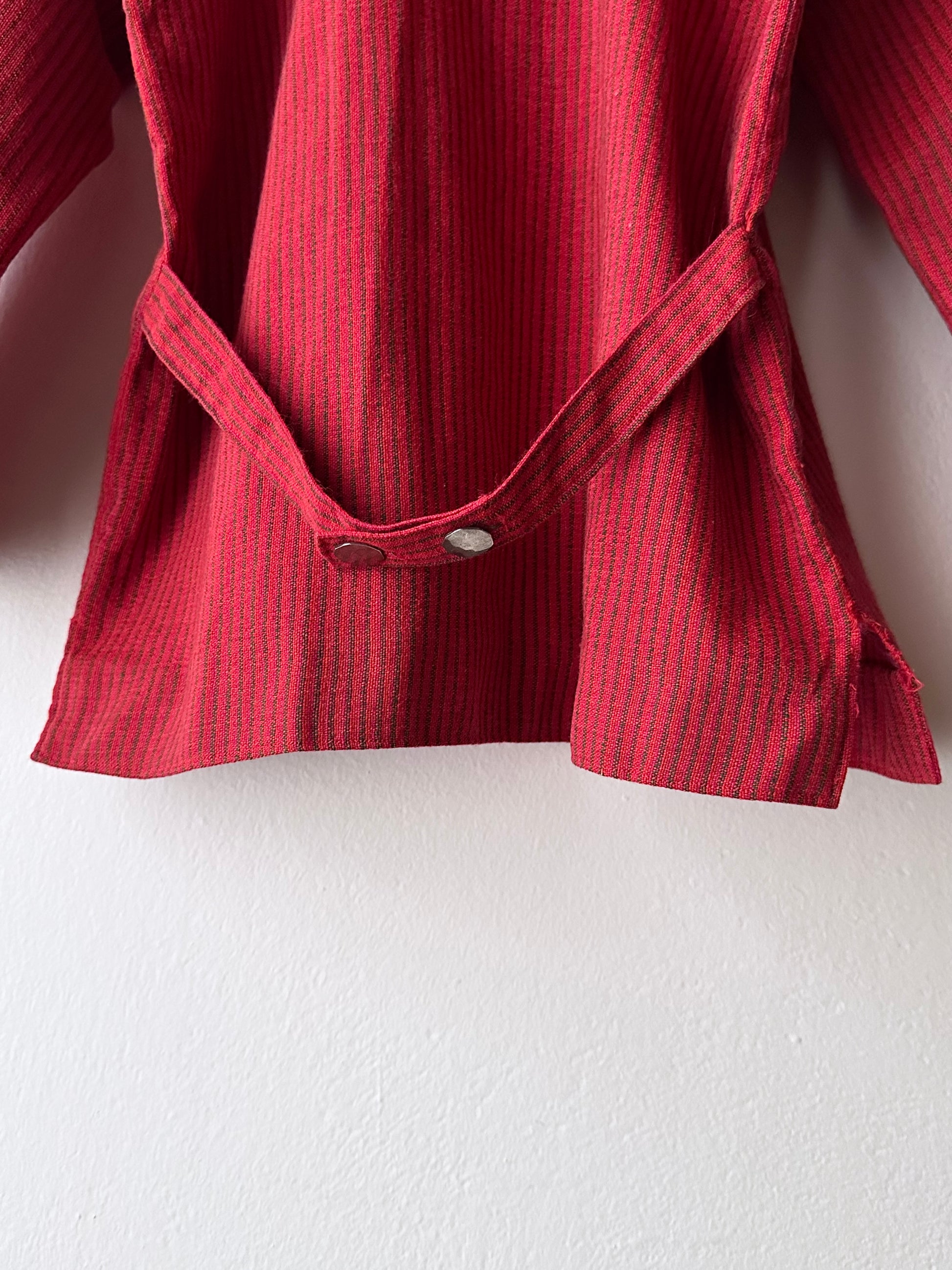この深みのある赤色で、冬らしいテクスチャーのウール生地、これはとっておきのウィンターブラウス。