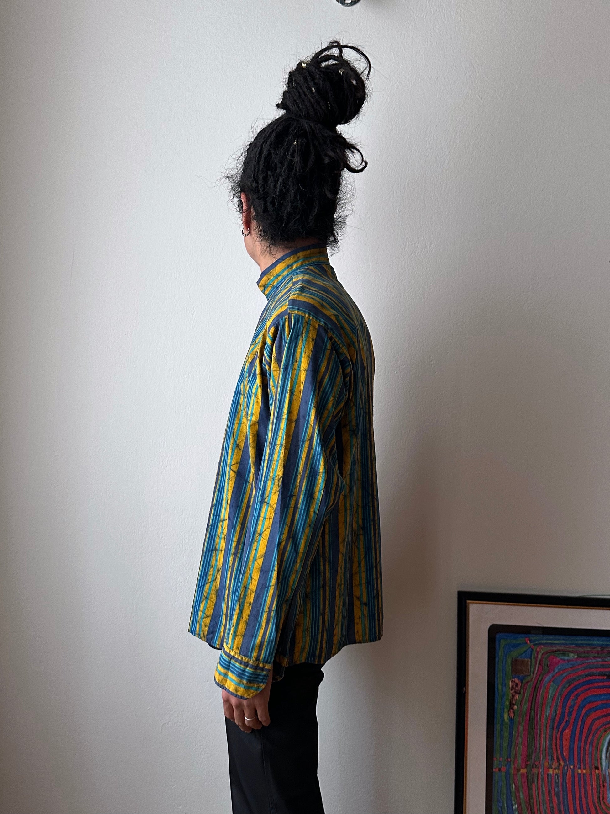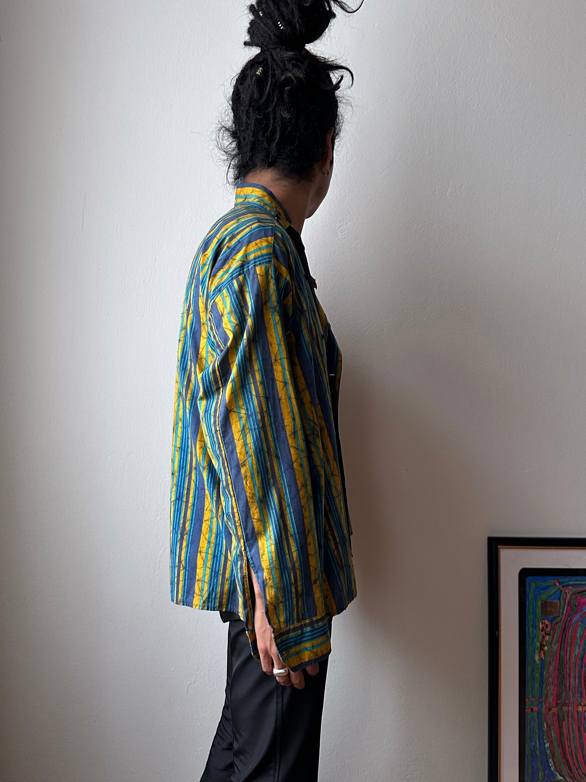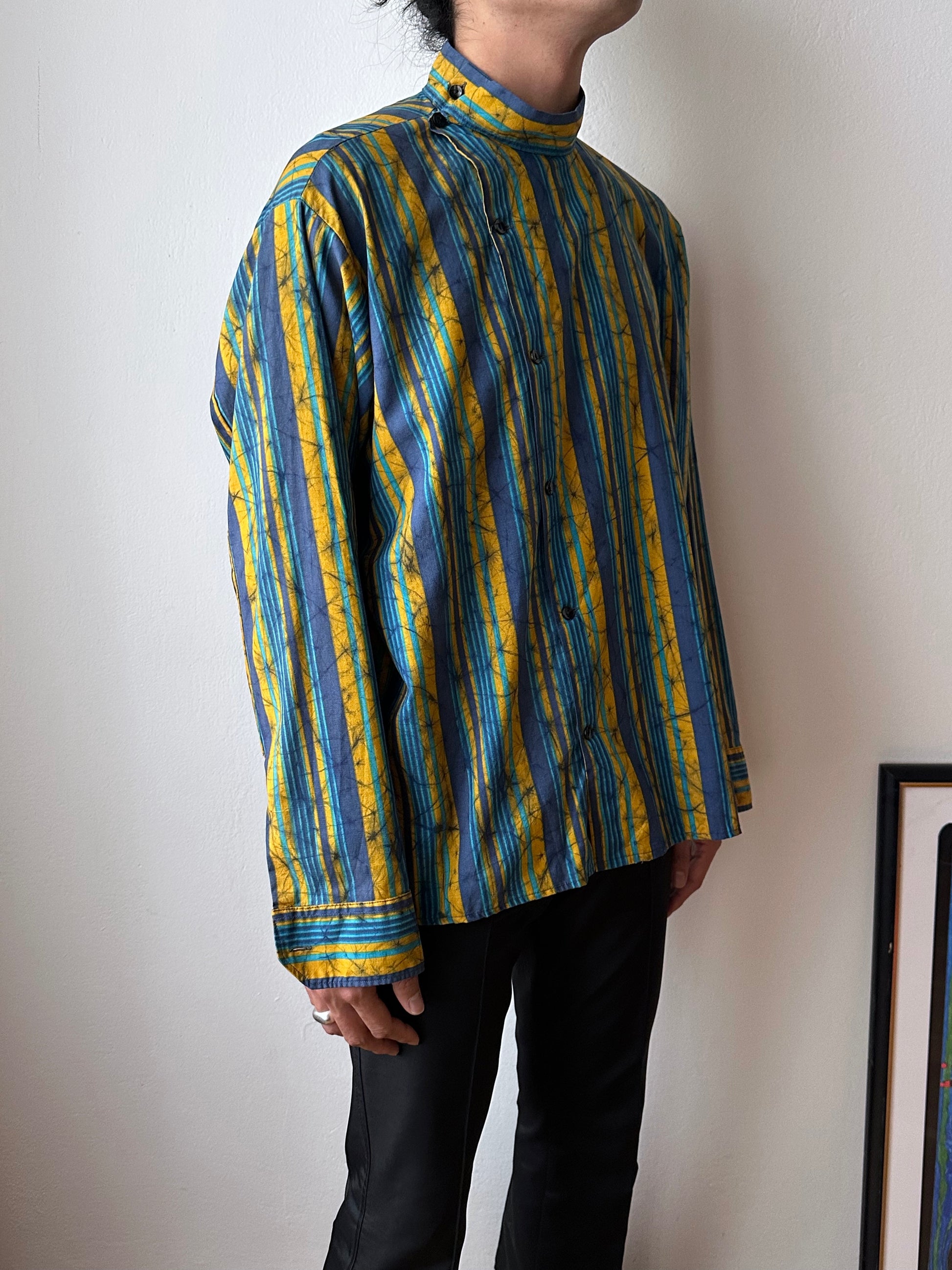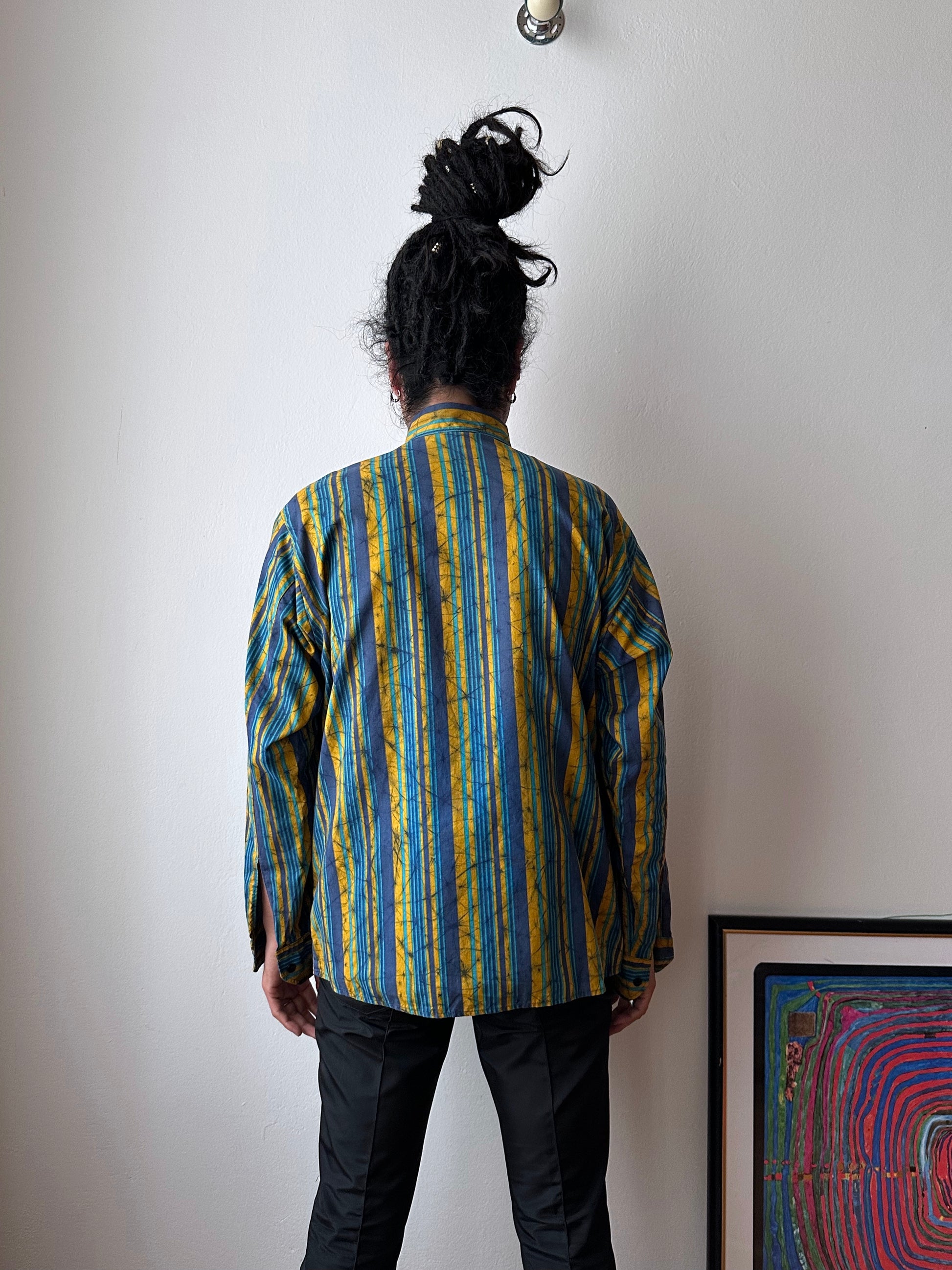 ストライプとタイダイのプリント、色味もどことなくスウェーデンっぽい。笑