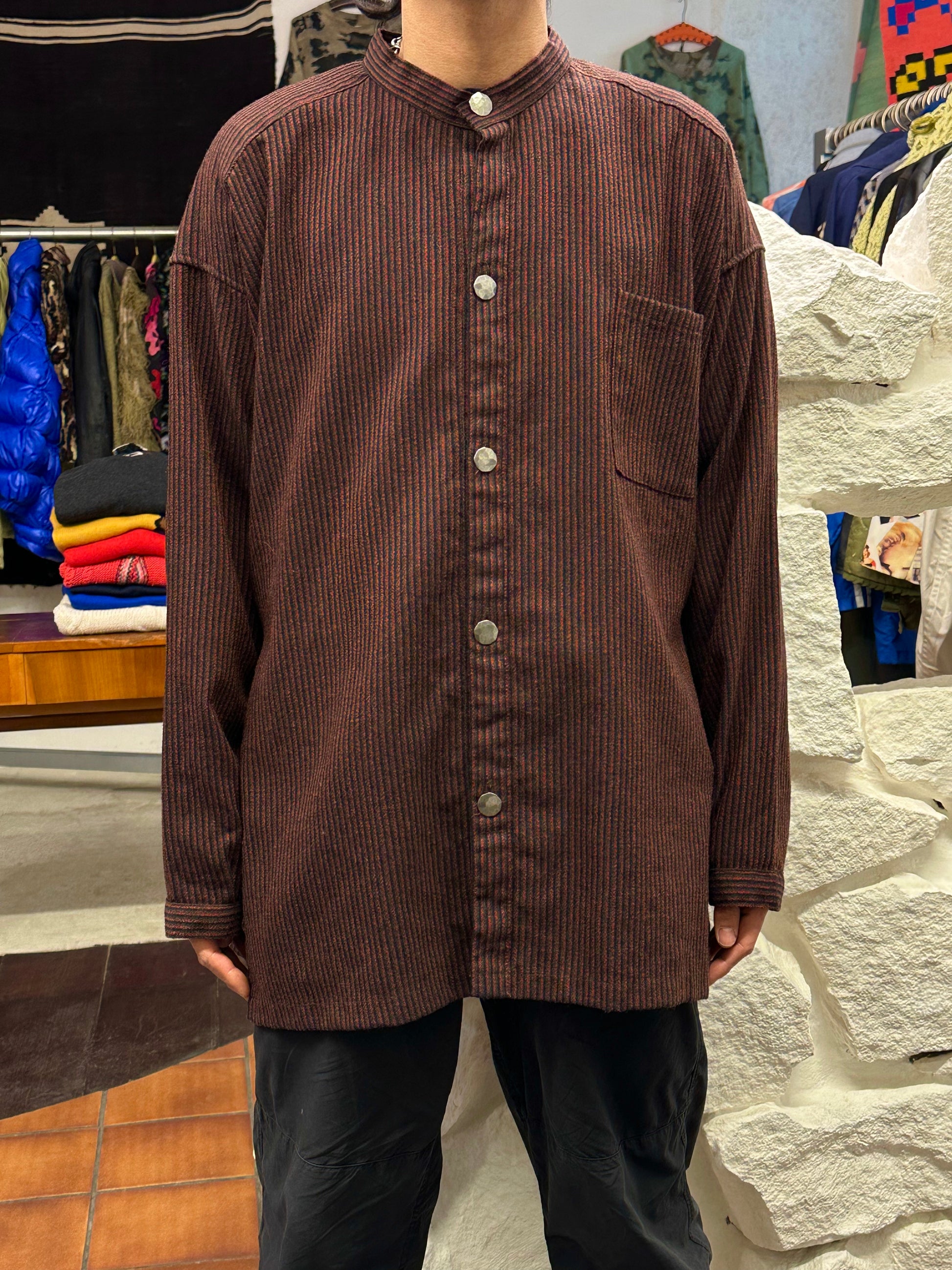 打ち込みのボタンに襟無しのデザイン、身幅もしっかりありながらボックスカットでファッション性がすごい。