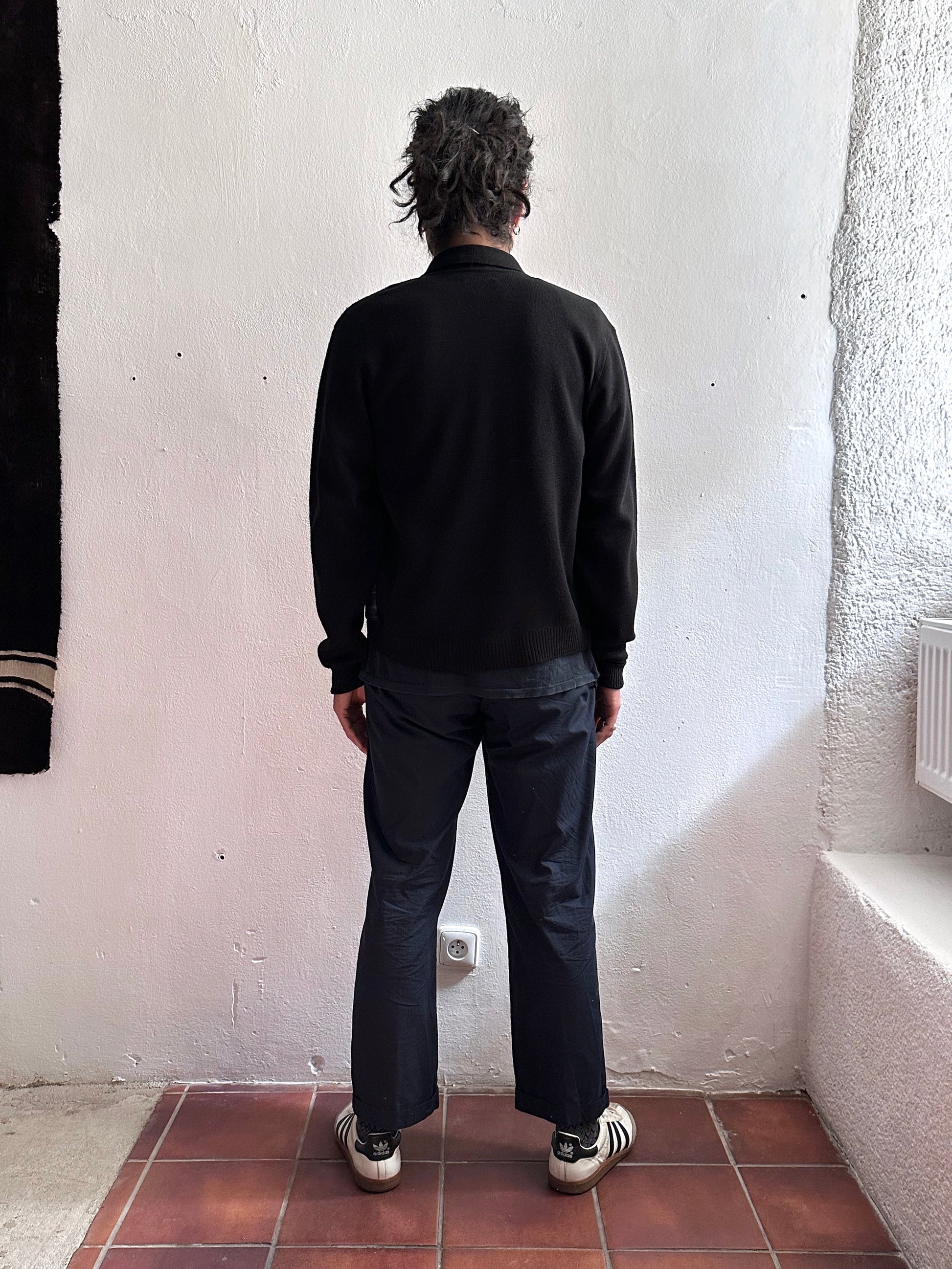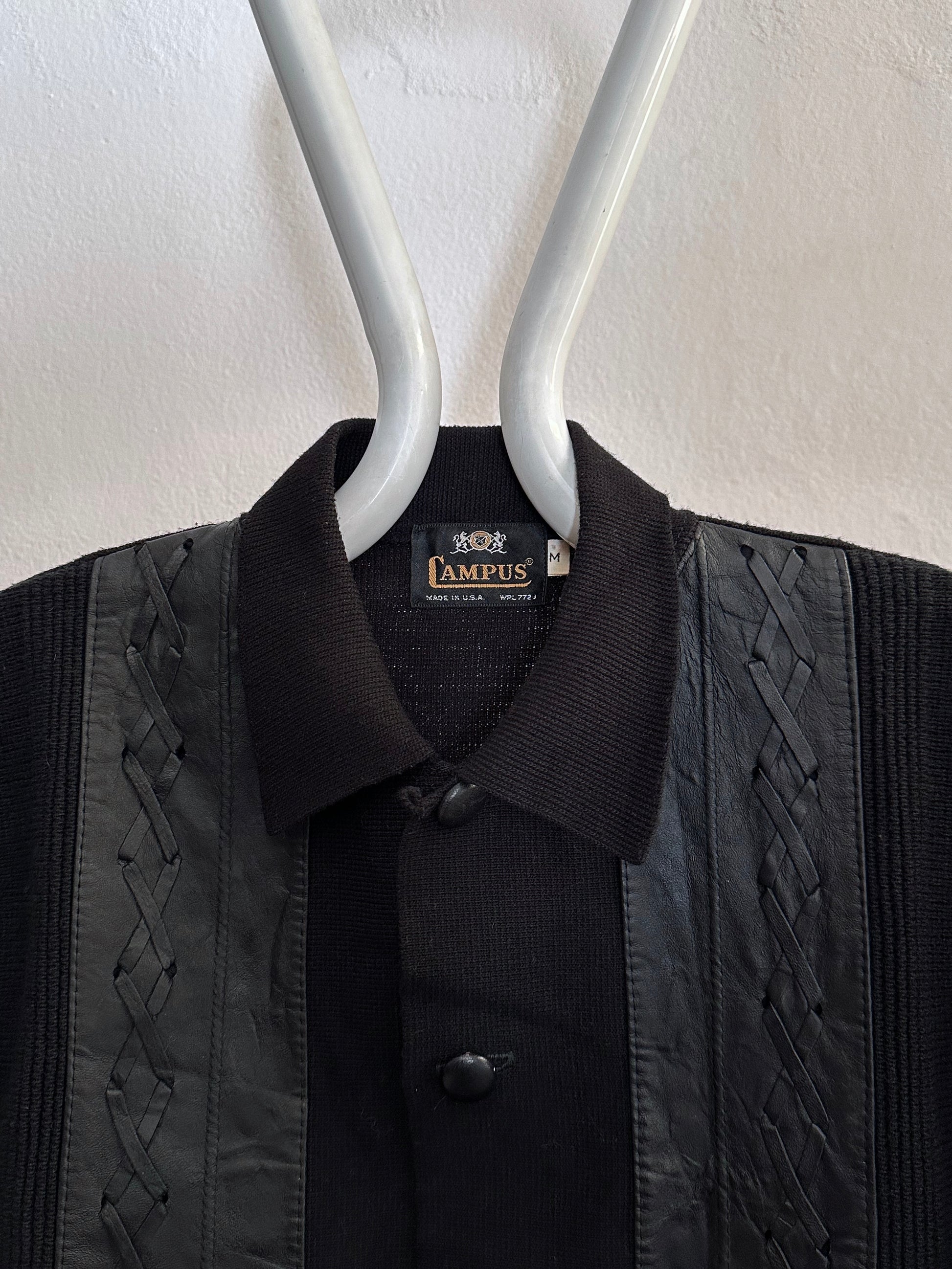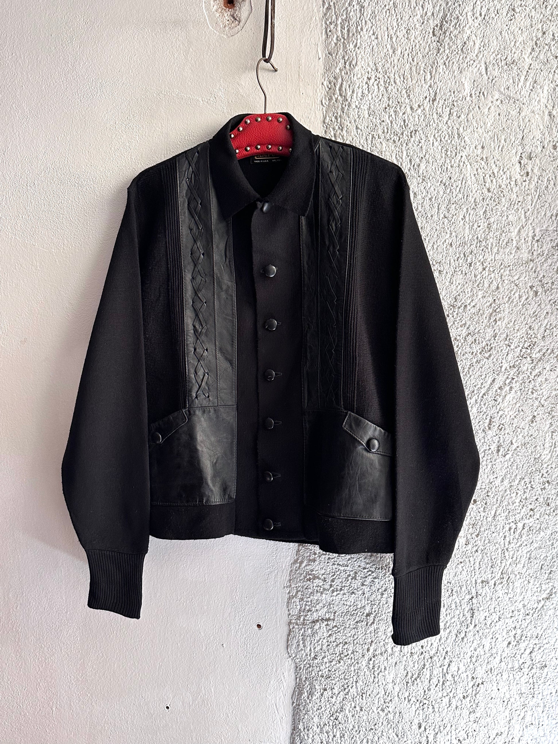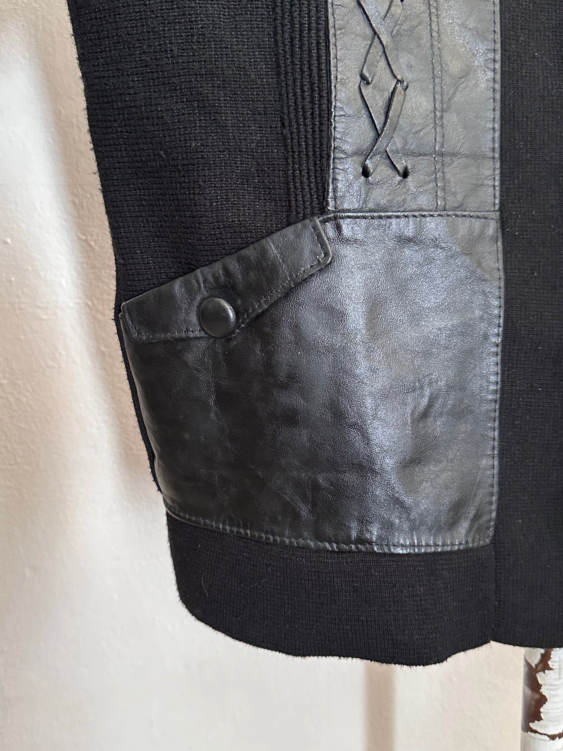 60年代真っ黒のウールニットとレザー切り替えのジャケット。