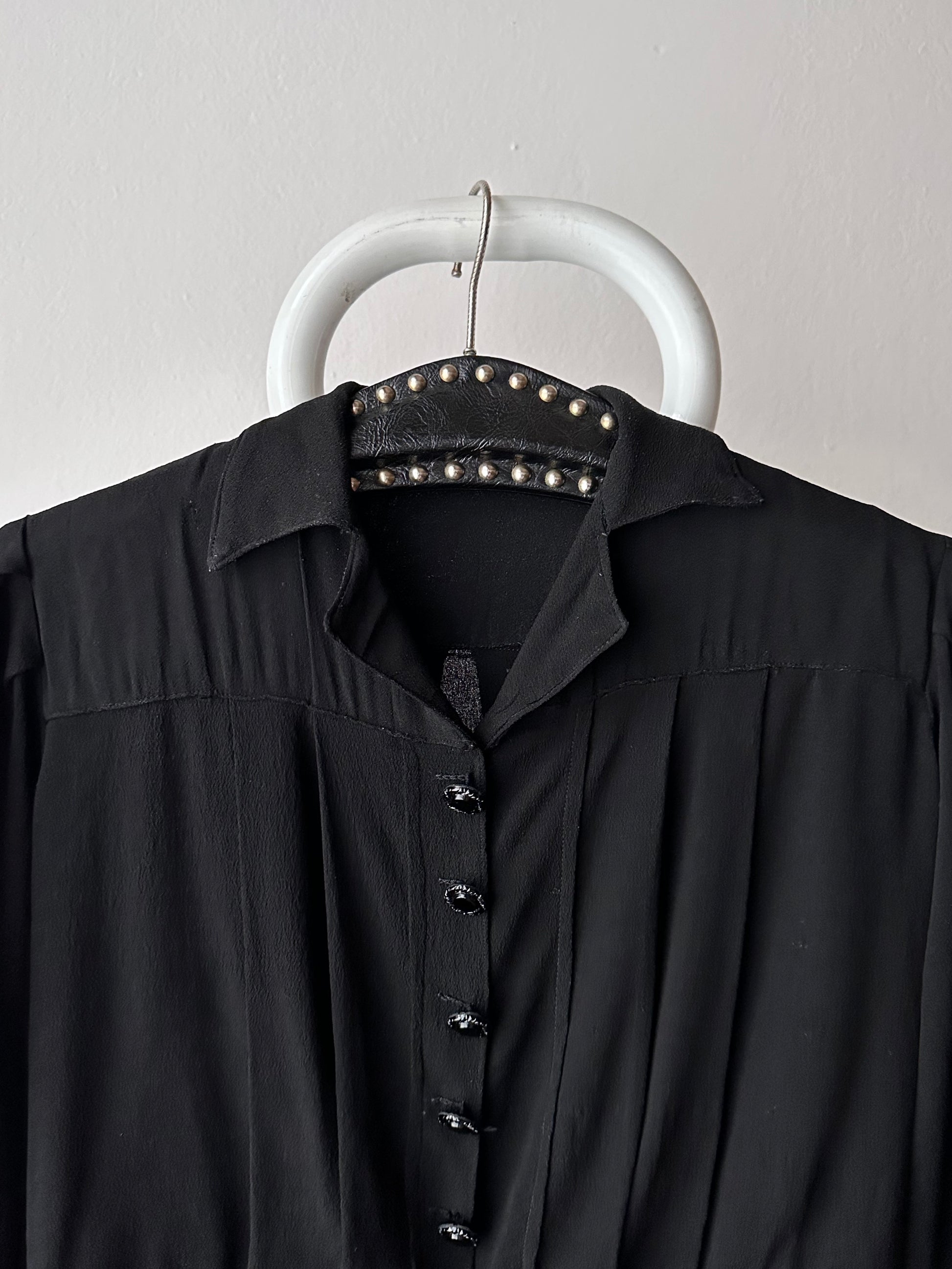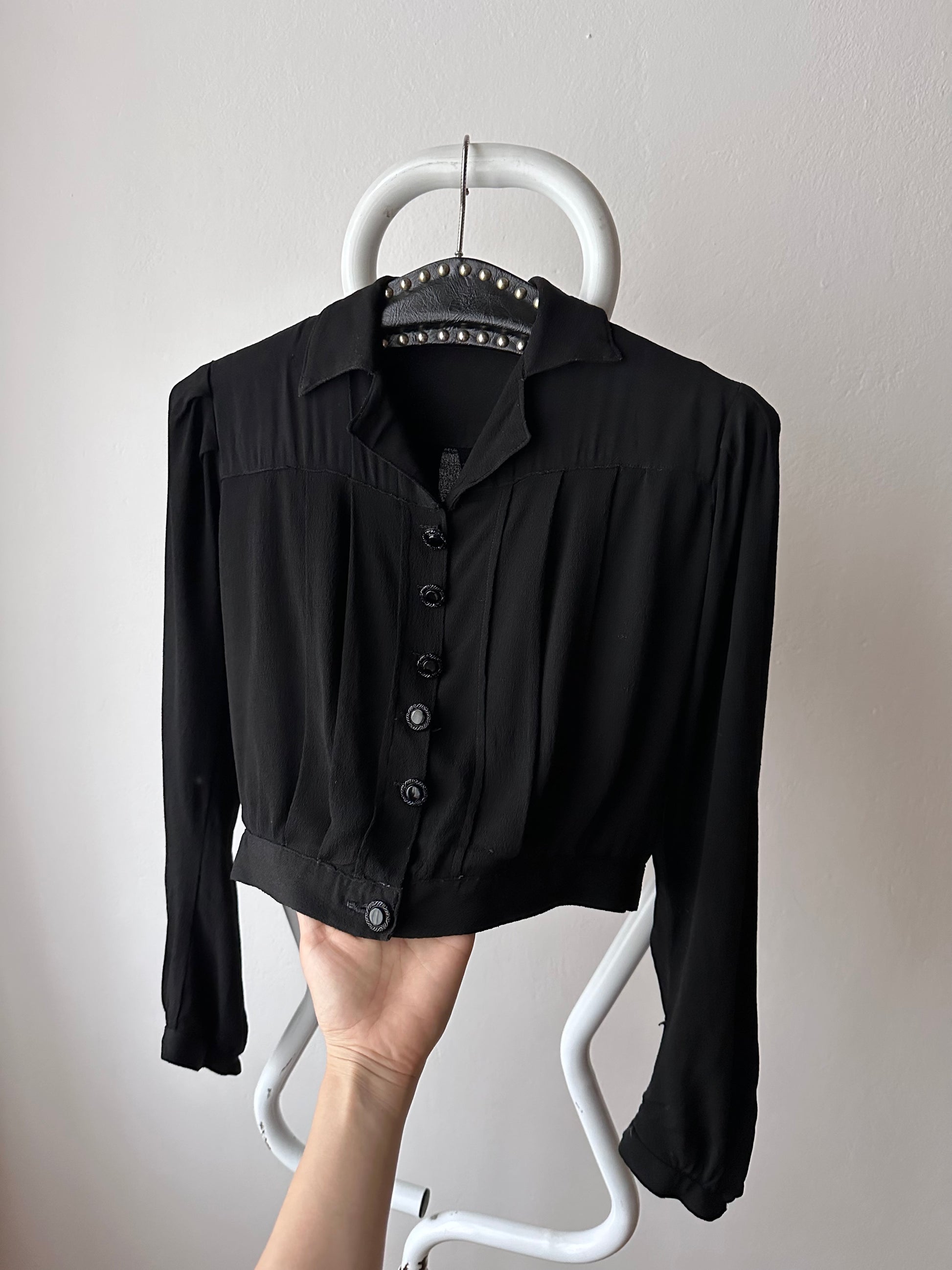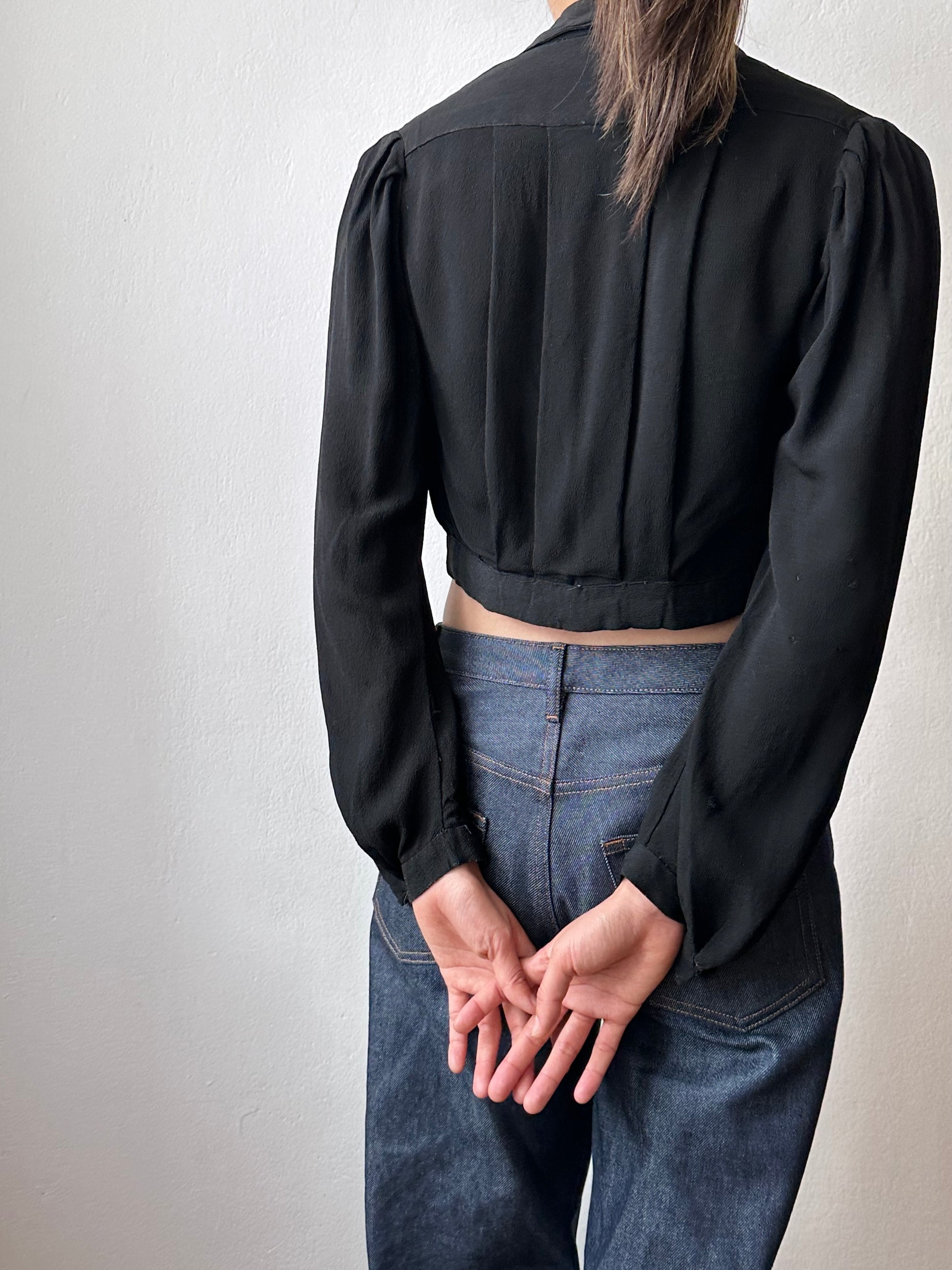 古い縮緬のようなレーヨン素材のブラウス。