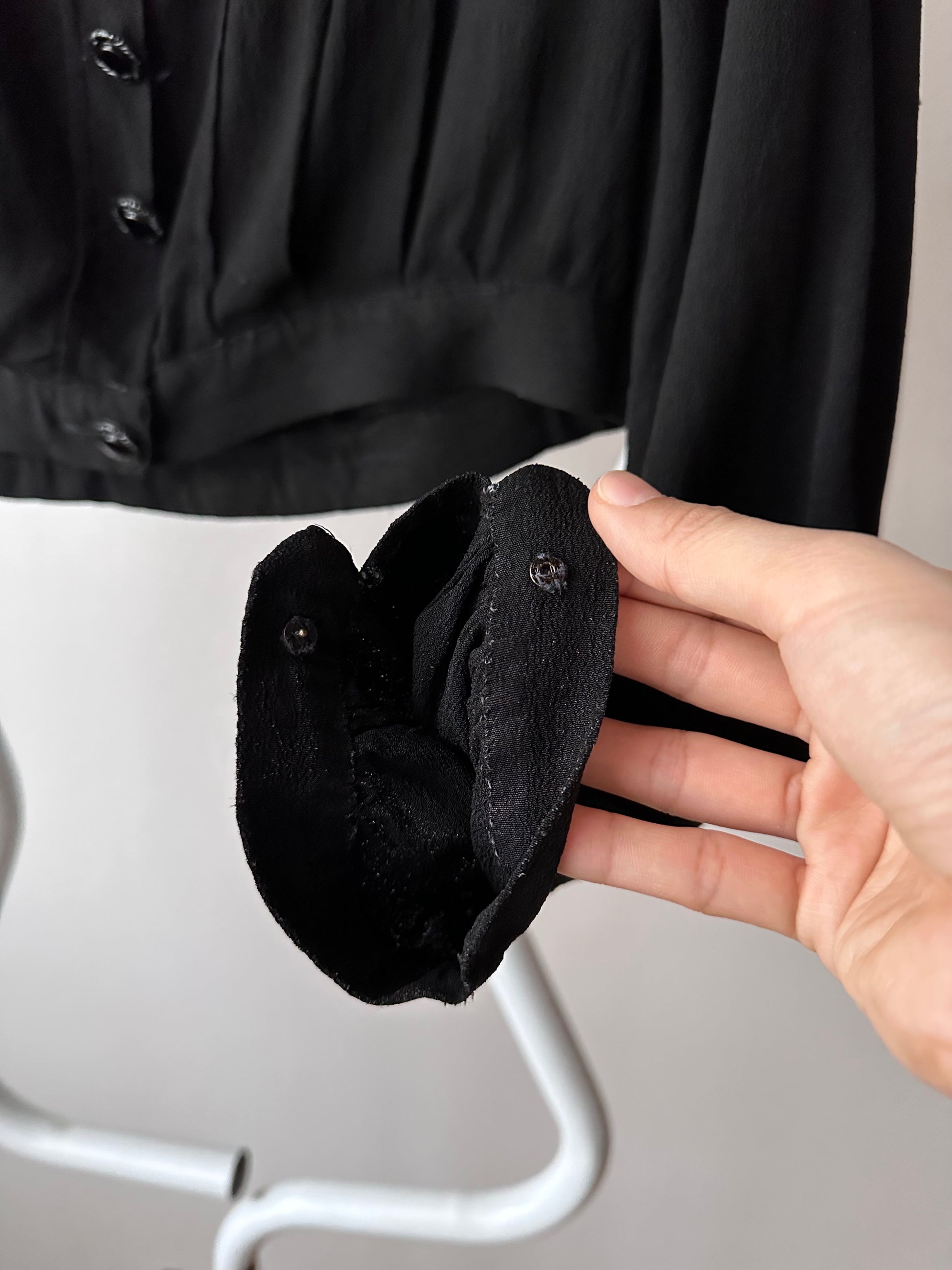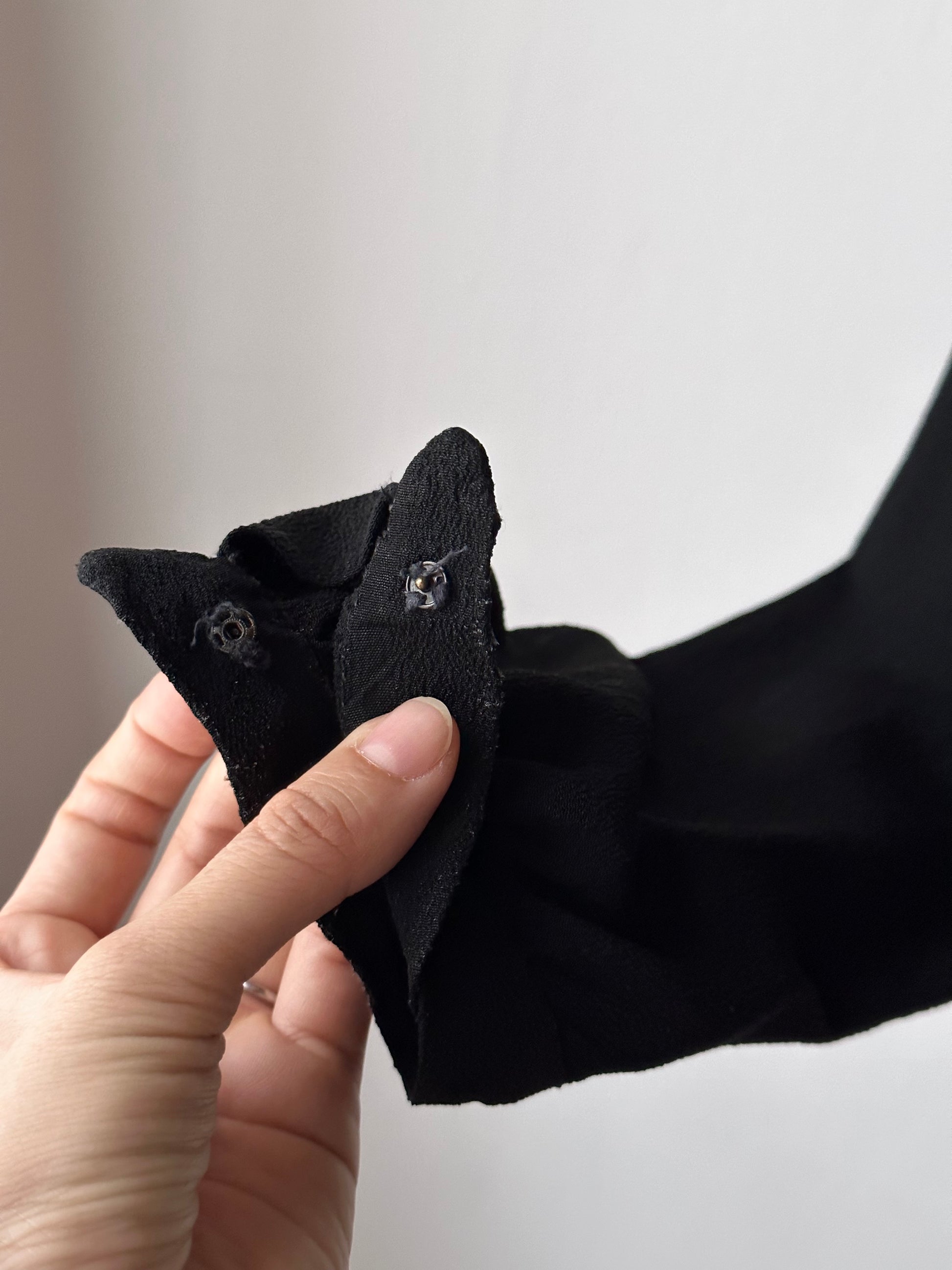 ボタンは一番下以外は全て飾りでスナップボタンになっています。袖のカフスもスナップです。
