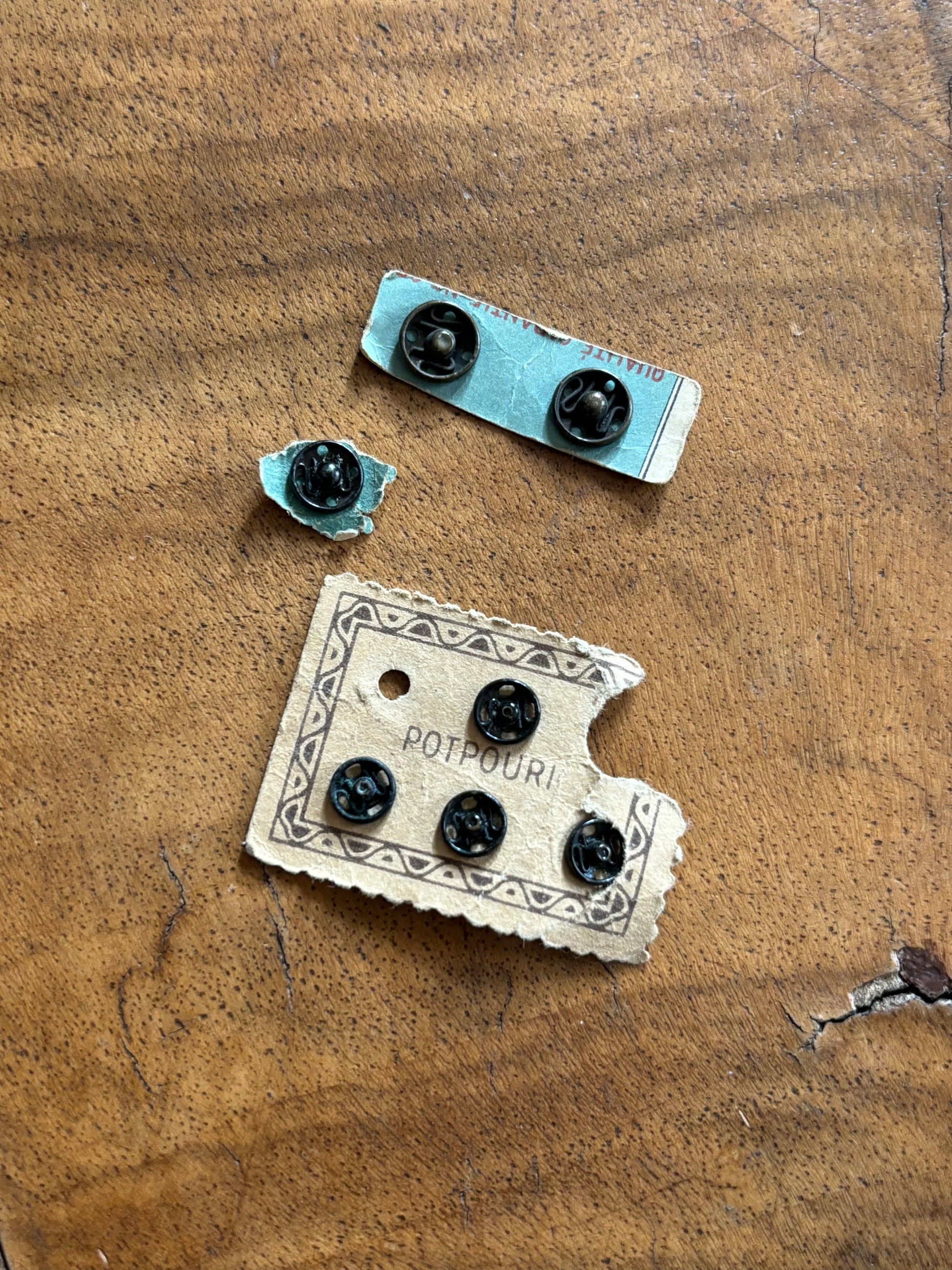 古いスナップボタンは今後外れることも起こりうると思うので、同年代のボタンを1つ同封しておきます。(最後の写真)