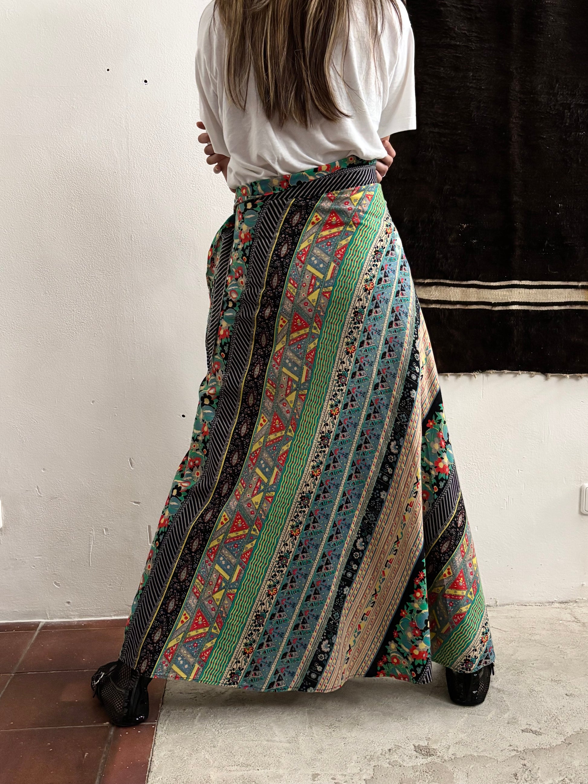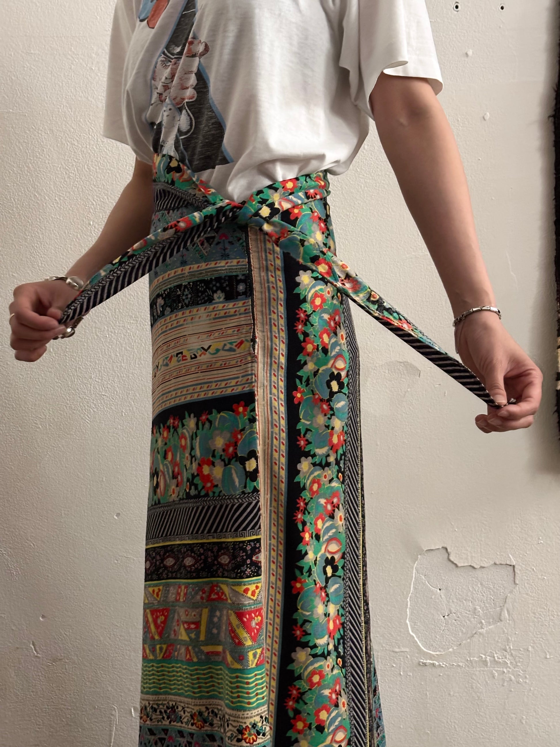 70s beautiful fabrick skirt W28-29