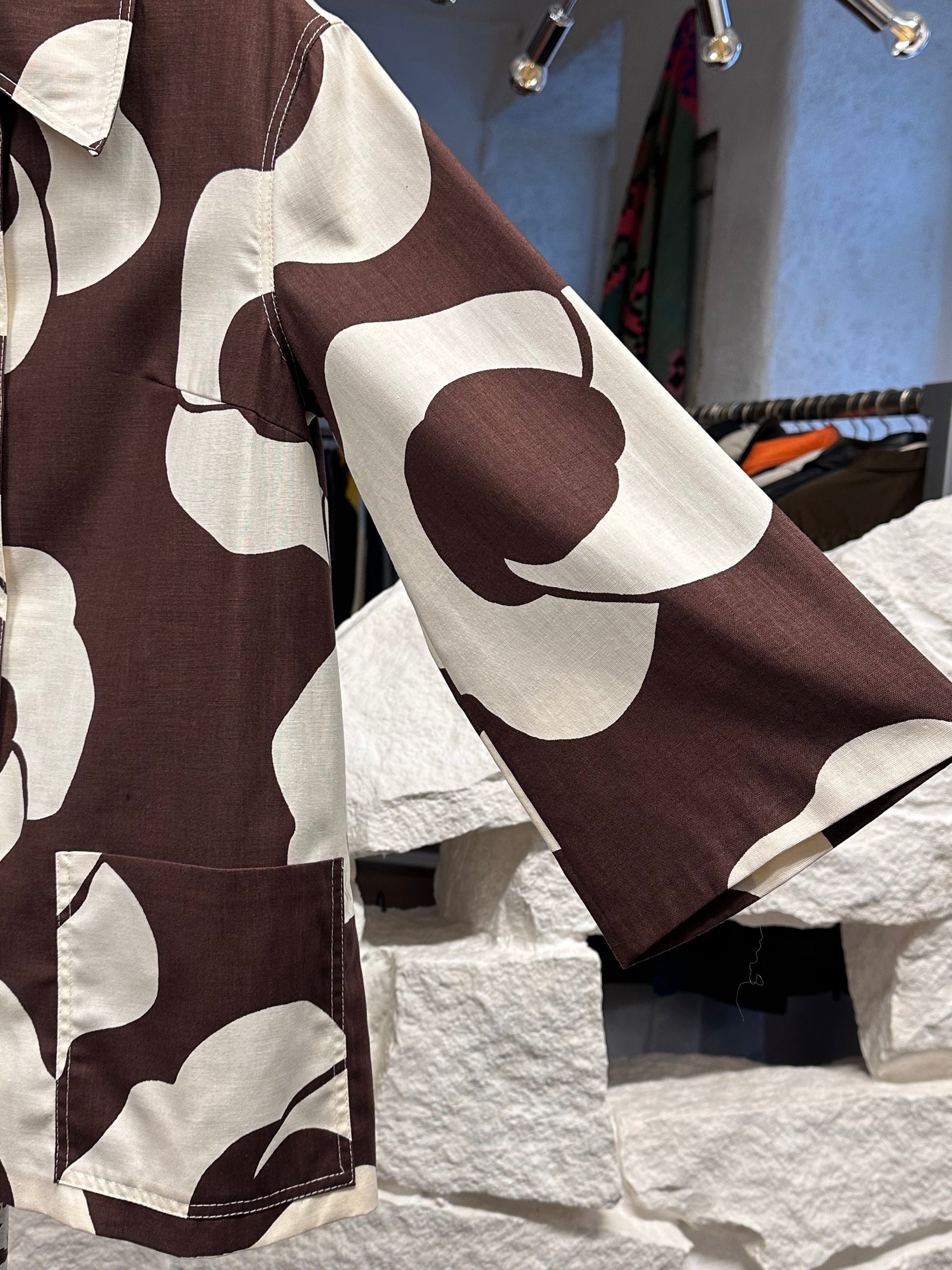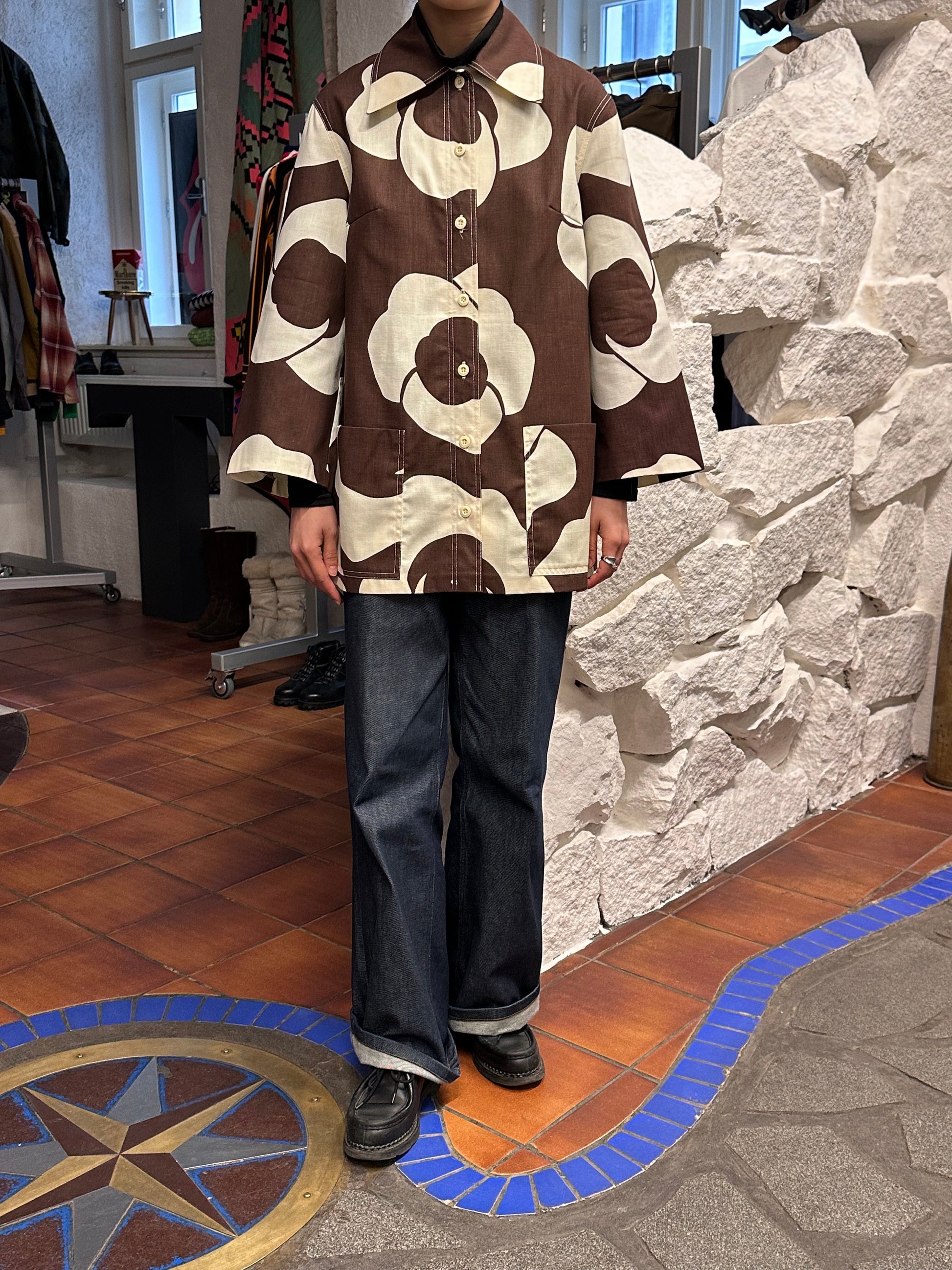 コットンレーヨンの生地、実際生で触って頂けないのが残念ですがほんとに良い生地です。この茶色のトーンもまた品があってかっこいい。