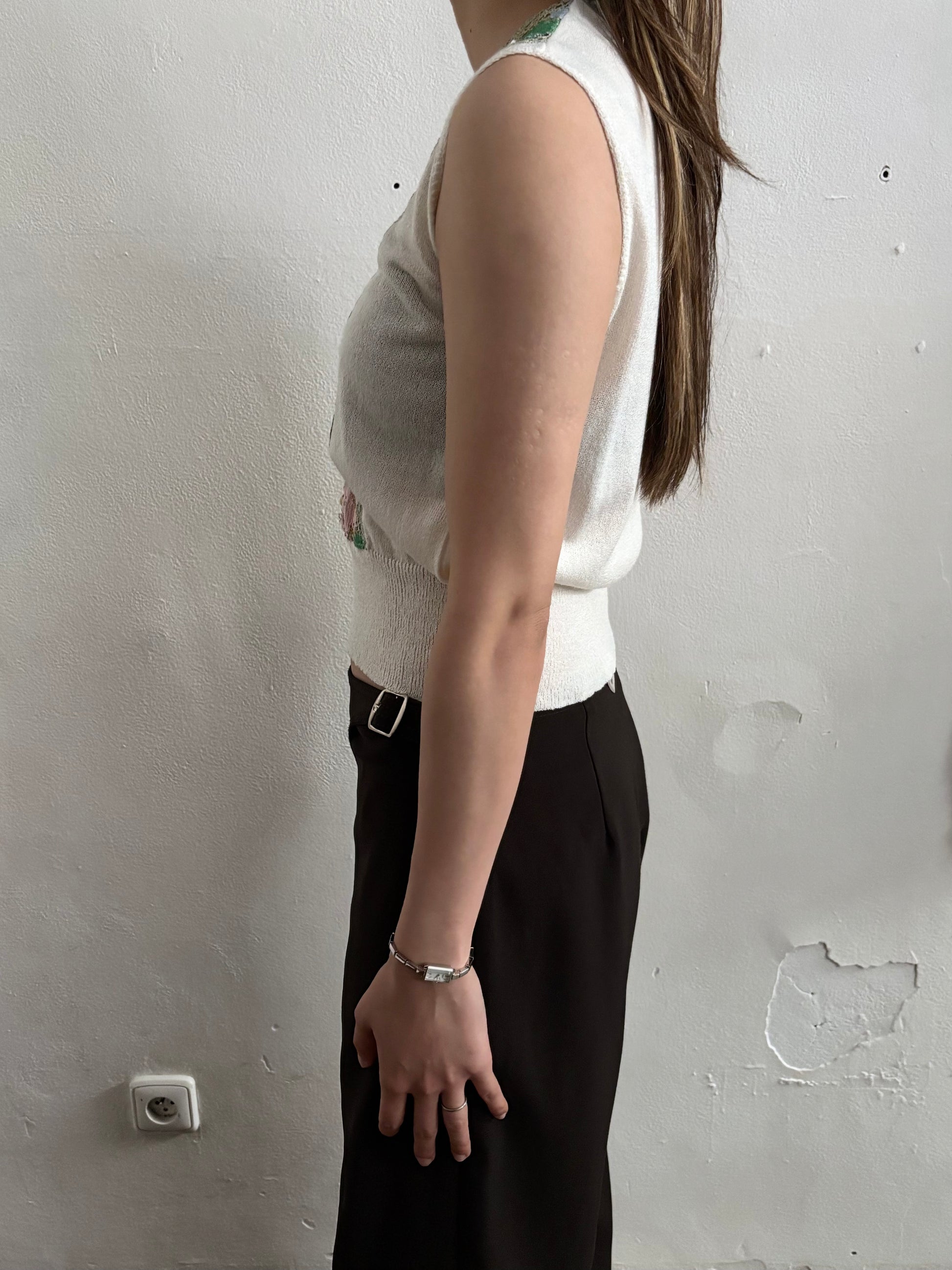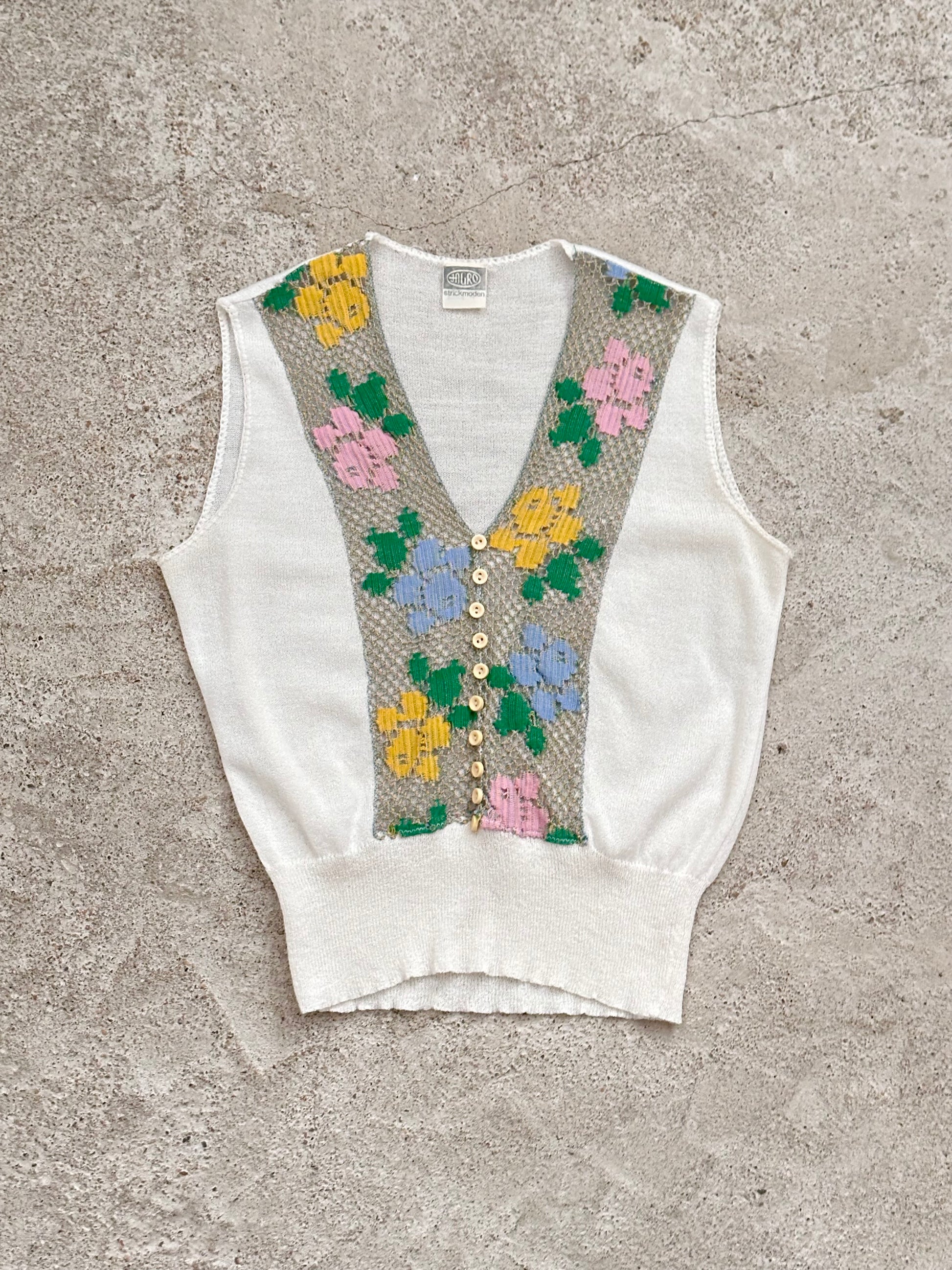 70s flower crochet chest summer knit