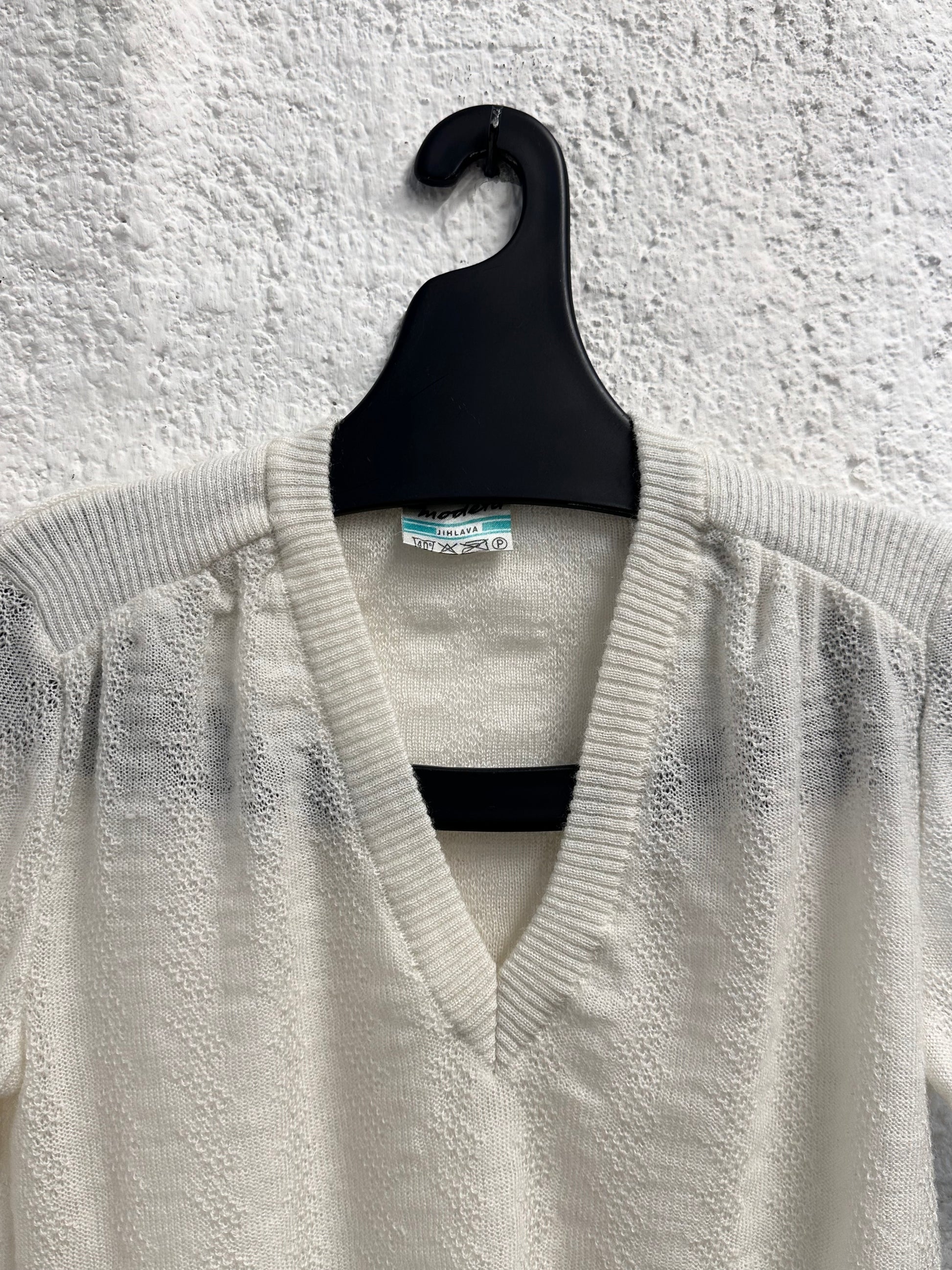 Tシャツには出せないこのフィット感と透け感のあるニット。Vネック、袖の丈なども絶妙。