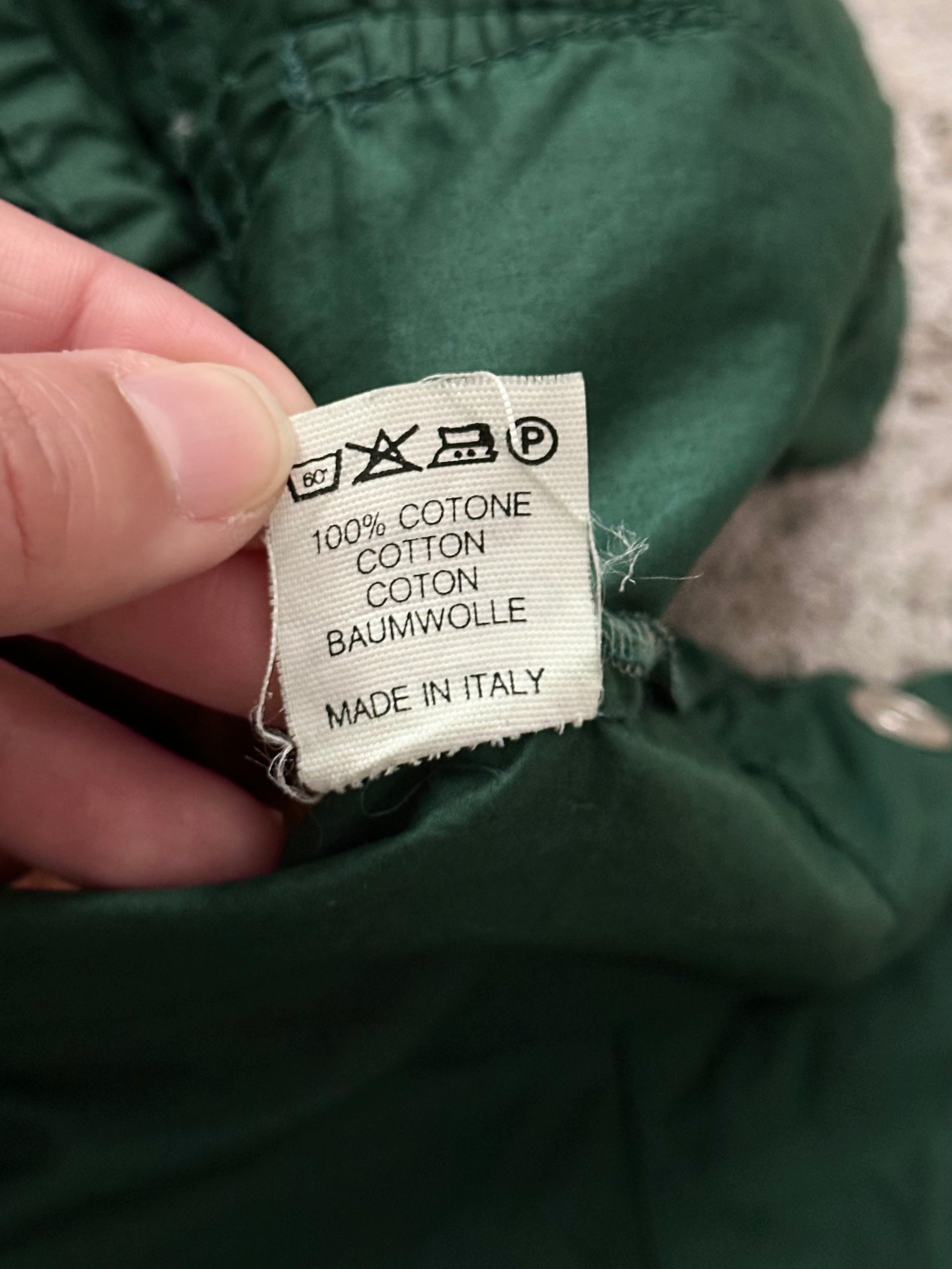 素材は一見ナイロンのように見えますが光沢のあるコットン素材で、シルクのような滑らかさもあり、Made in Italyのタグを見てなるほどしましたが、イタリアらしい軽量ながらタフな素晴らしいコットンです。
