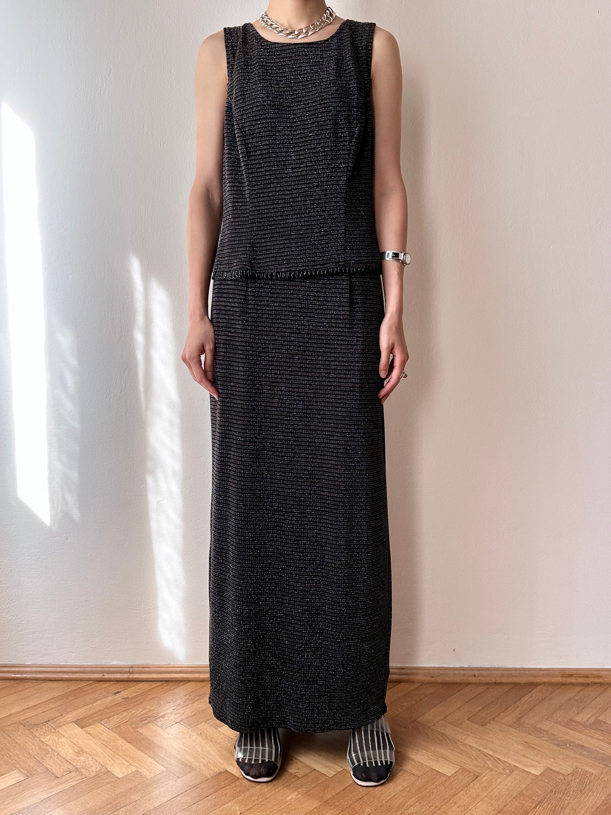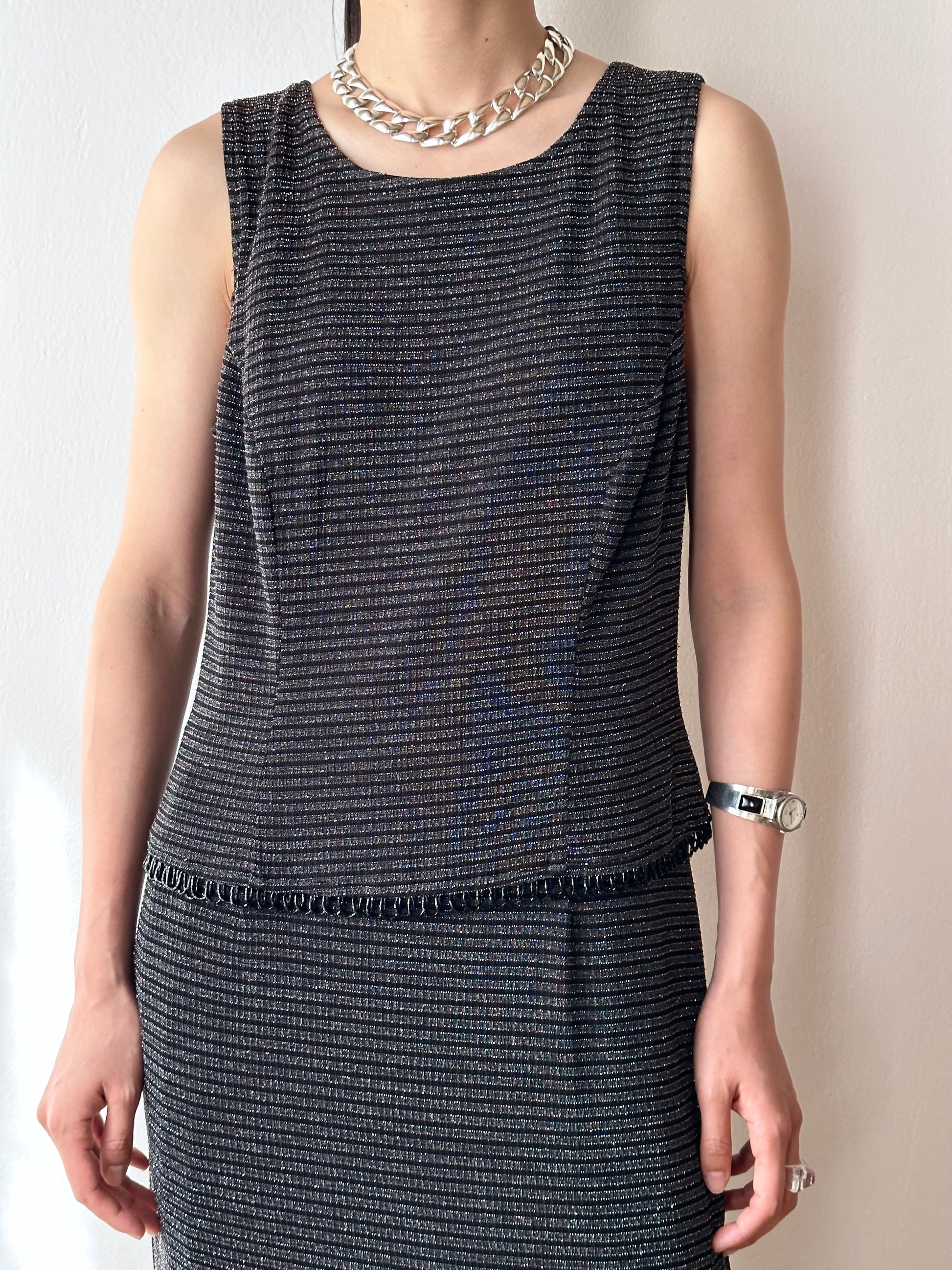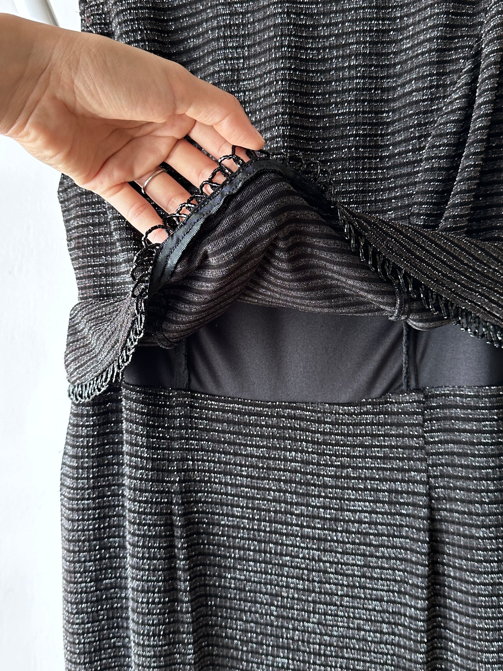 品の良いラメ入りのボーダーに、ウエストの切り替えにはビーズが施されています。