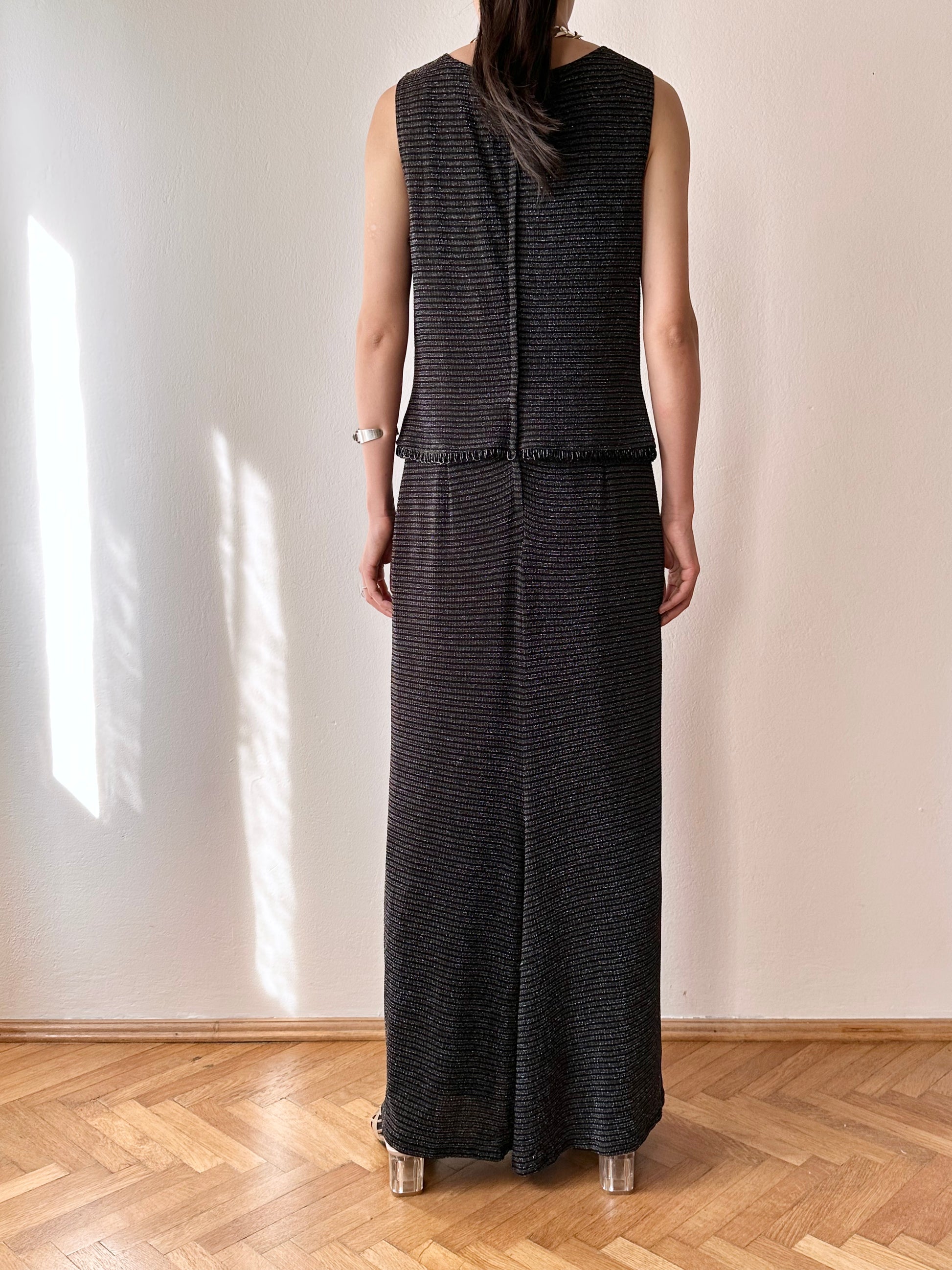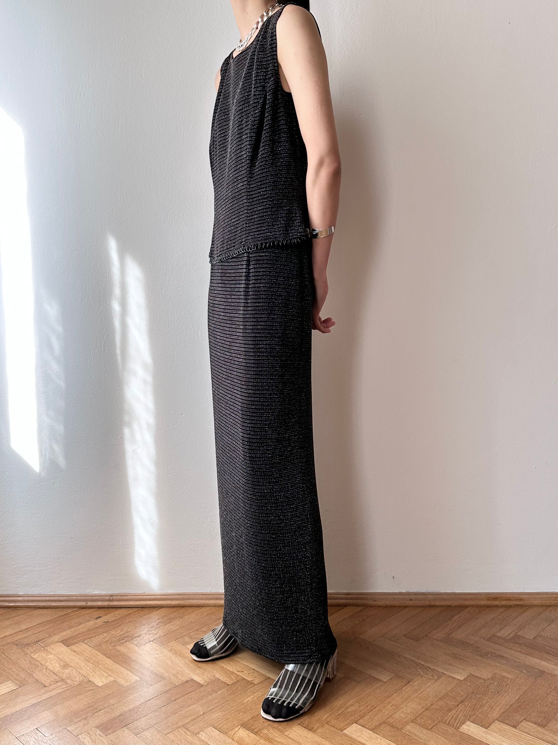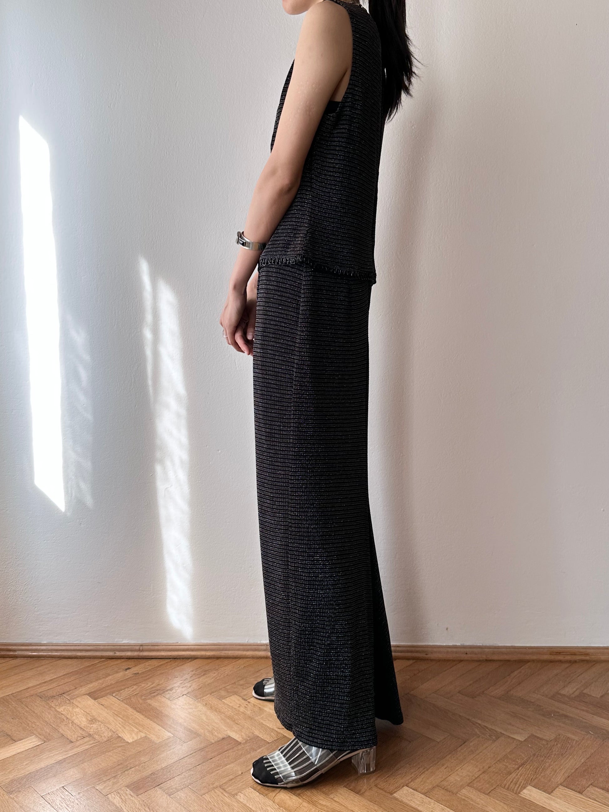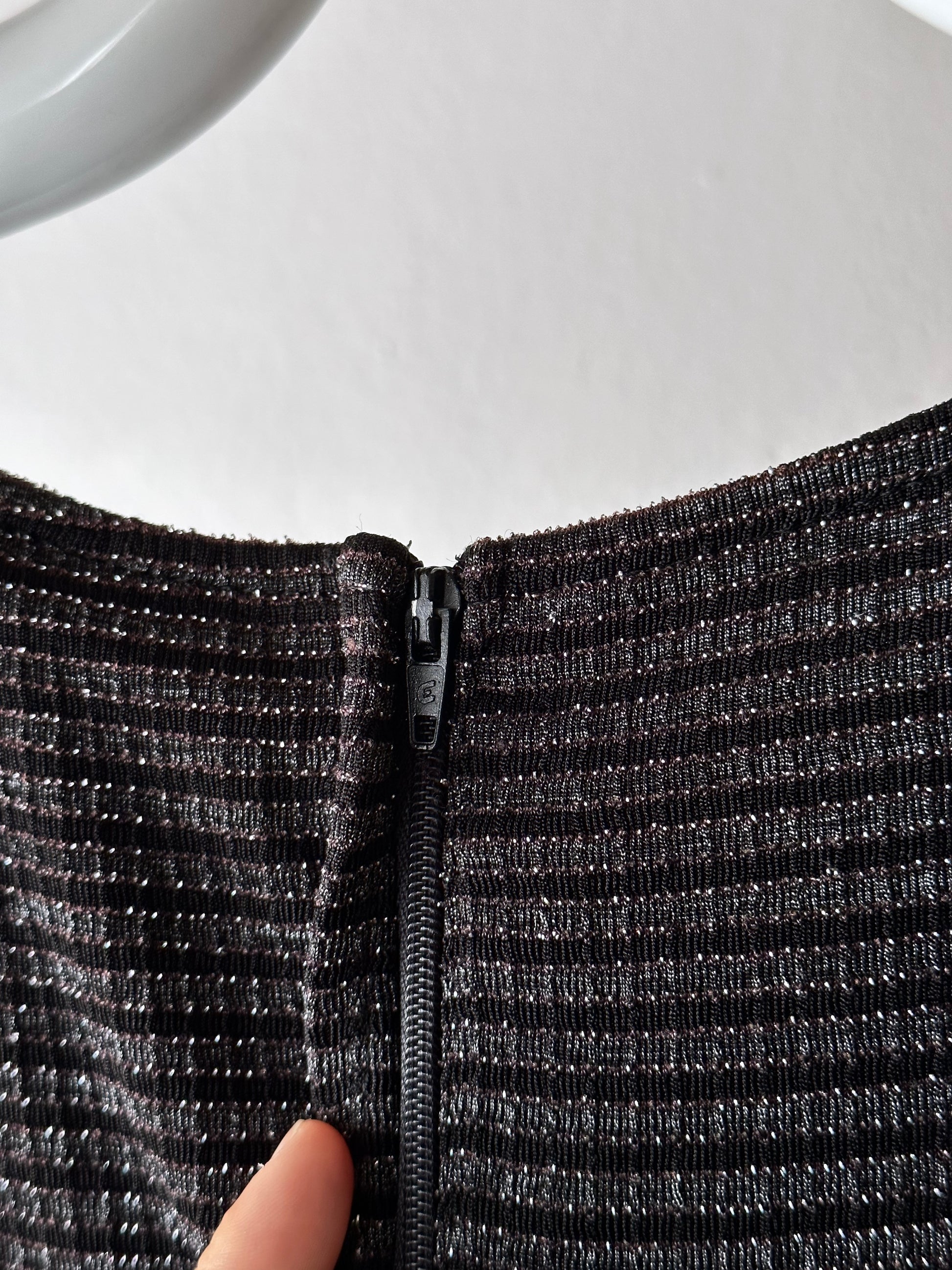 品の良いラメ入りのボーダーに、ウエストの切り替えにはビーズが施されています。