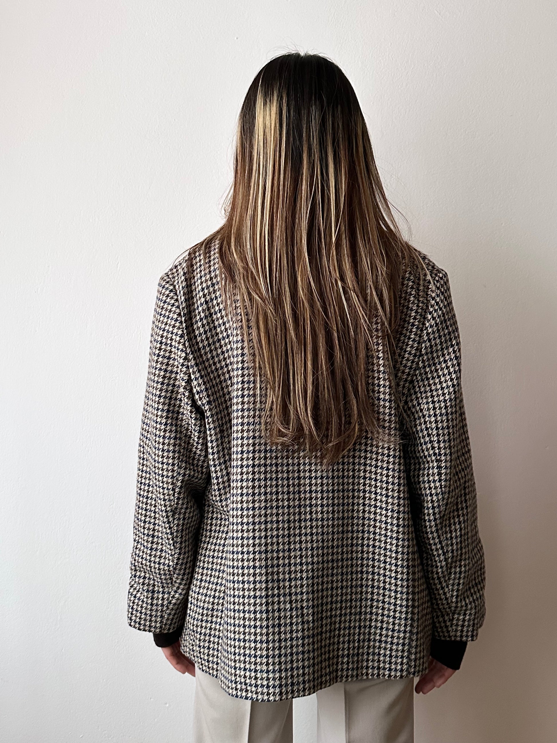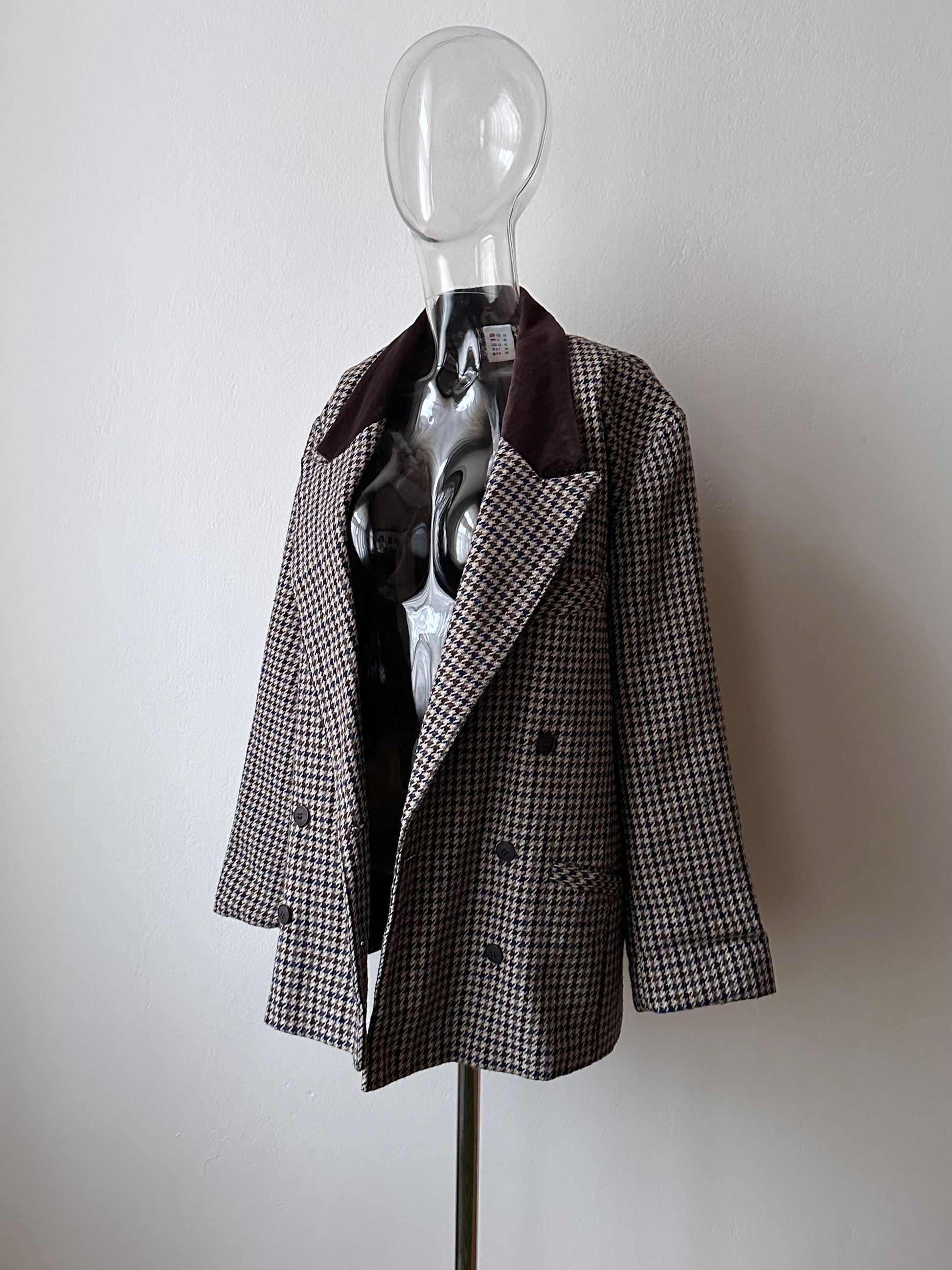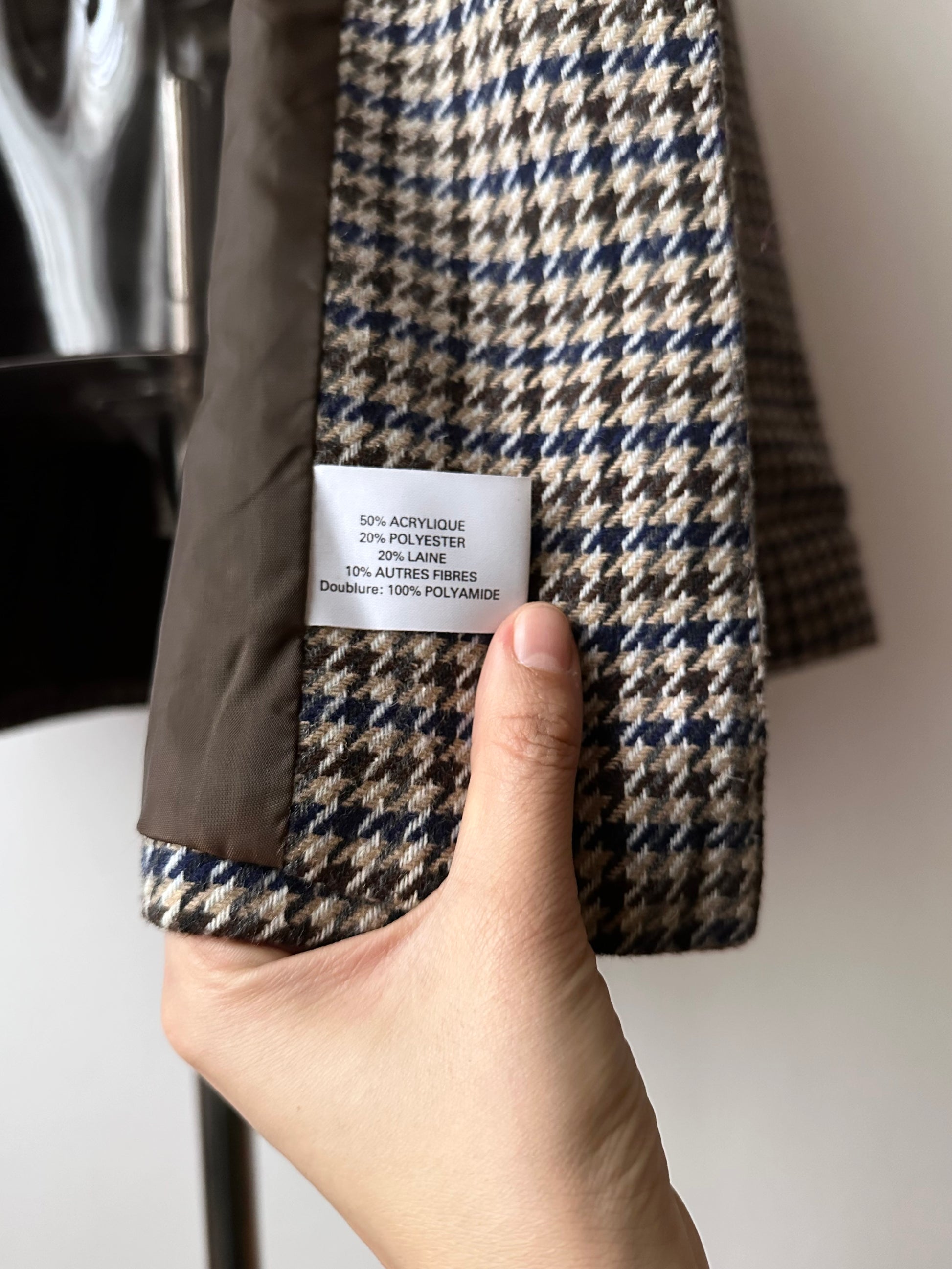 こちらは細かな千鳥格子柄ですが、よくよく見るとブラウンだけでなくブルーが入ったお洒落なやつ。