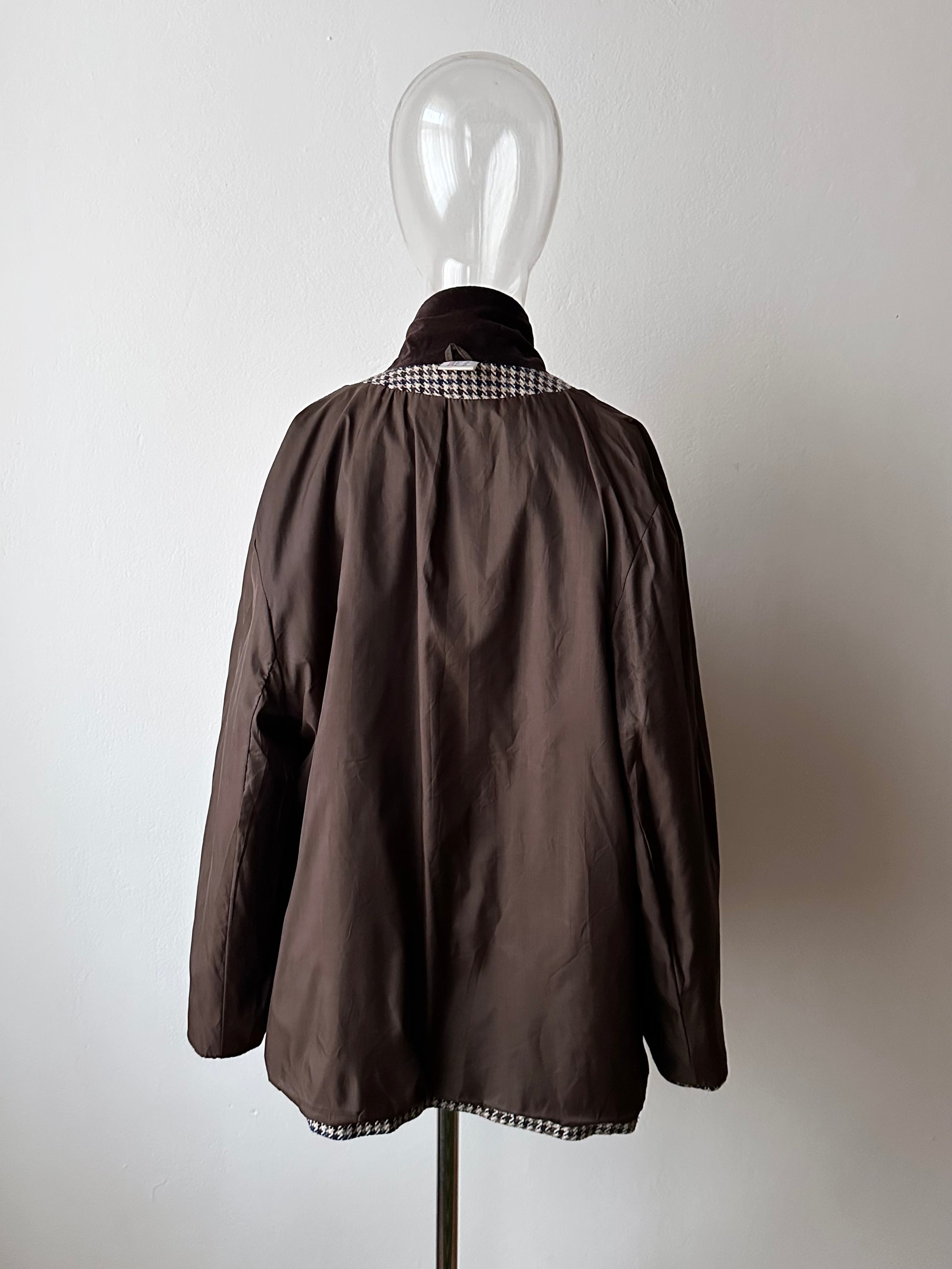 襟はブラウンベロアが引き締めてくれます。ボタンはダブルブレスト。