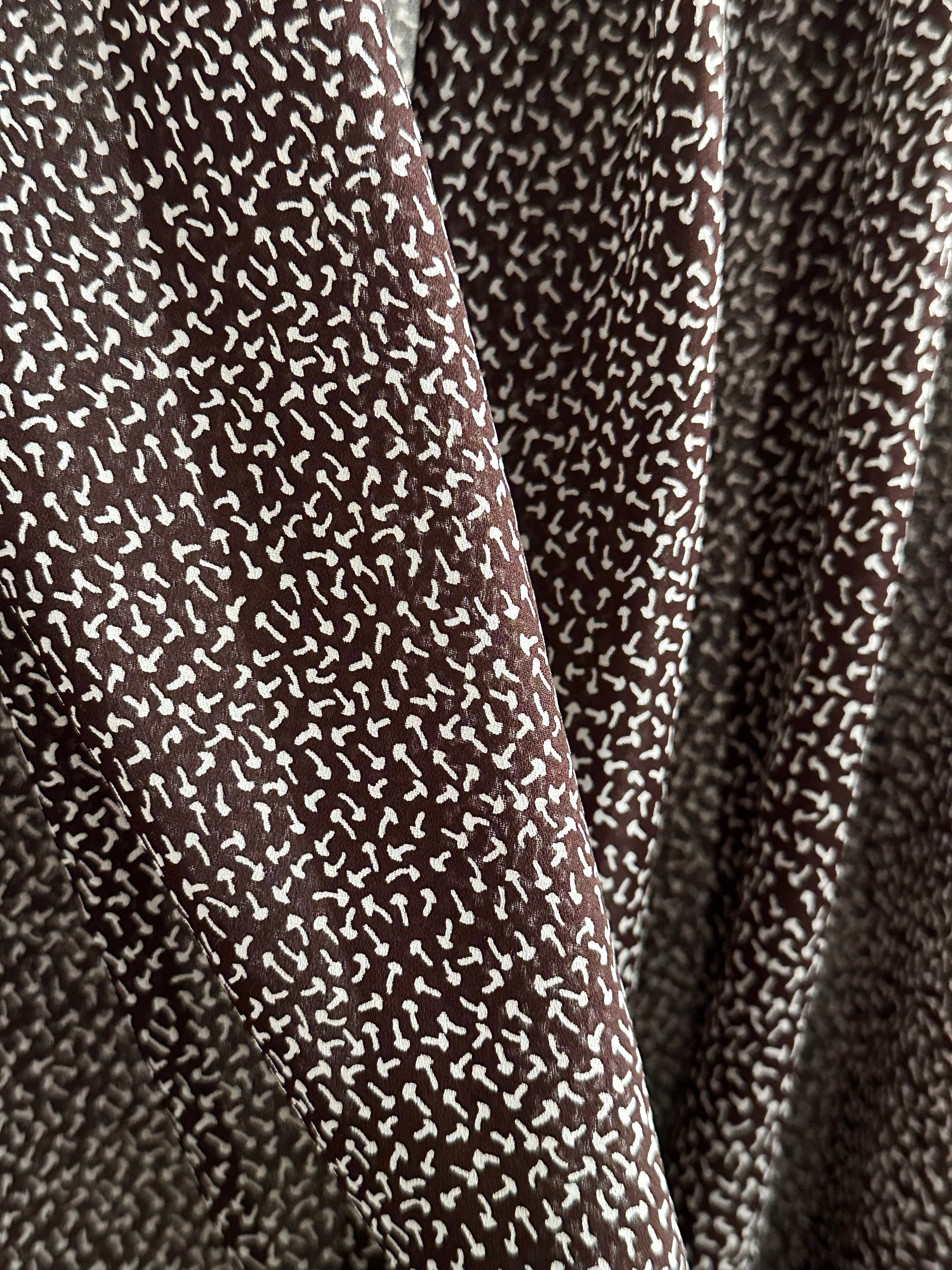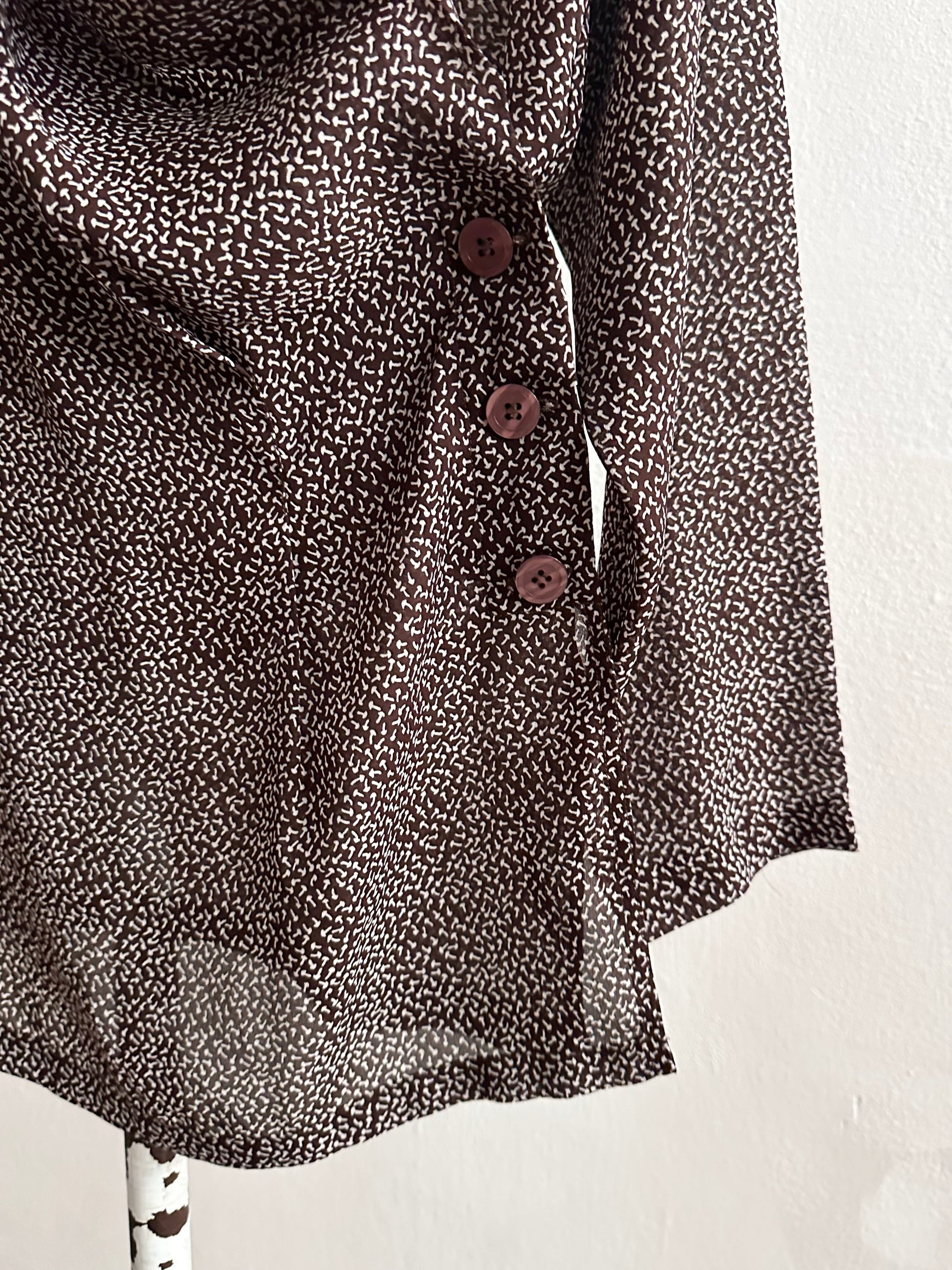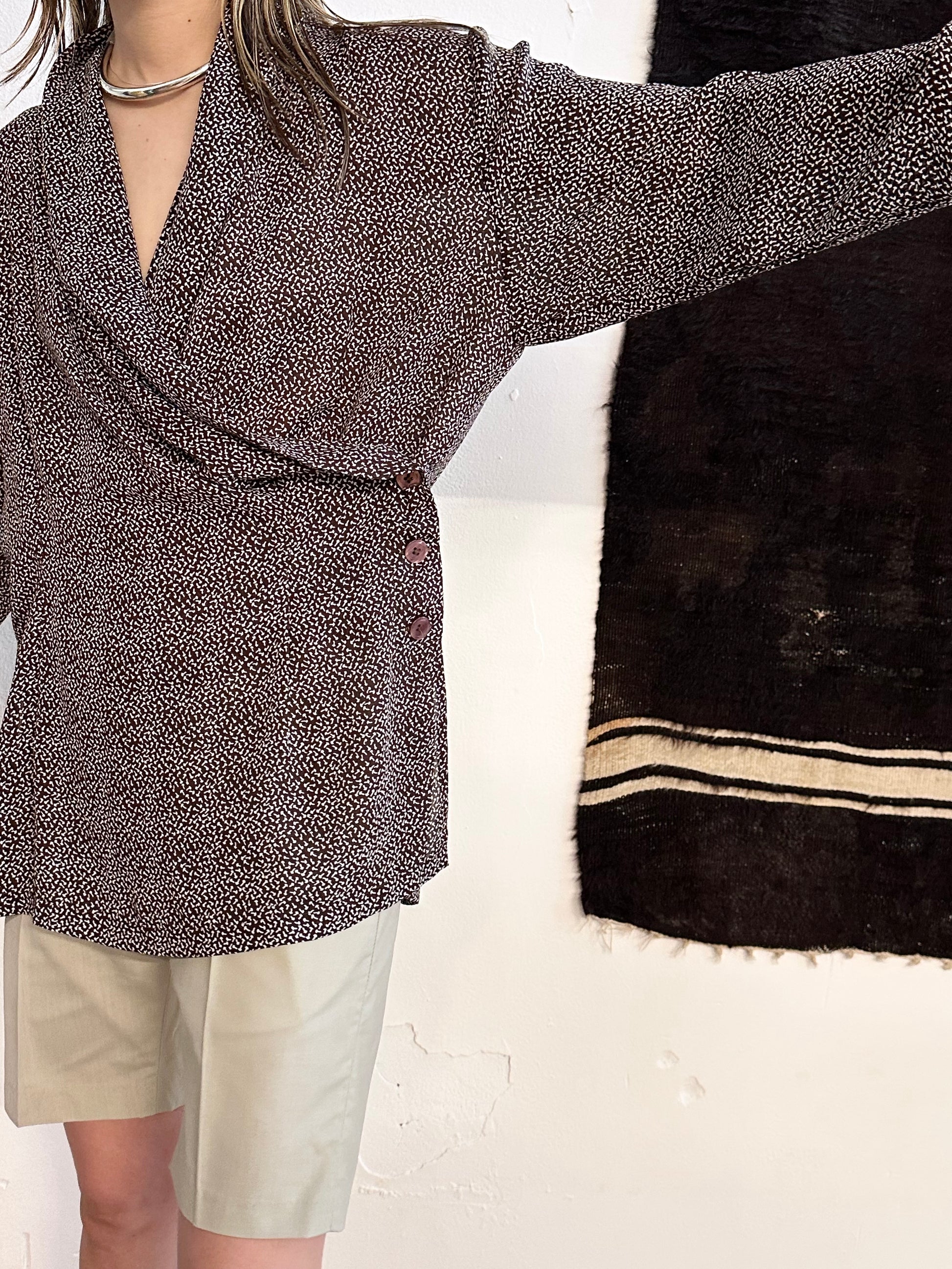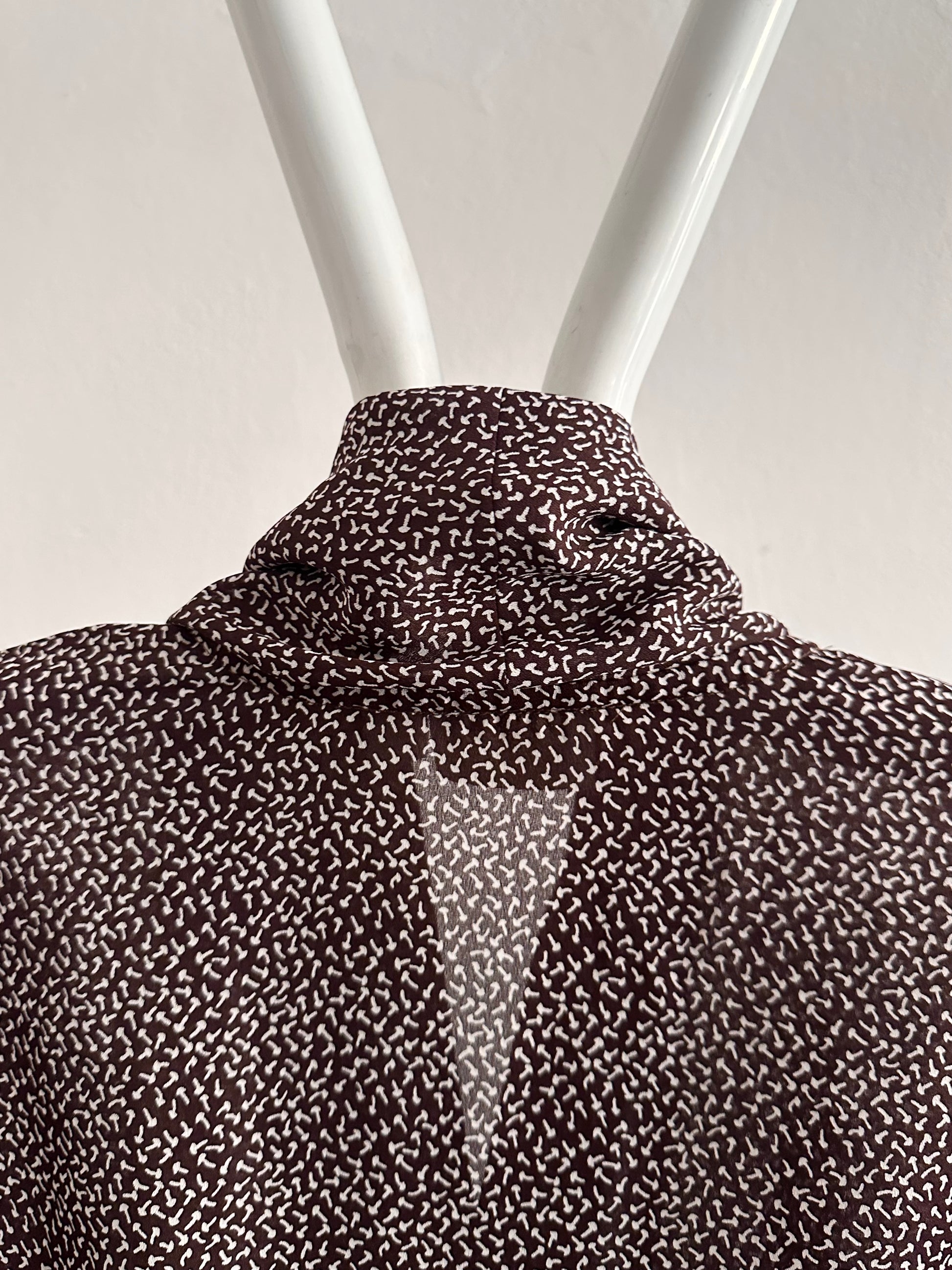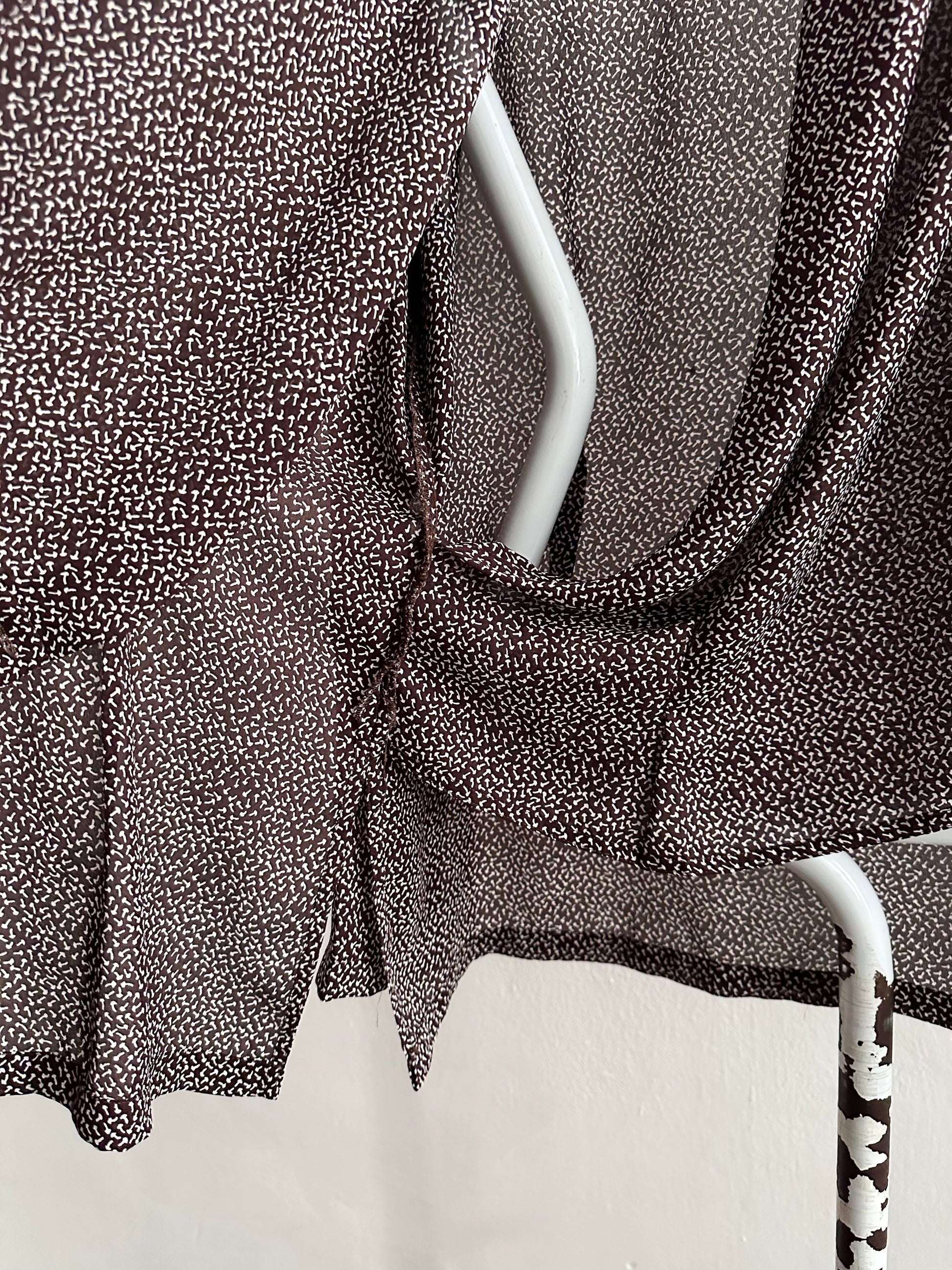 ブラウン調の夏のブラウス生地に、ゆったりとしたサイズのカシュクール。