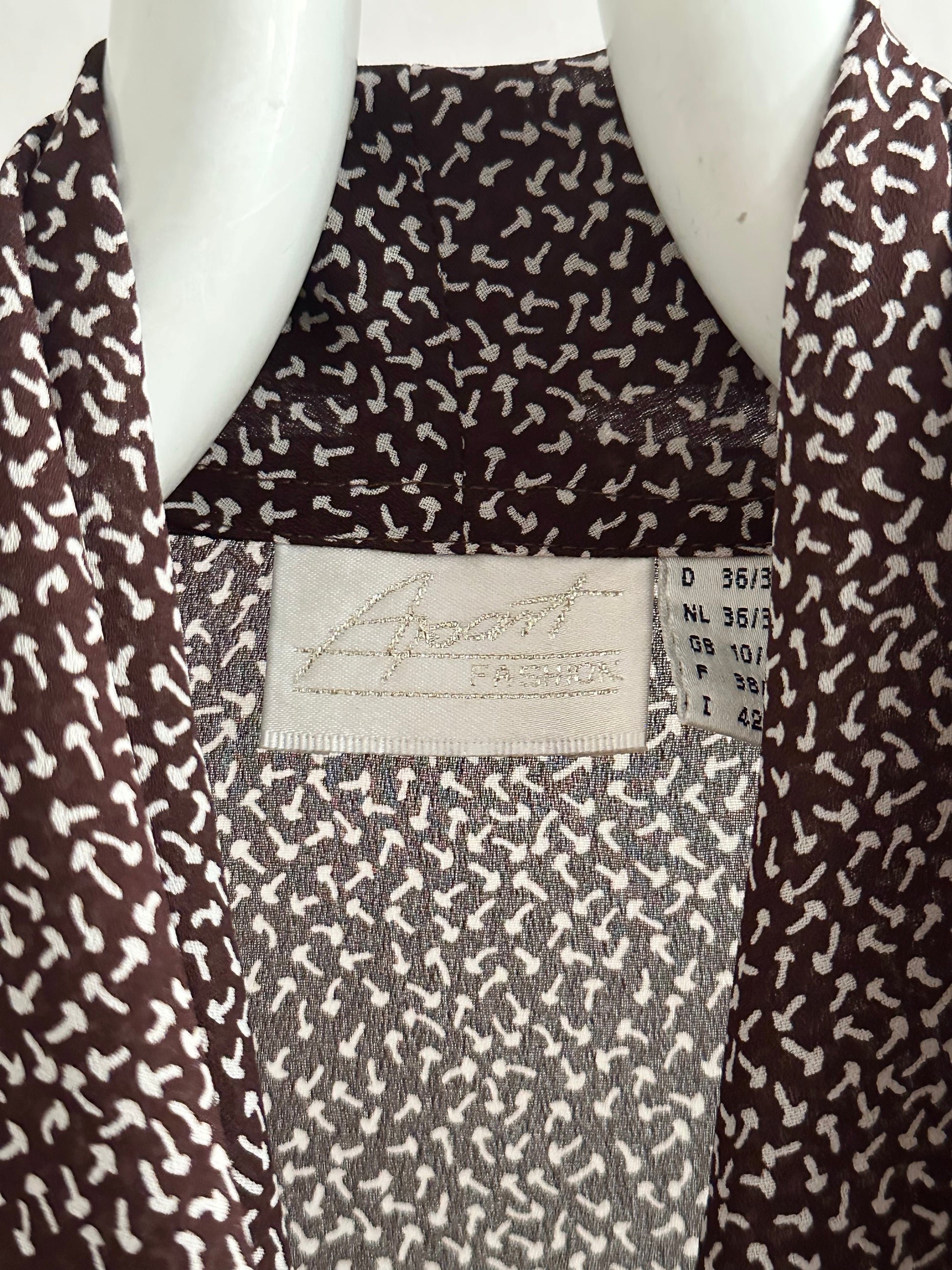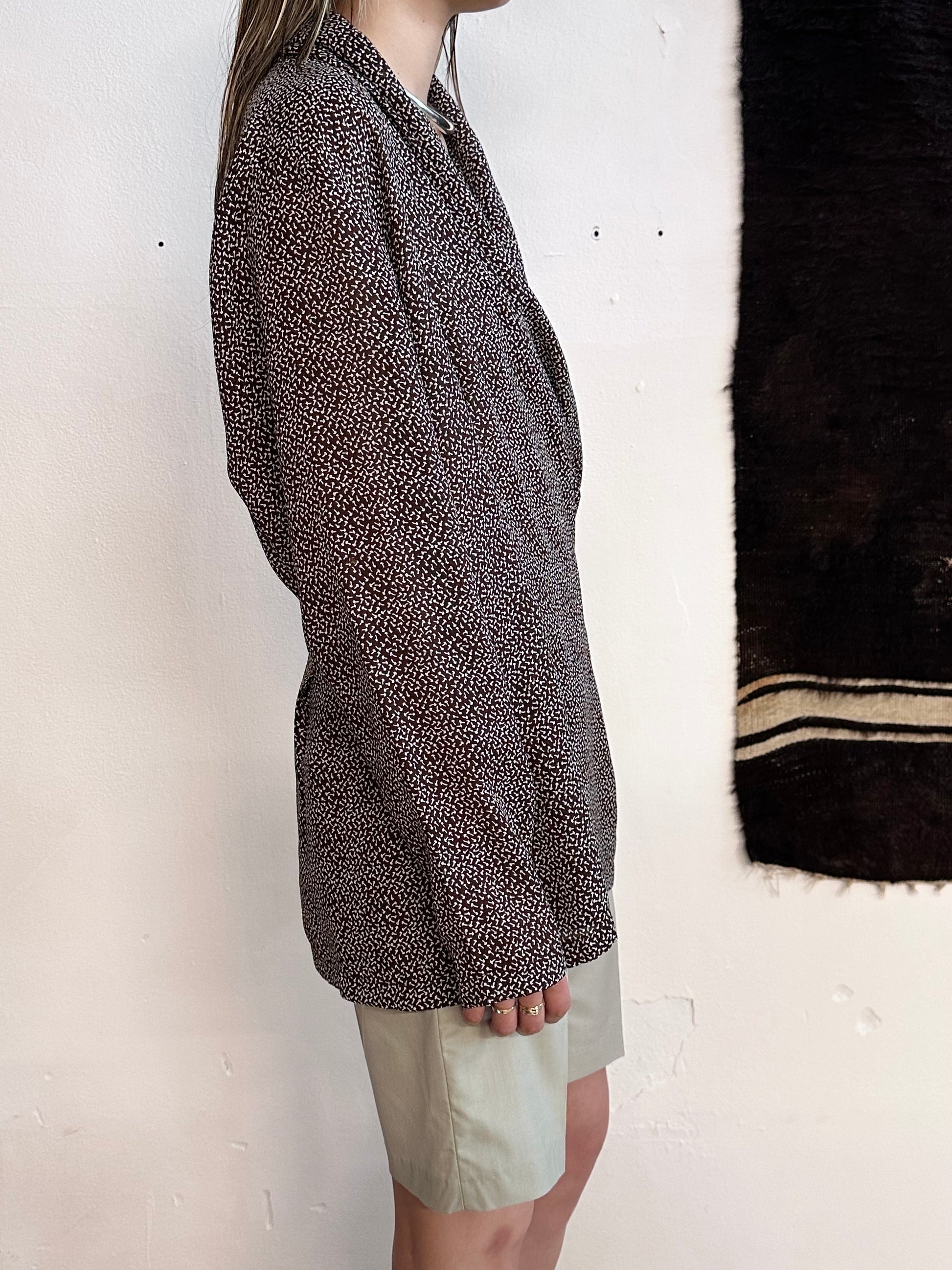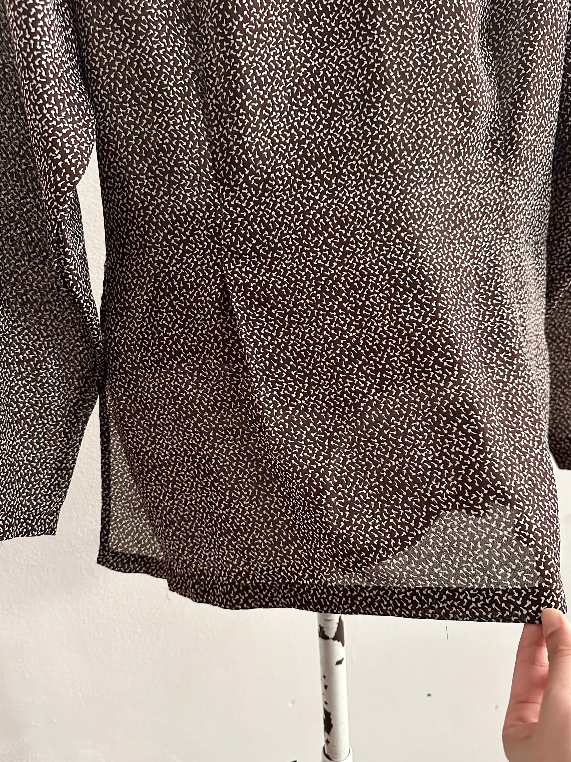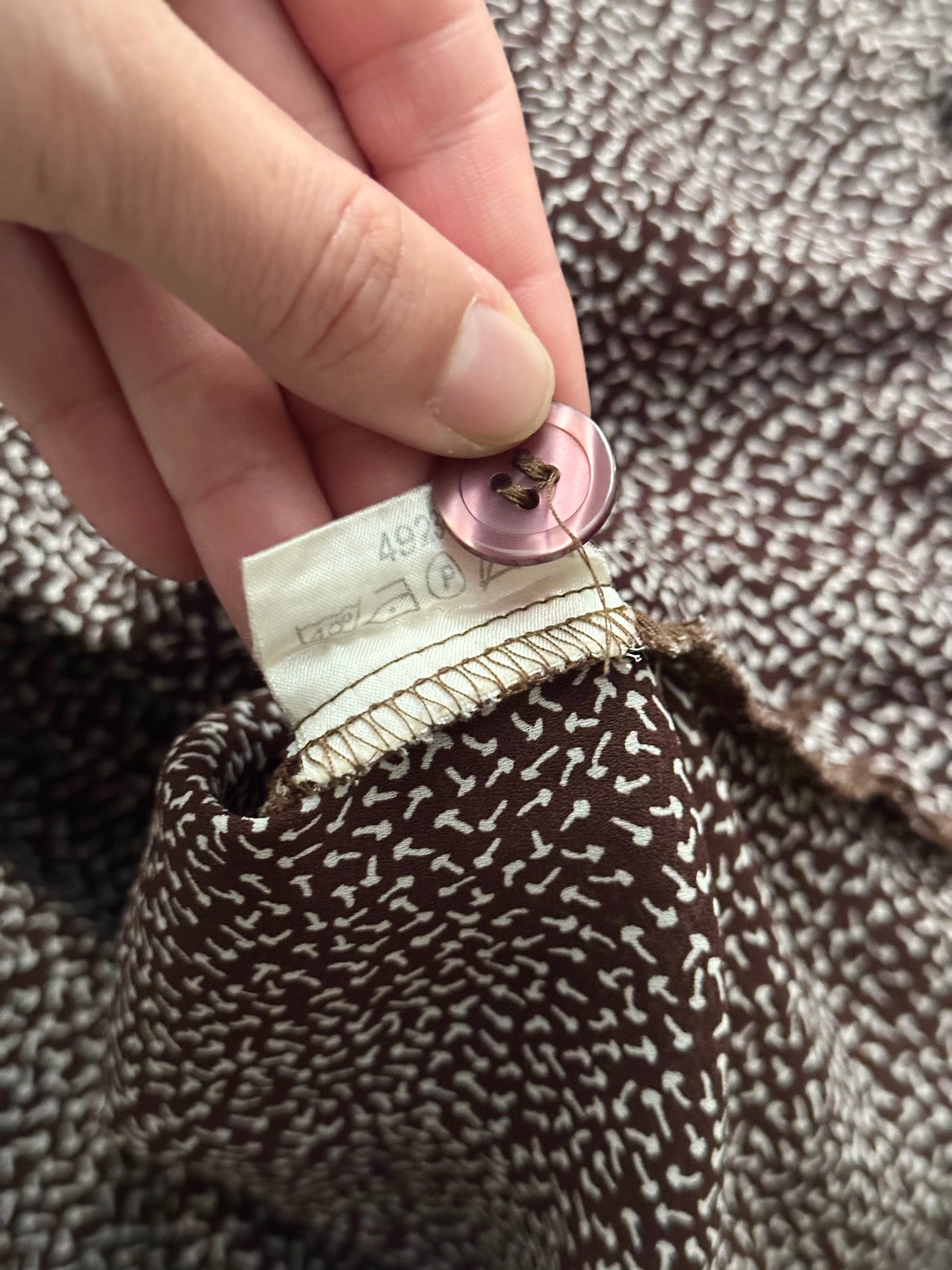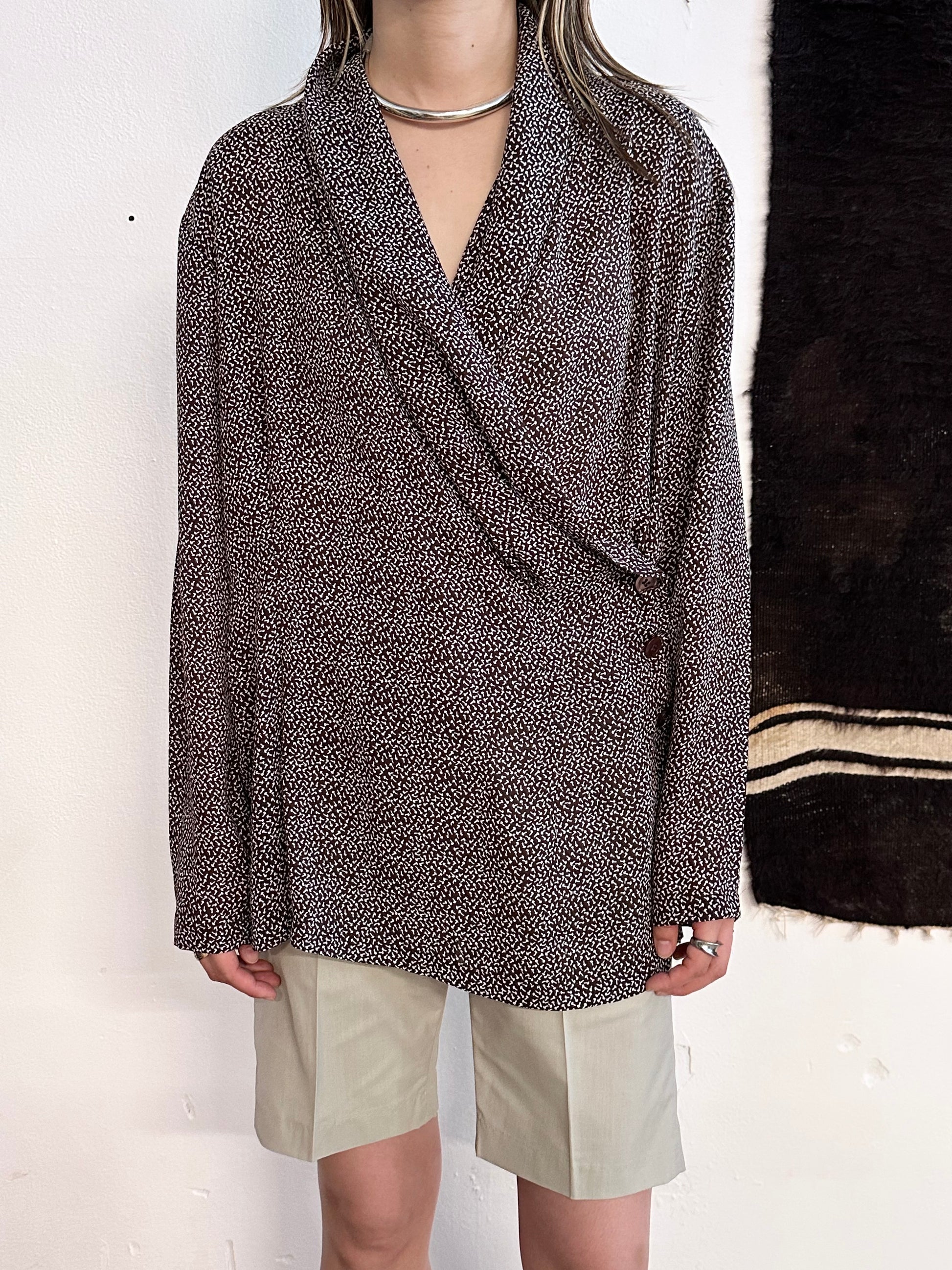 ブラウン調の夏のブラウス生地に、ゆったりとしたサイズのカシュクール。