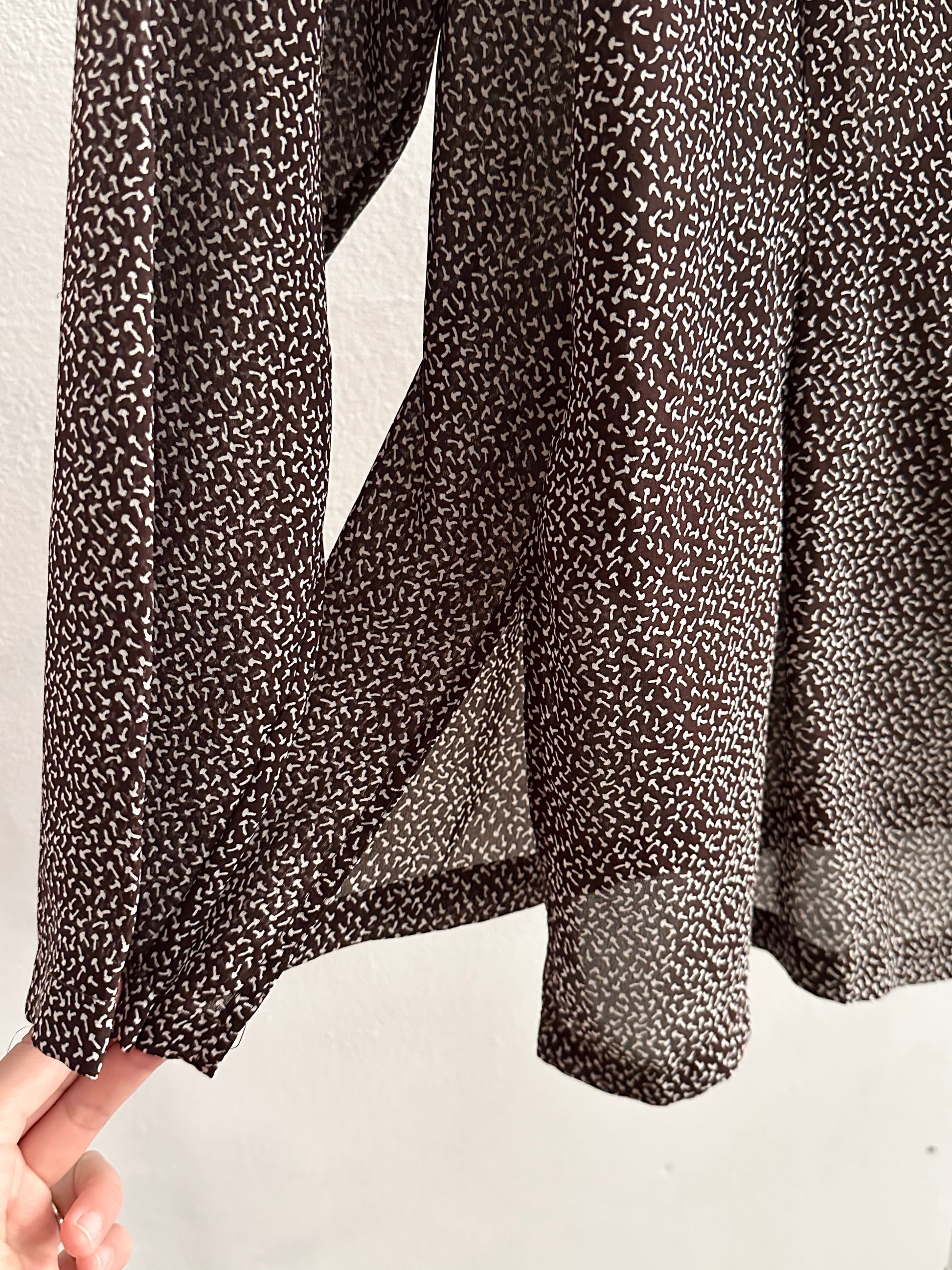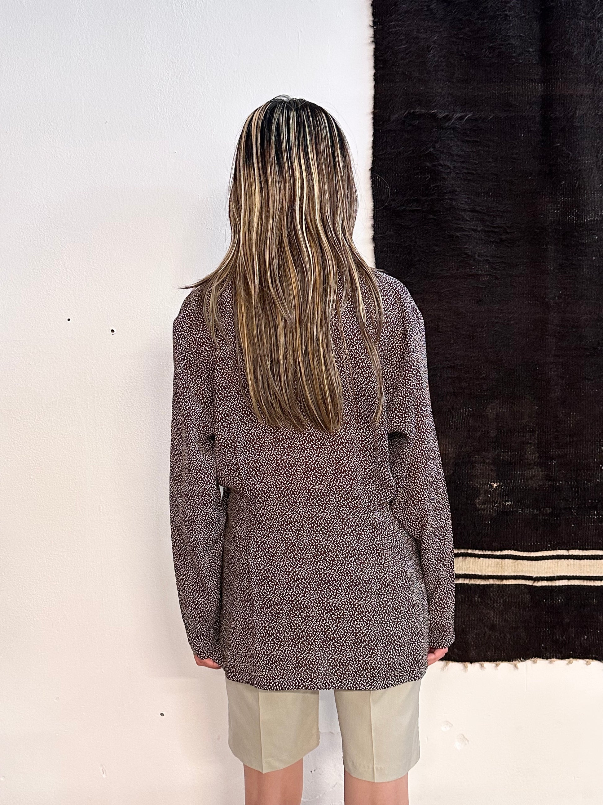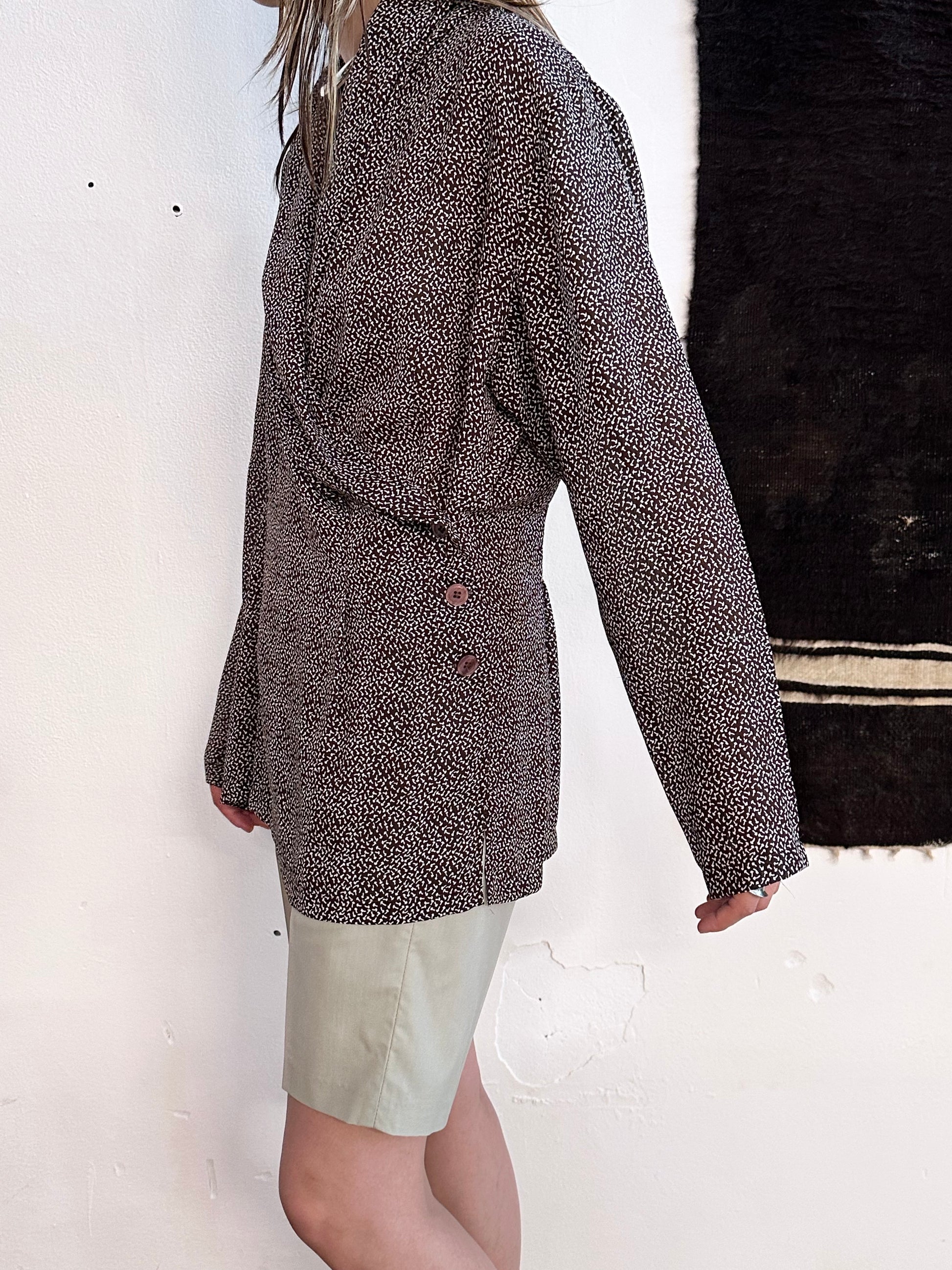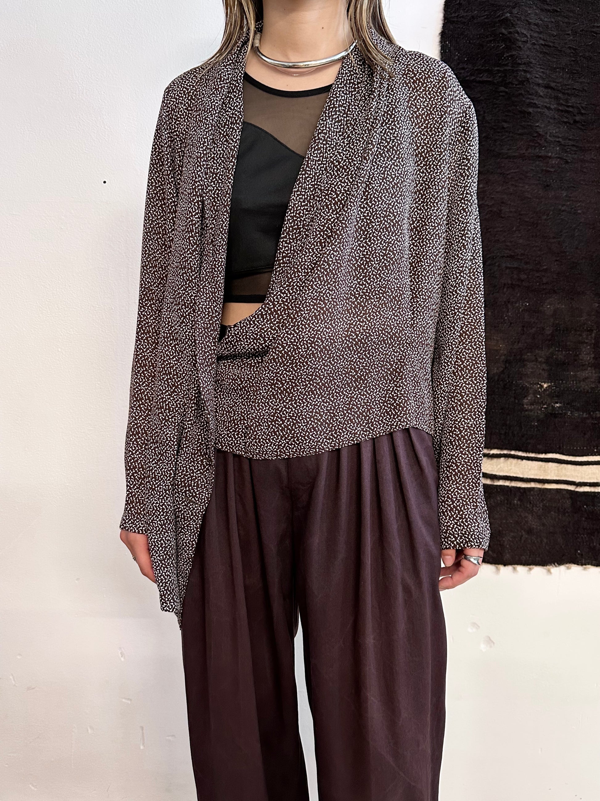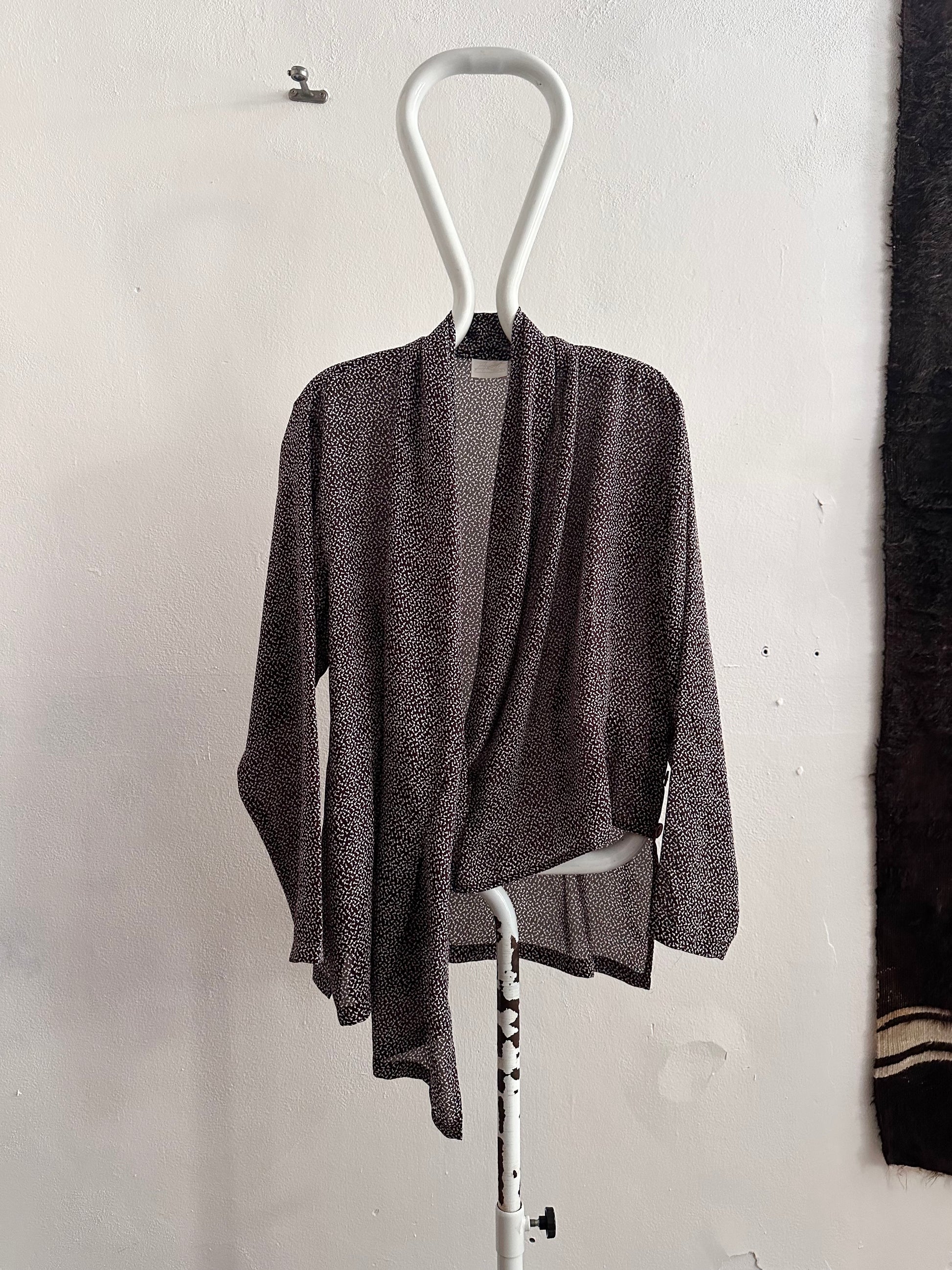 ブラウン調の夏のブラウス生地に、ゆったりとしたサイズのカシュクール。