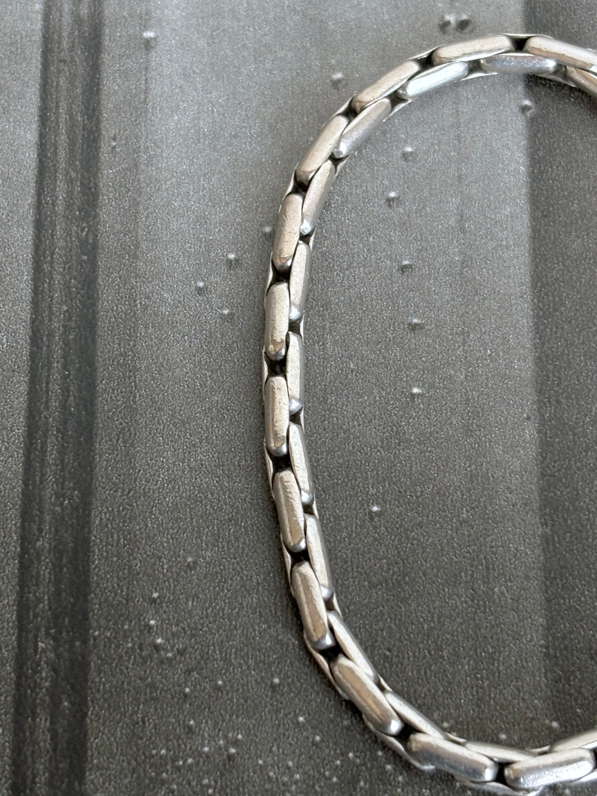 ワニとか蛇とか、怖い系の生き物のウロコみたいなチェーン。初めて出会いました。