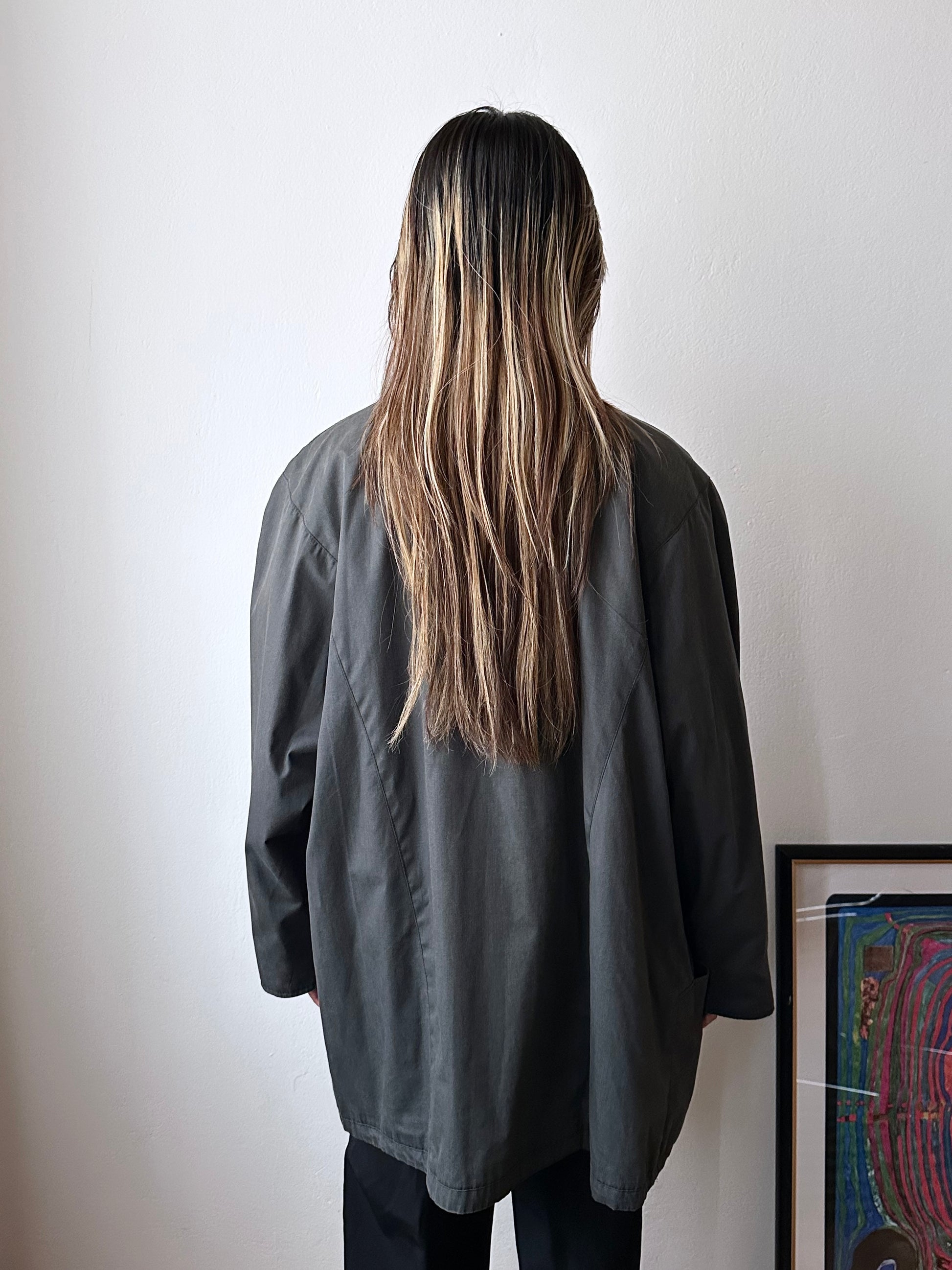 80sぐらいのドイツ、綿ポリスナップテーラードinグレー。