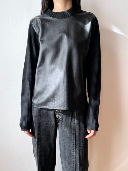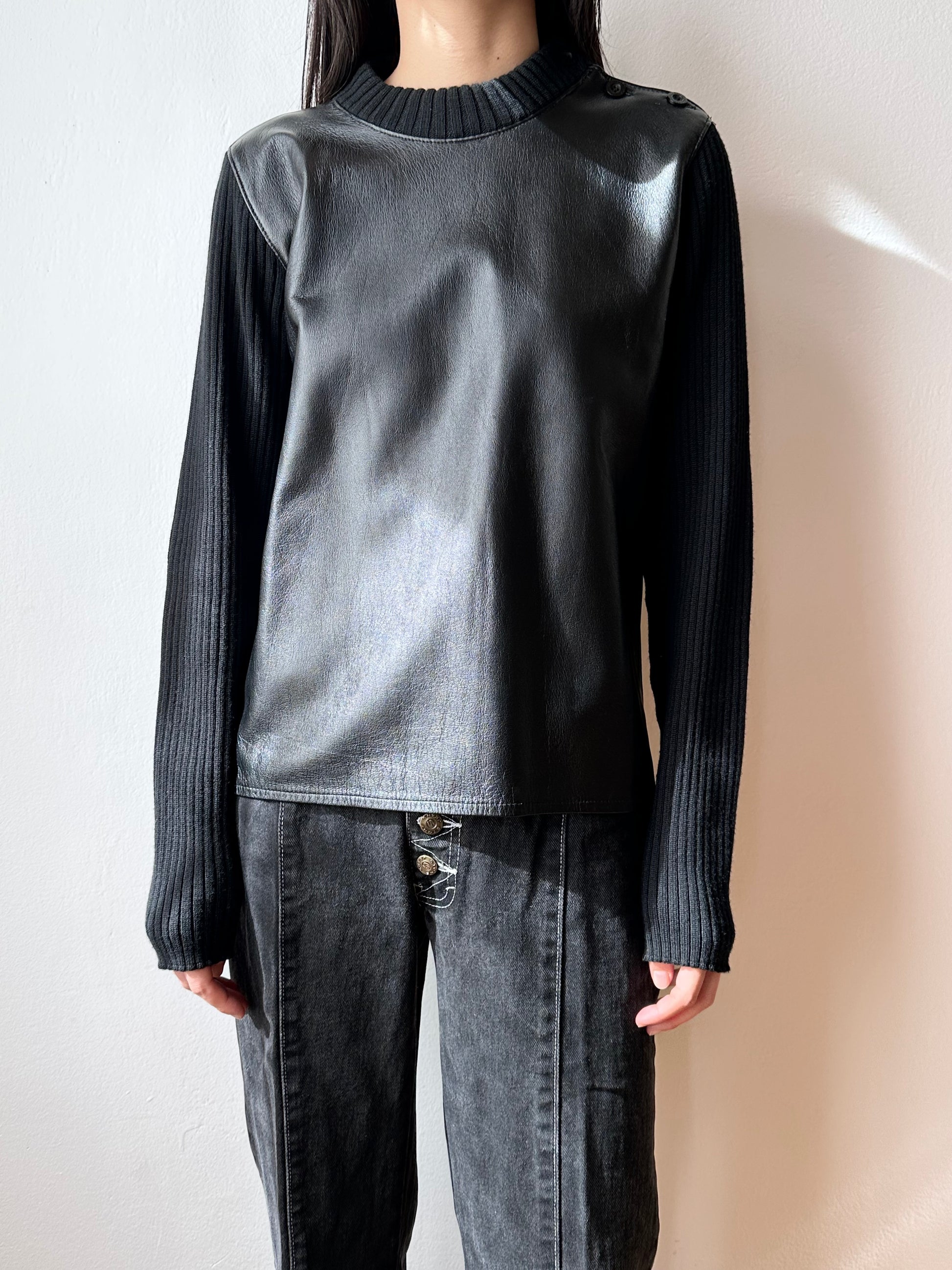 レザーとニットのドッキングはヴィンテージではたまに見かけますが、