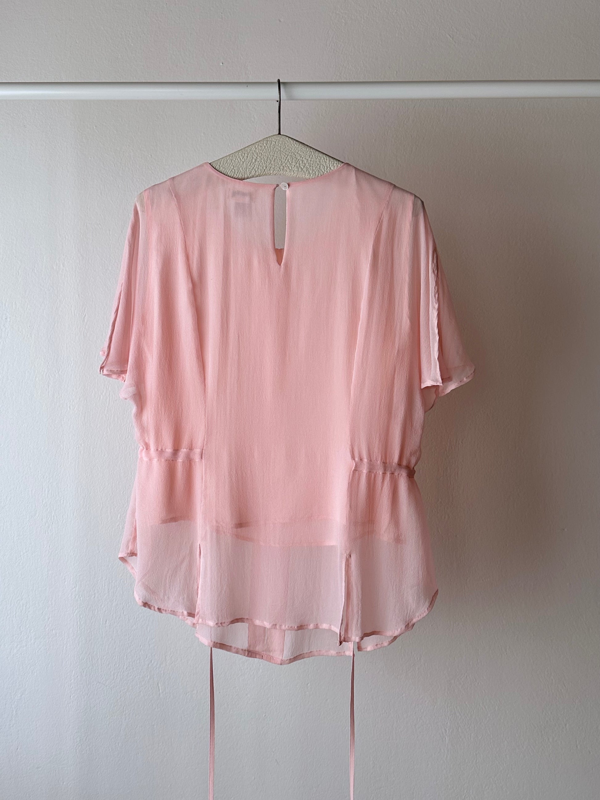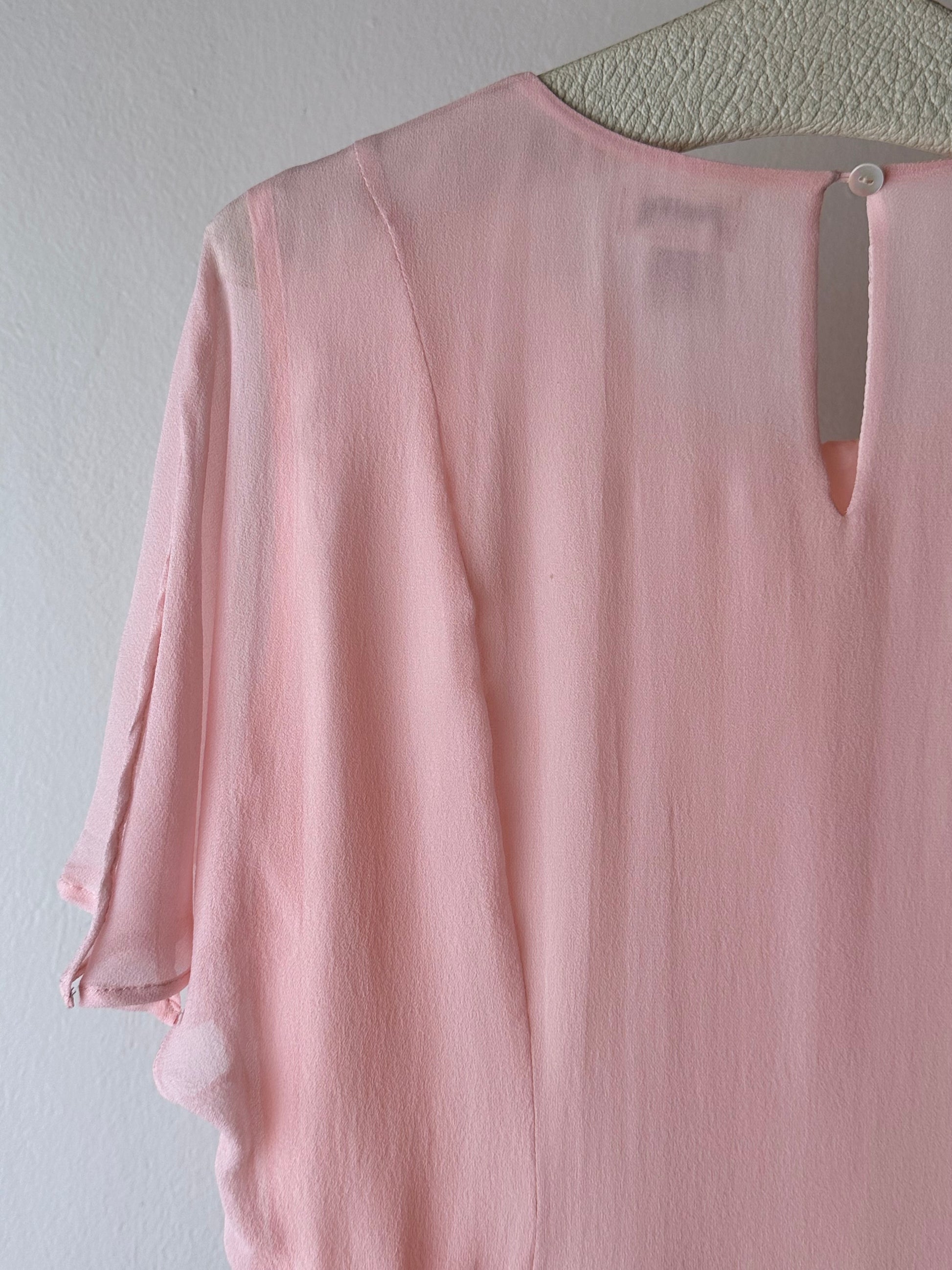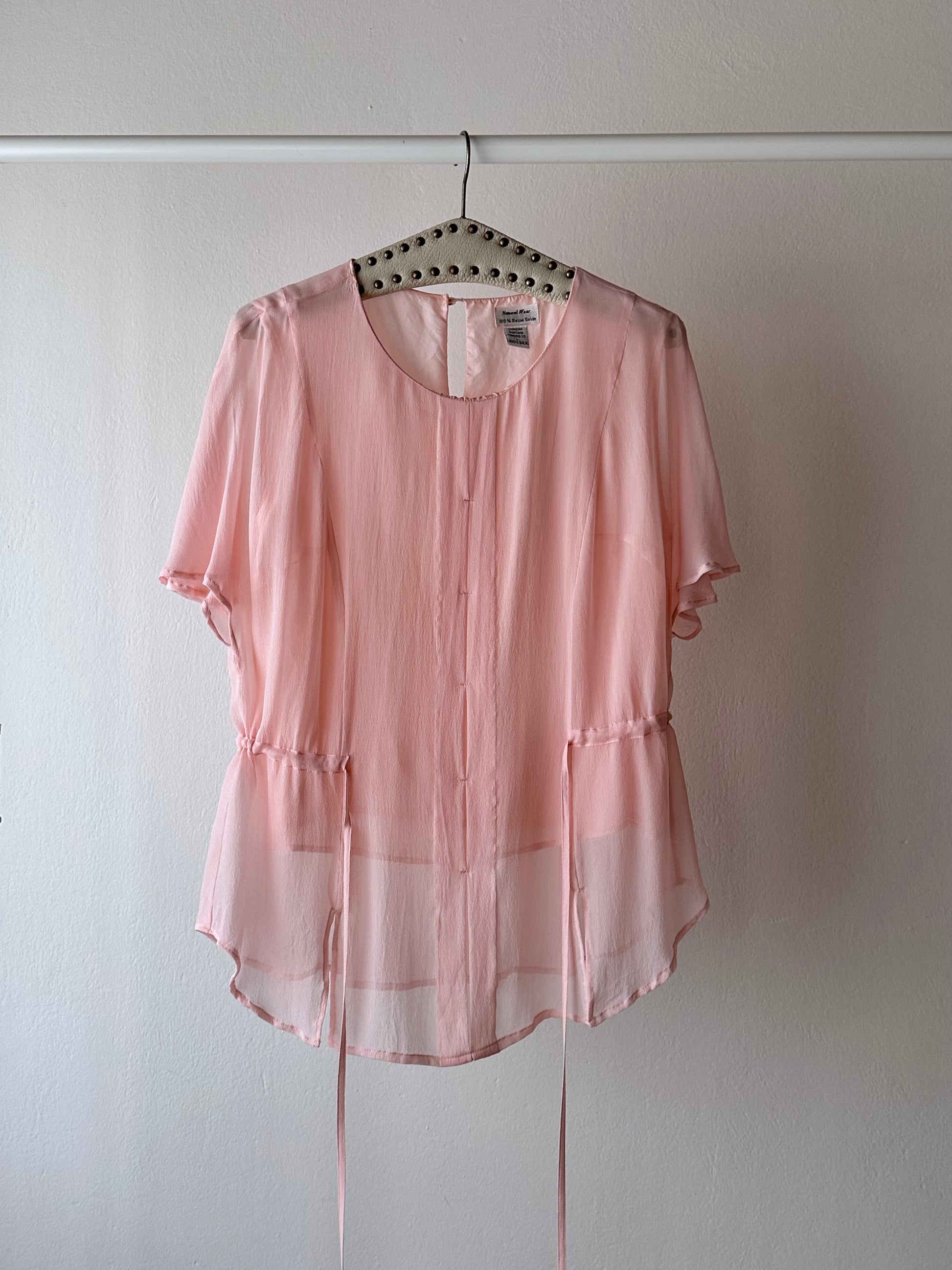 ベビーピンクのシルクブラウス。