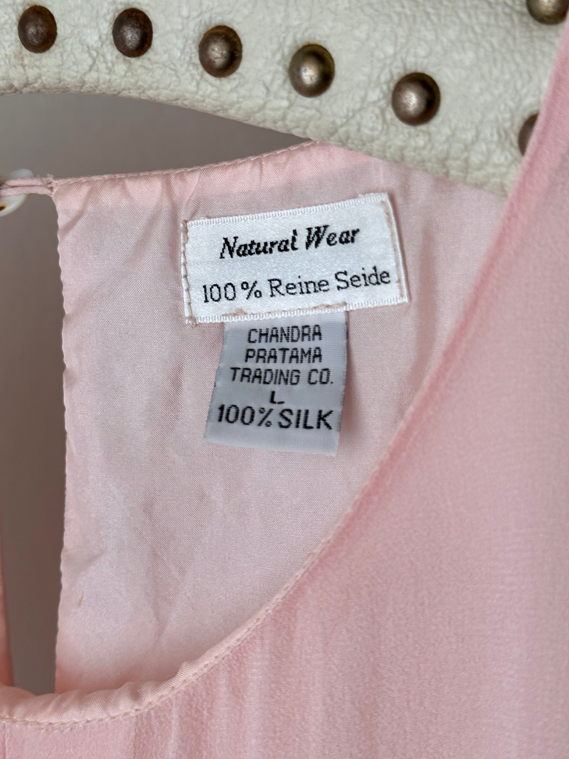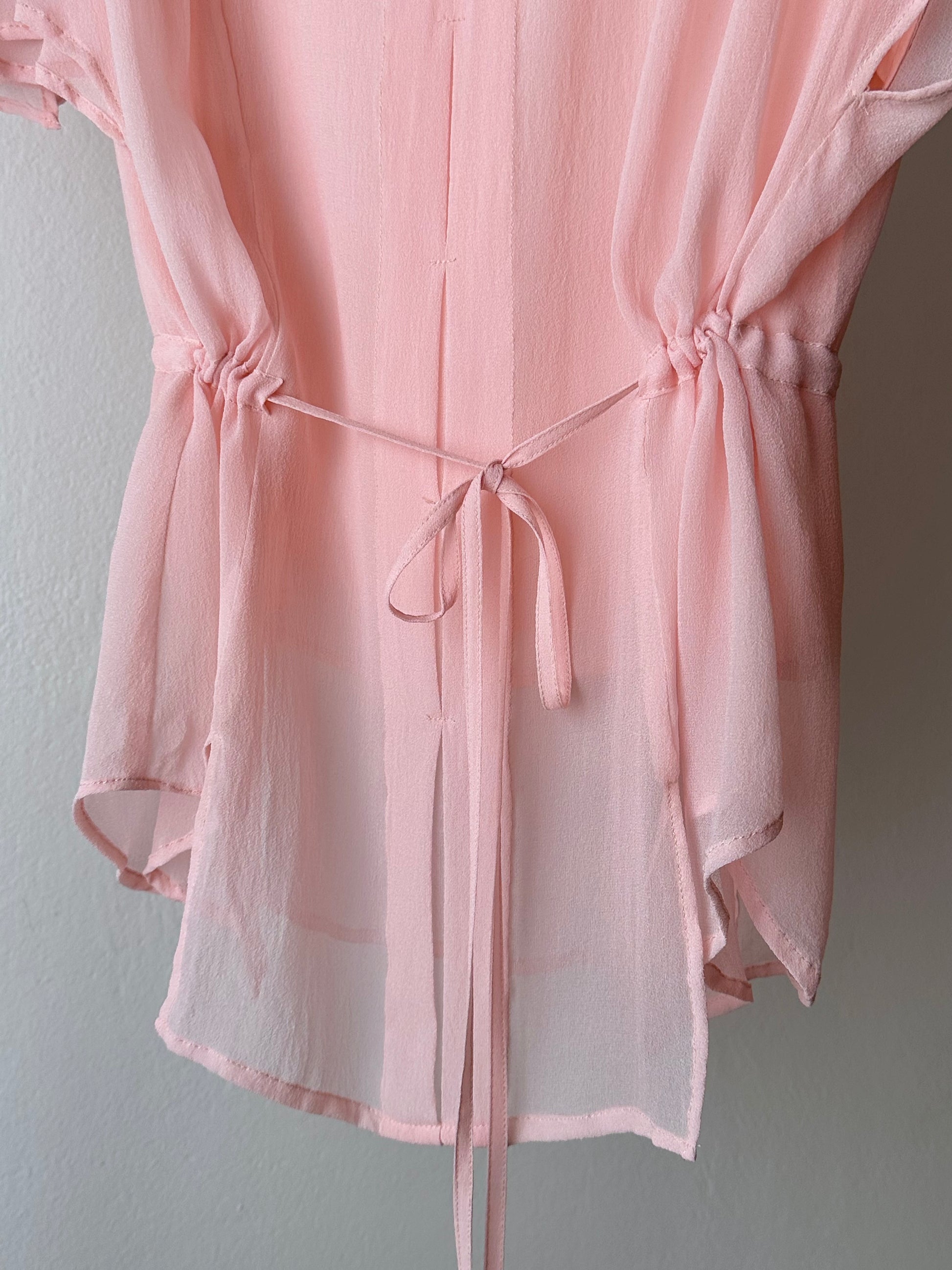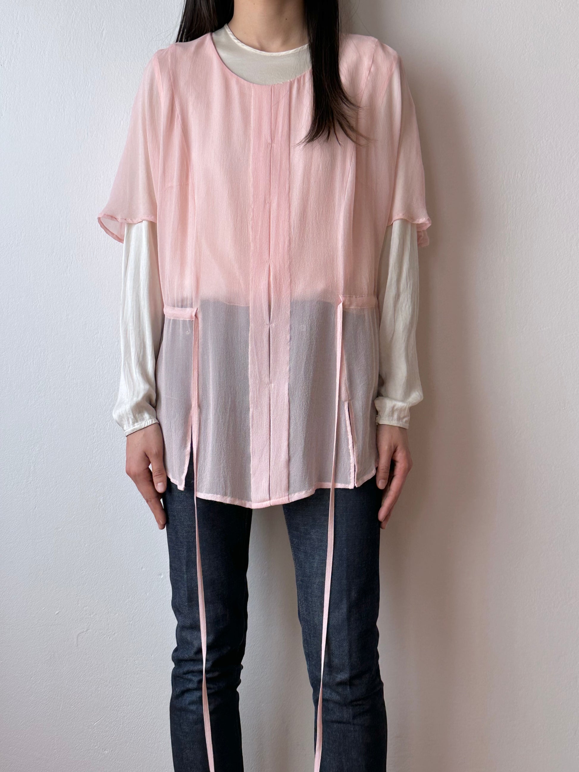 ベビーピンクのシルクブラウス。