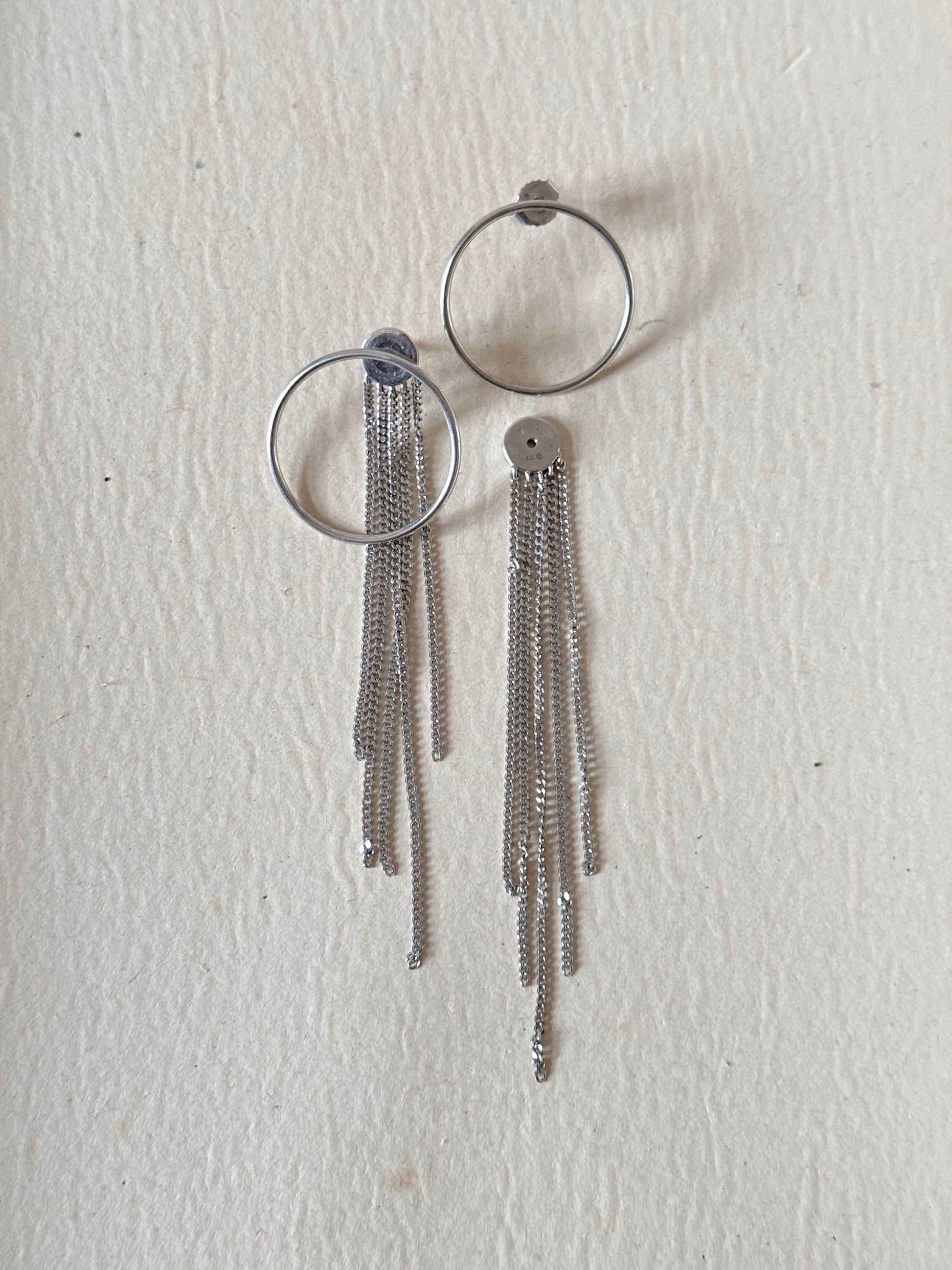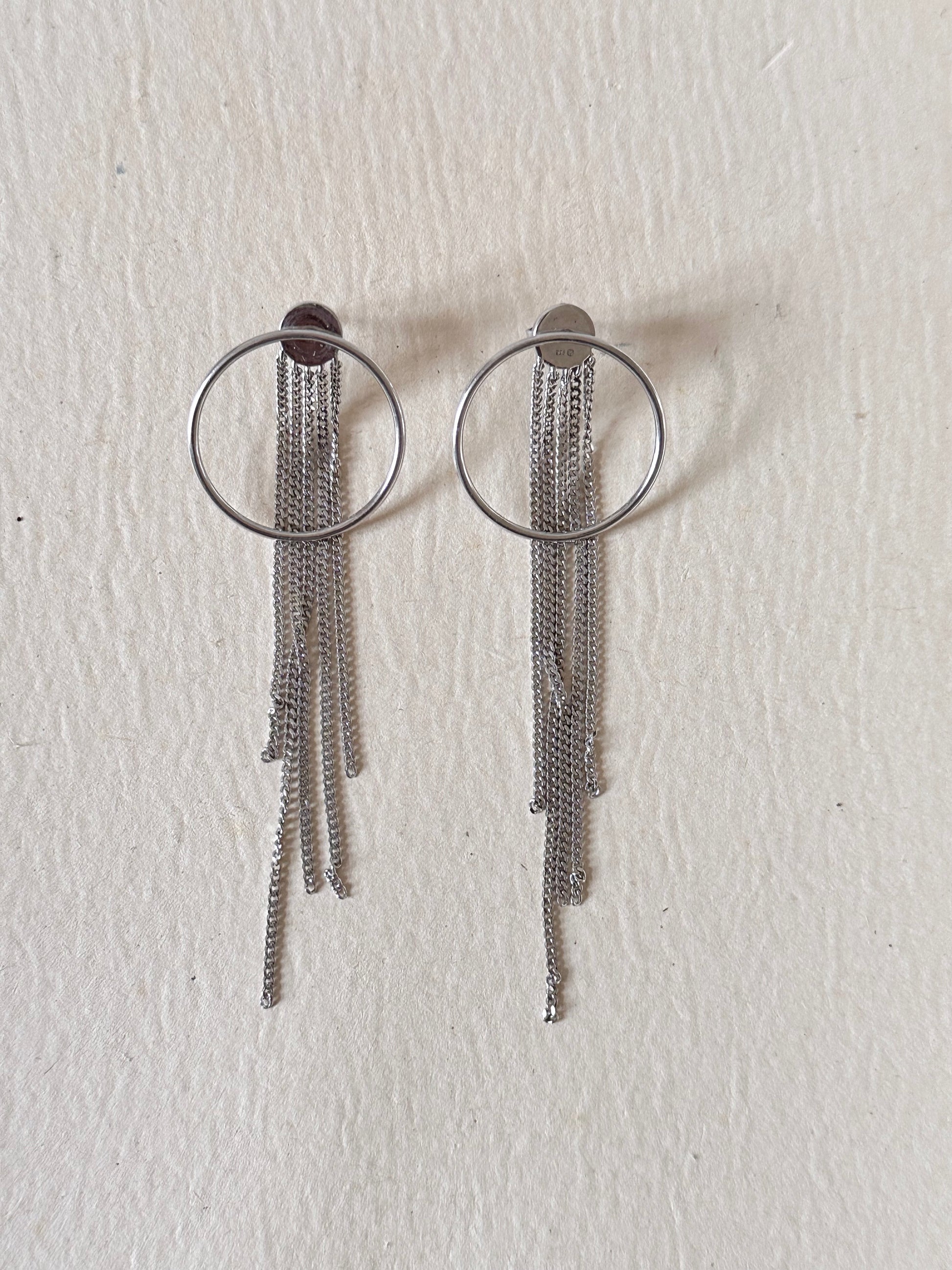 丸いパーツとにフリンジが組み合わさった揺れるデザインですが、