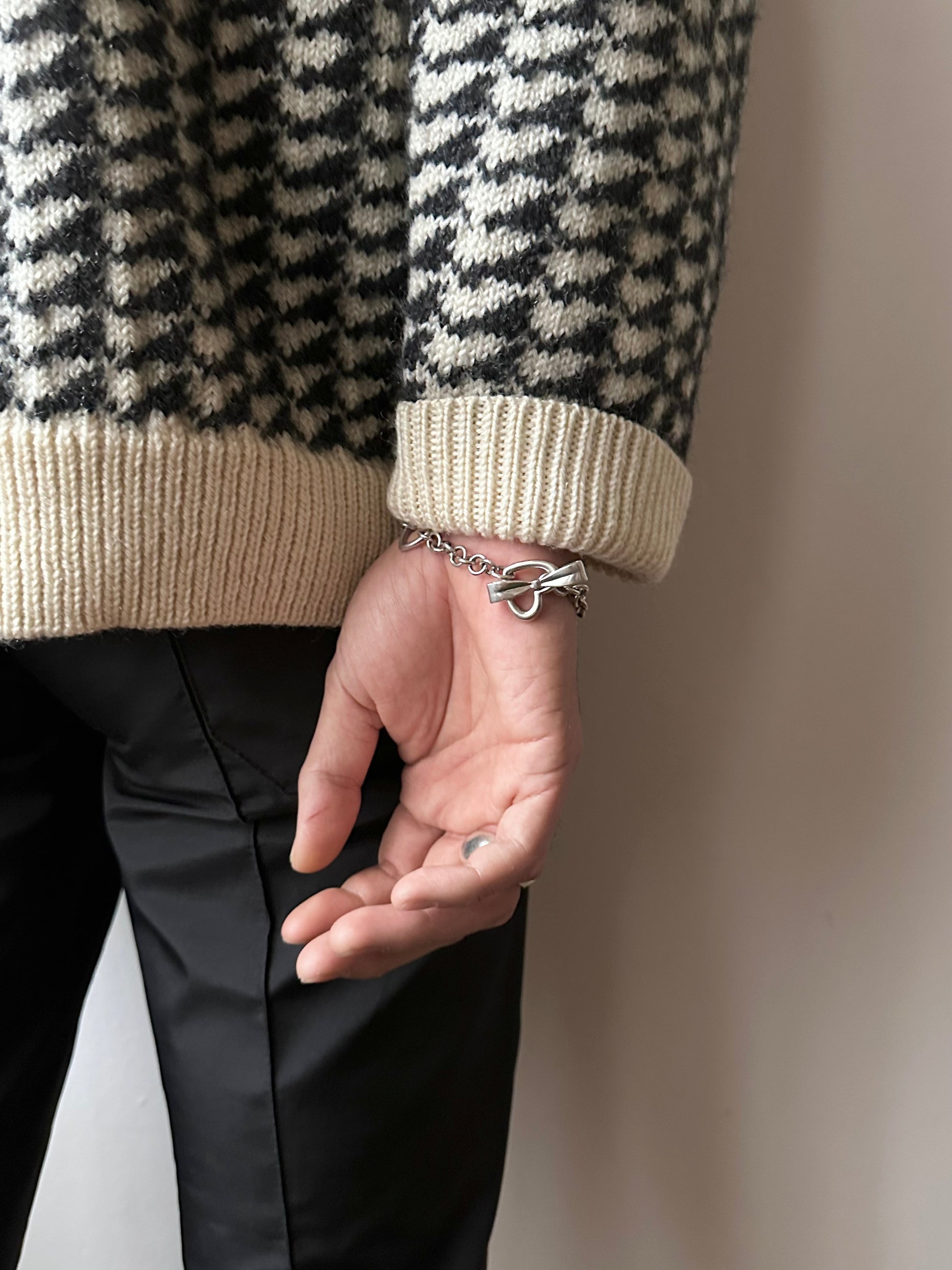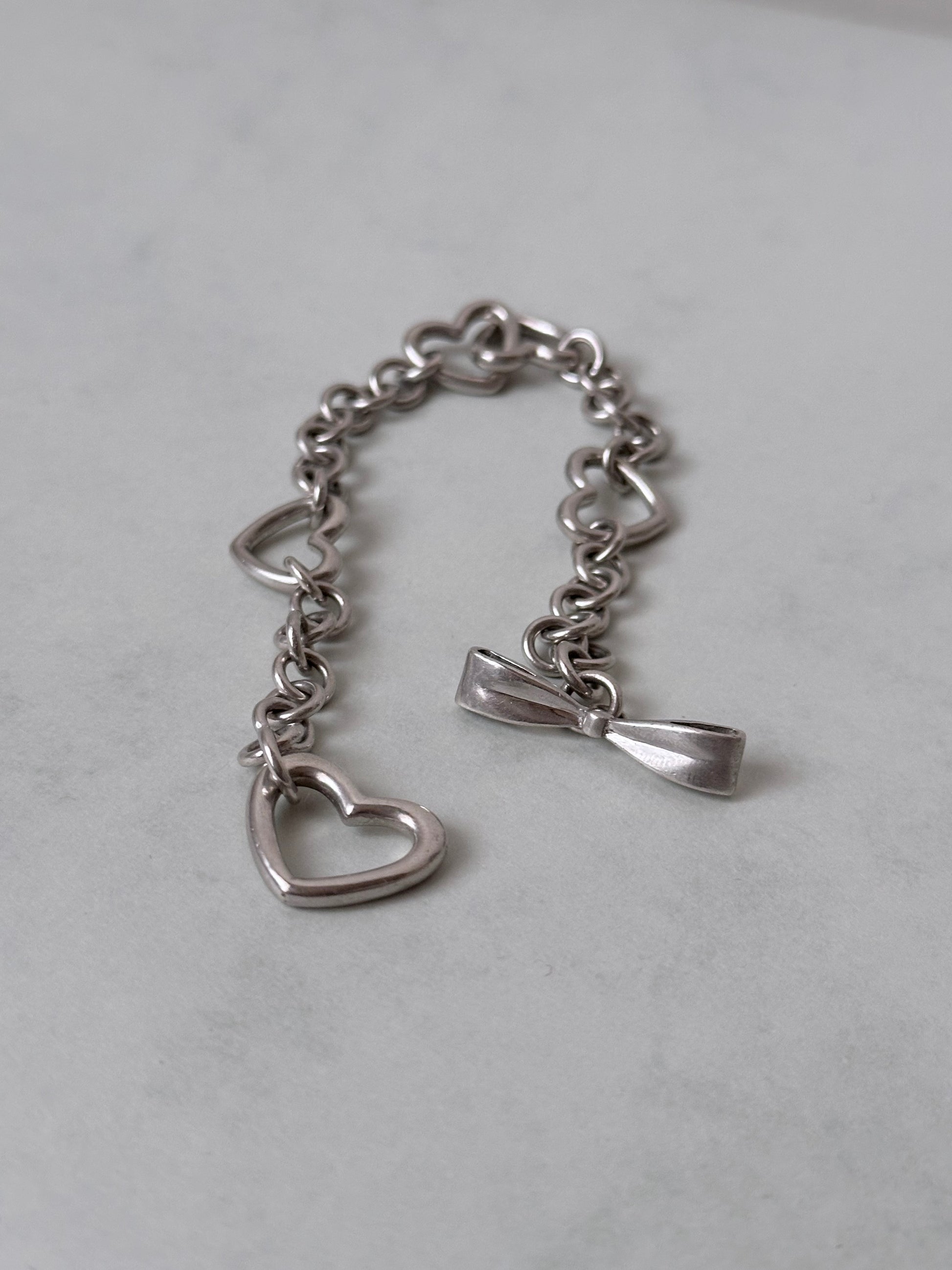 Vintage 925 heart link bracelet with ribbon clasp