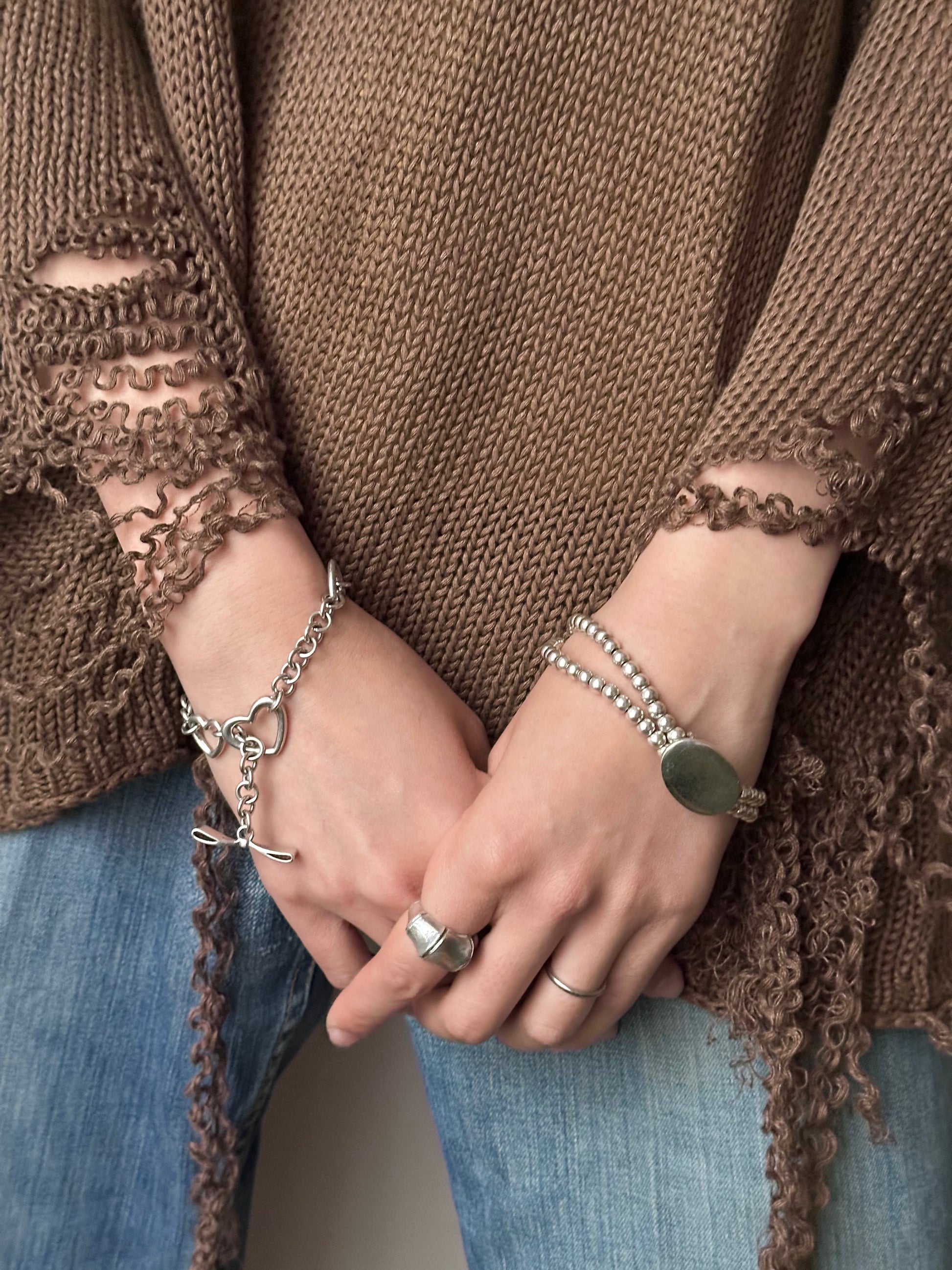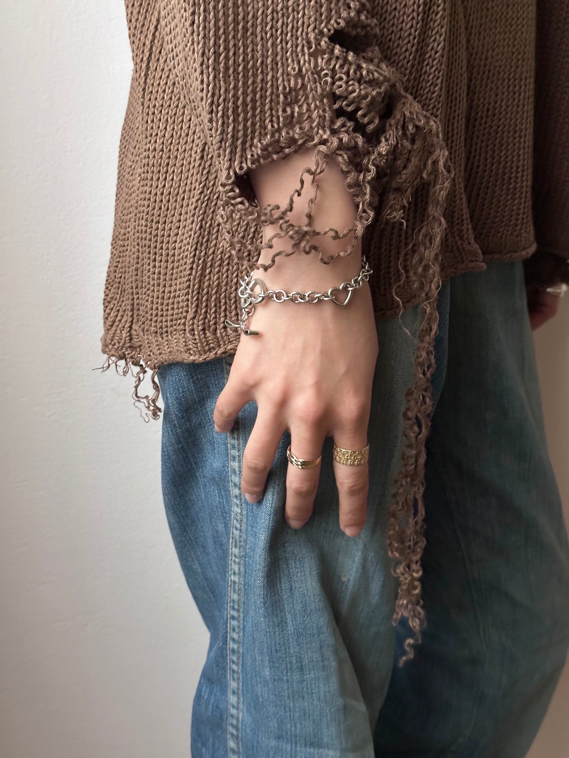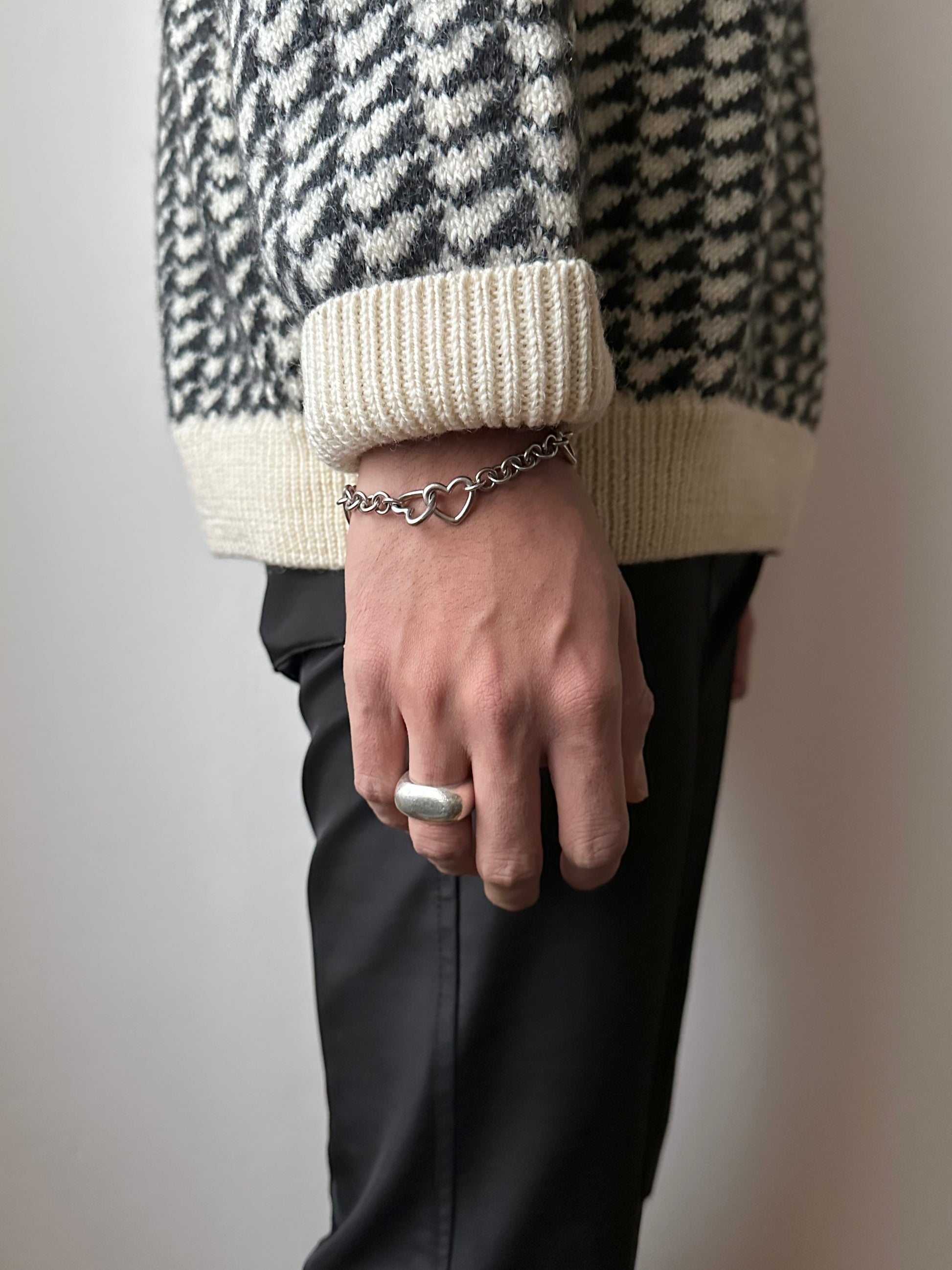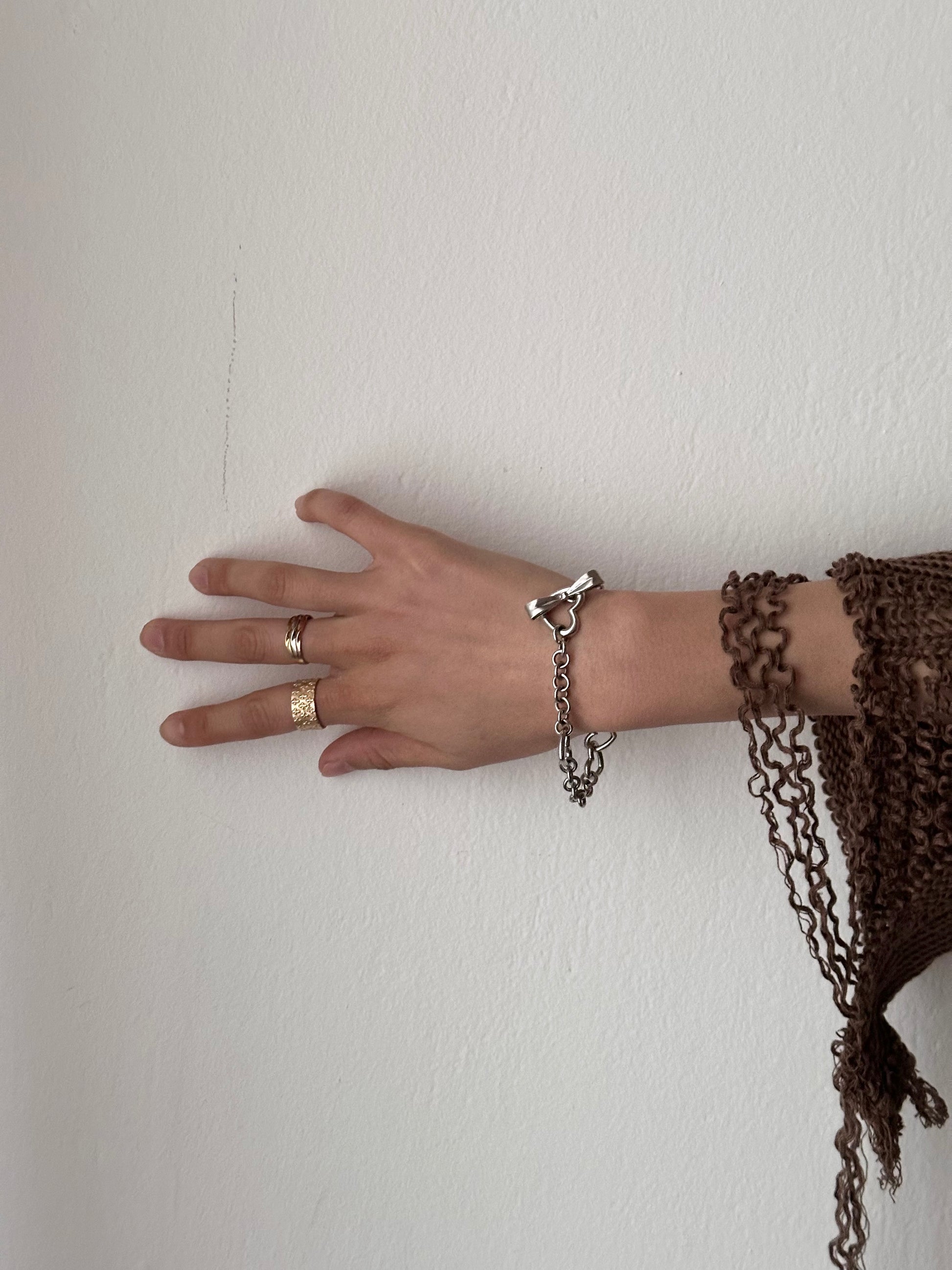 シルバー925のハートとリボンの入り乱れたブレスレット。