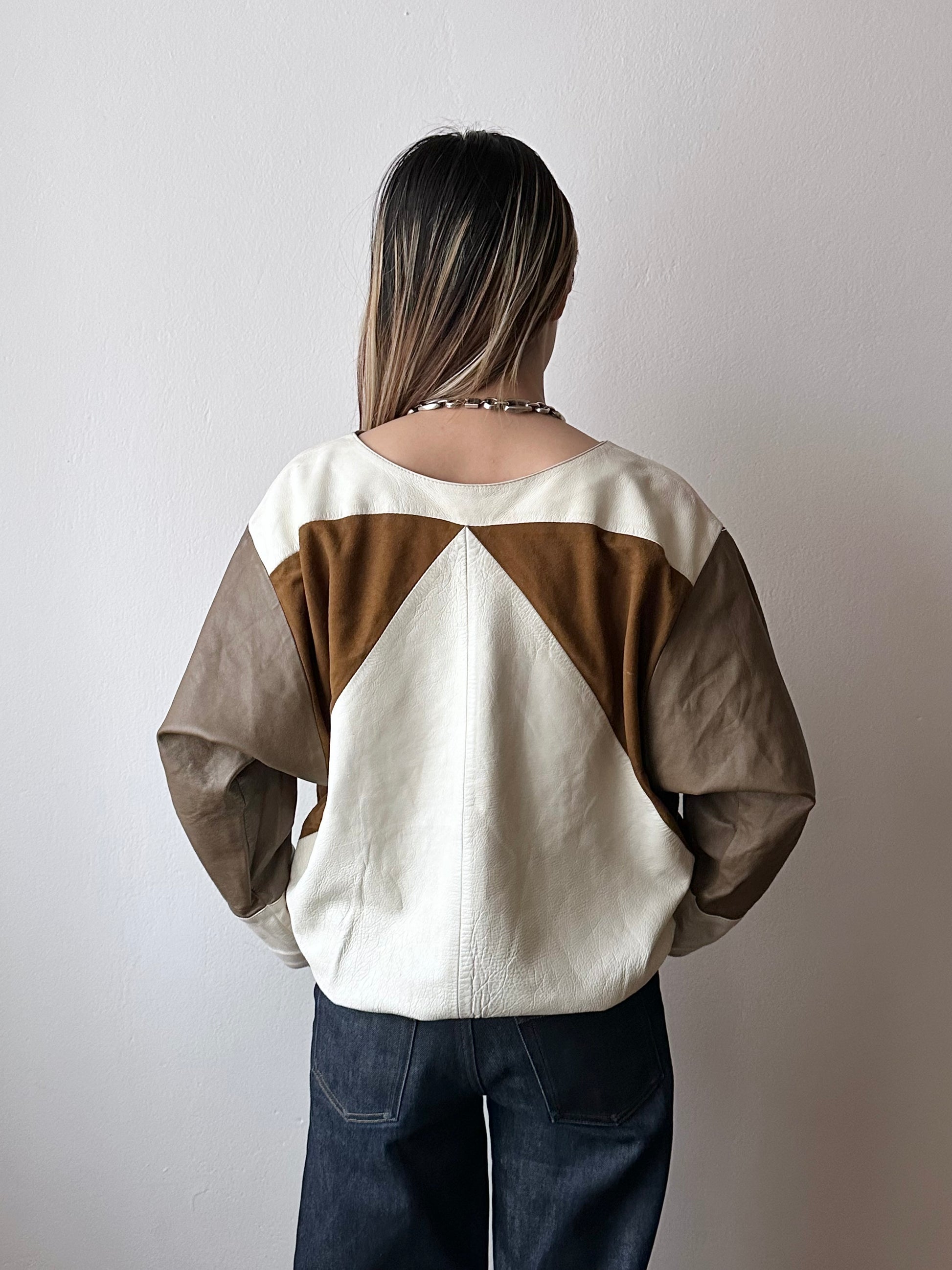 ヴィンテージでも色々なデザインがありますが、今回のものは白レザーをベースに2種のブラウンレザーがドッキングされてます。