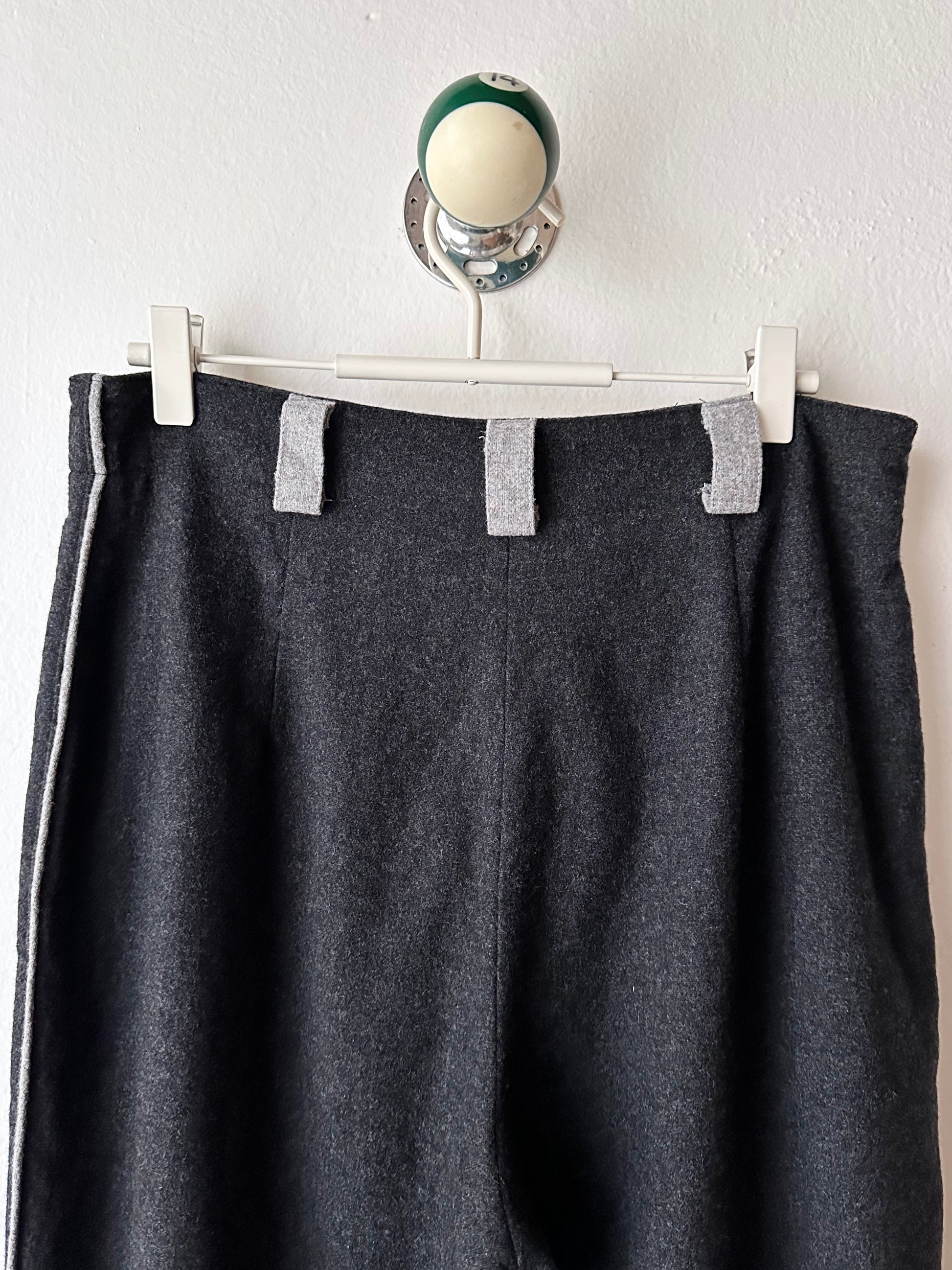 チャコールグレーに、ベルトループやパイピング、ラインはライトグレー、