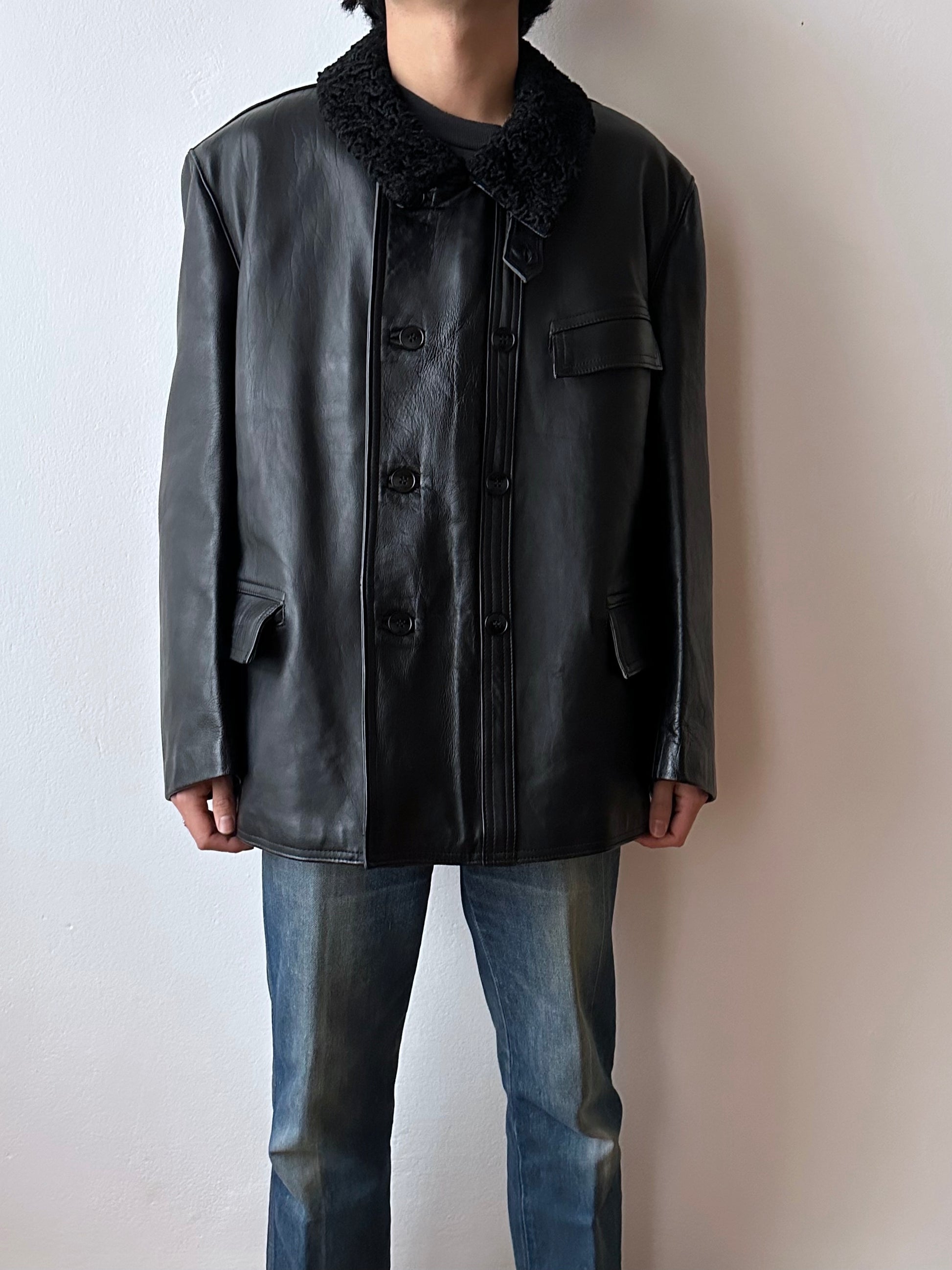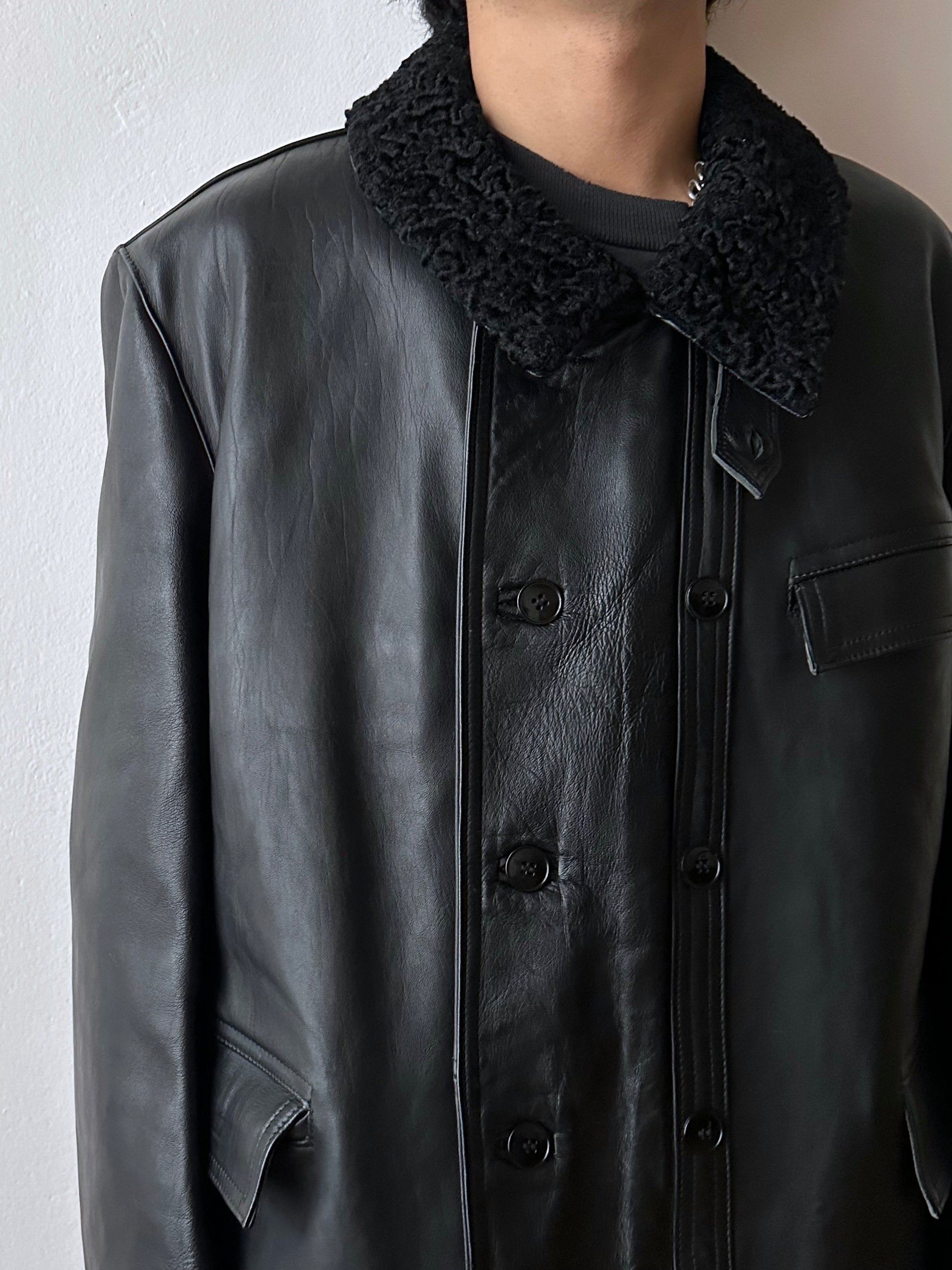 Material - 素材 Body Leather, Collar wool, Lining wool and viscose.