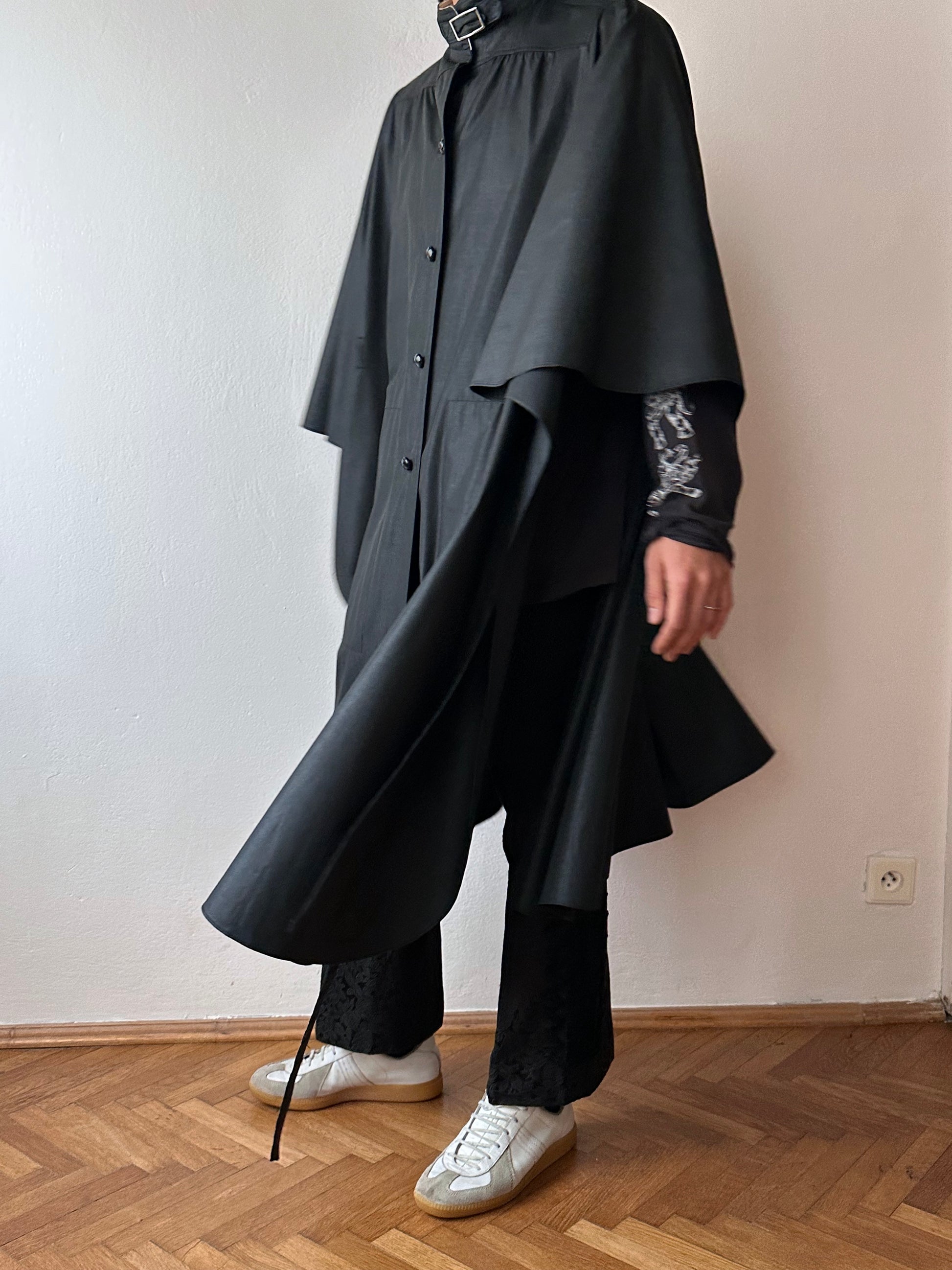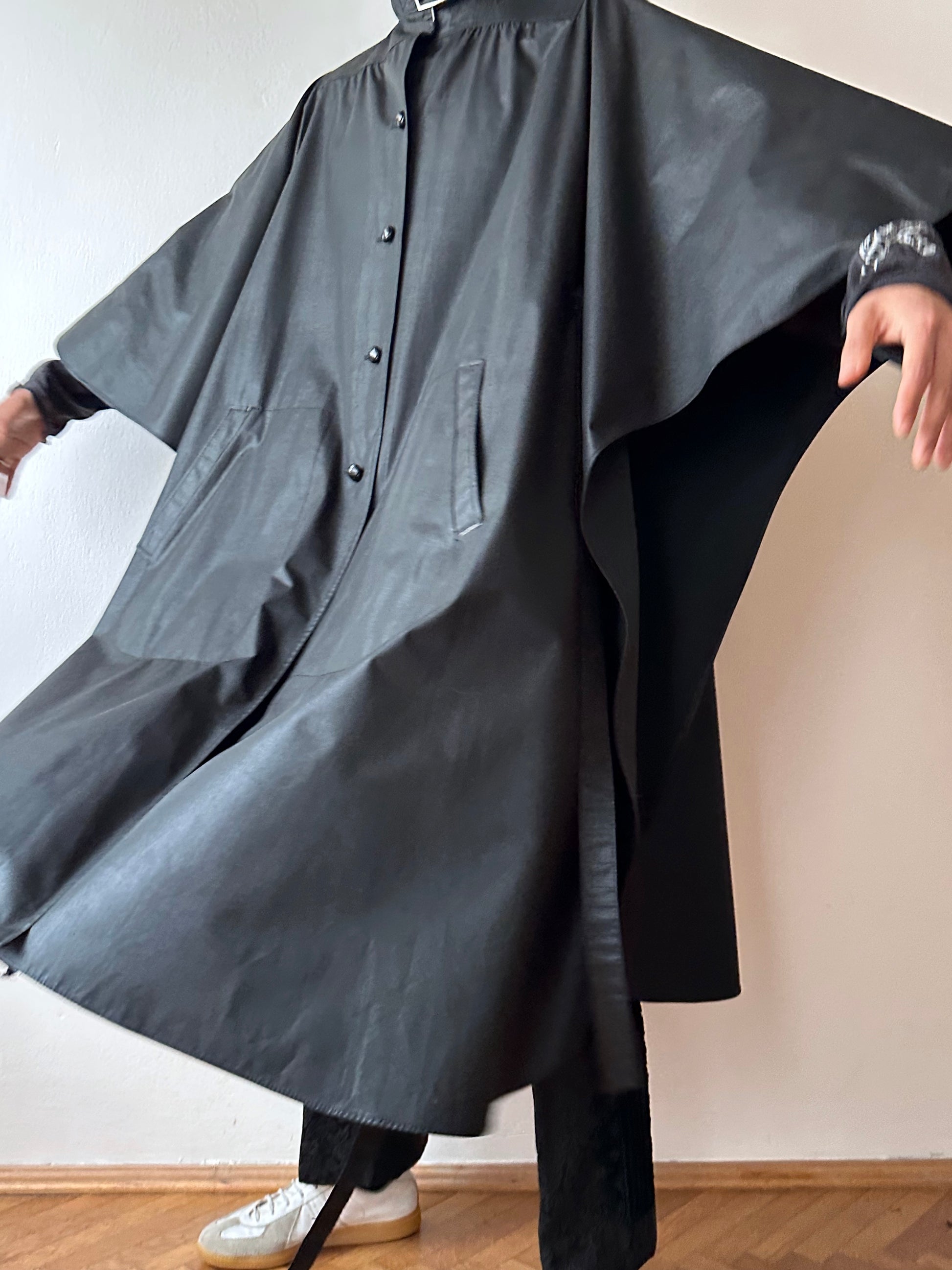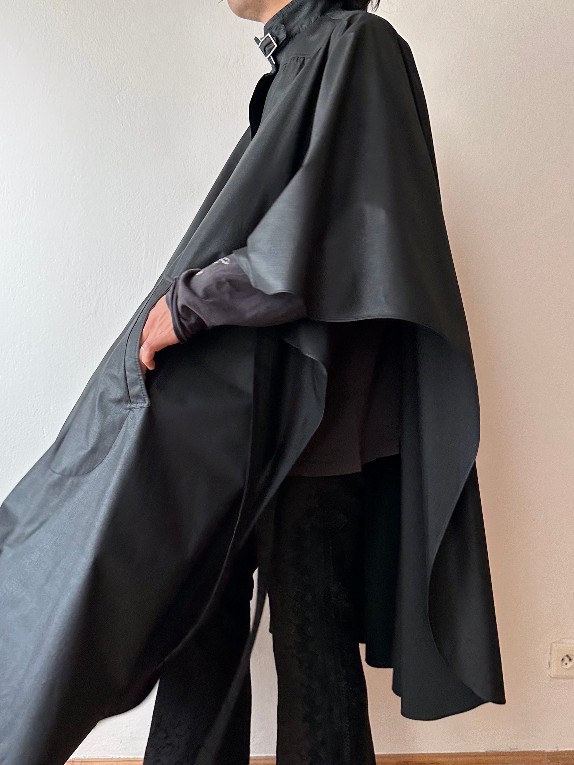 デザインもシルエットも完璧で、特に腰に2つ大きなポッケがちゃんとついているのは嬉しいです。これがるのとないのとでは大きくケープとしての価値が変わってくると思います。笑。本来いらない物ですが、付いているとすっごく嬉しい。笑