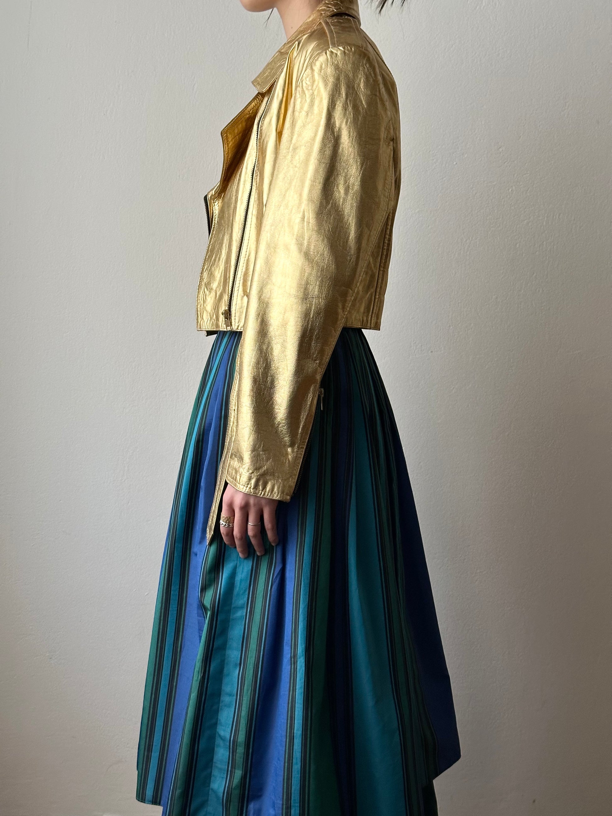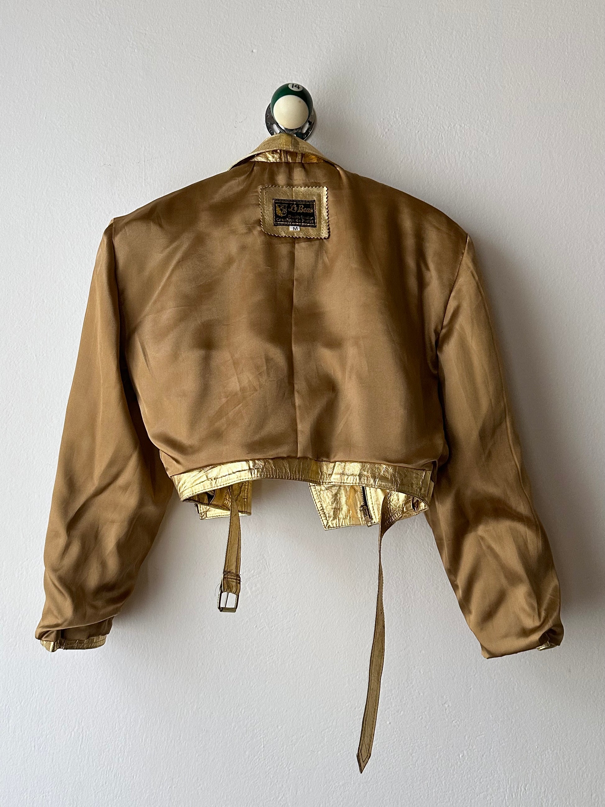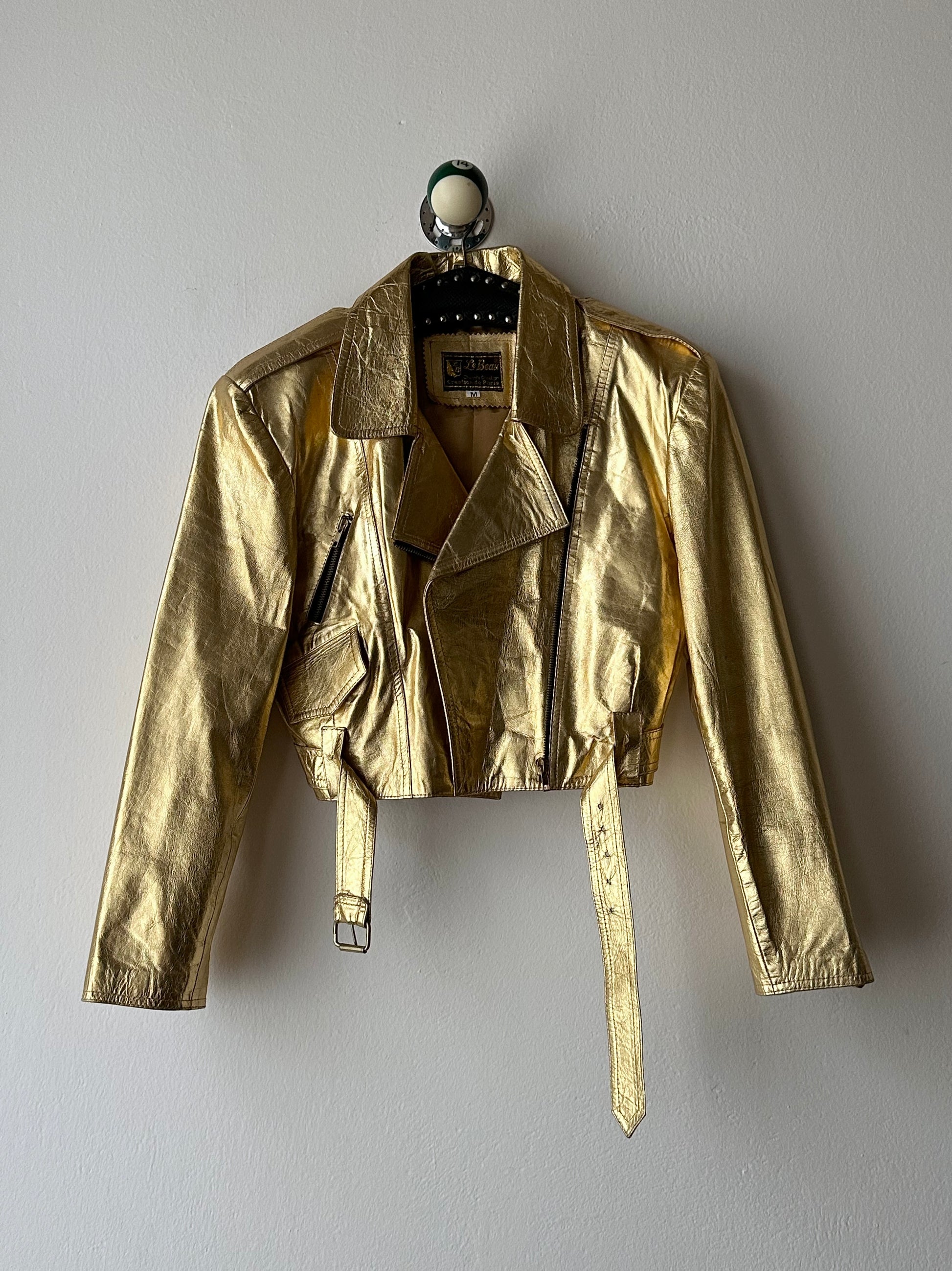 やばすぎるメタリックゴールドのレザーライダースジャケット。
