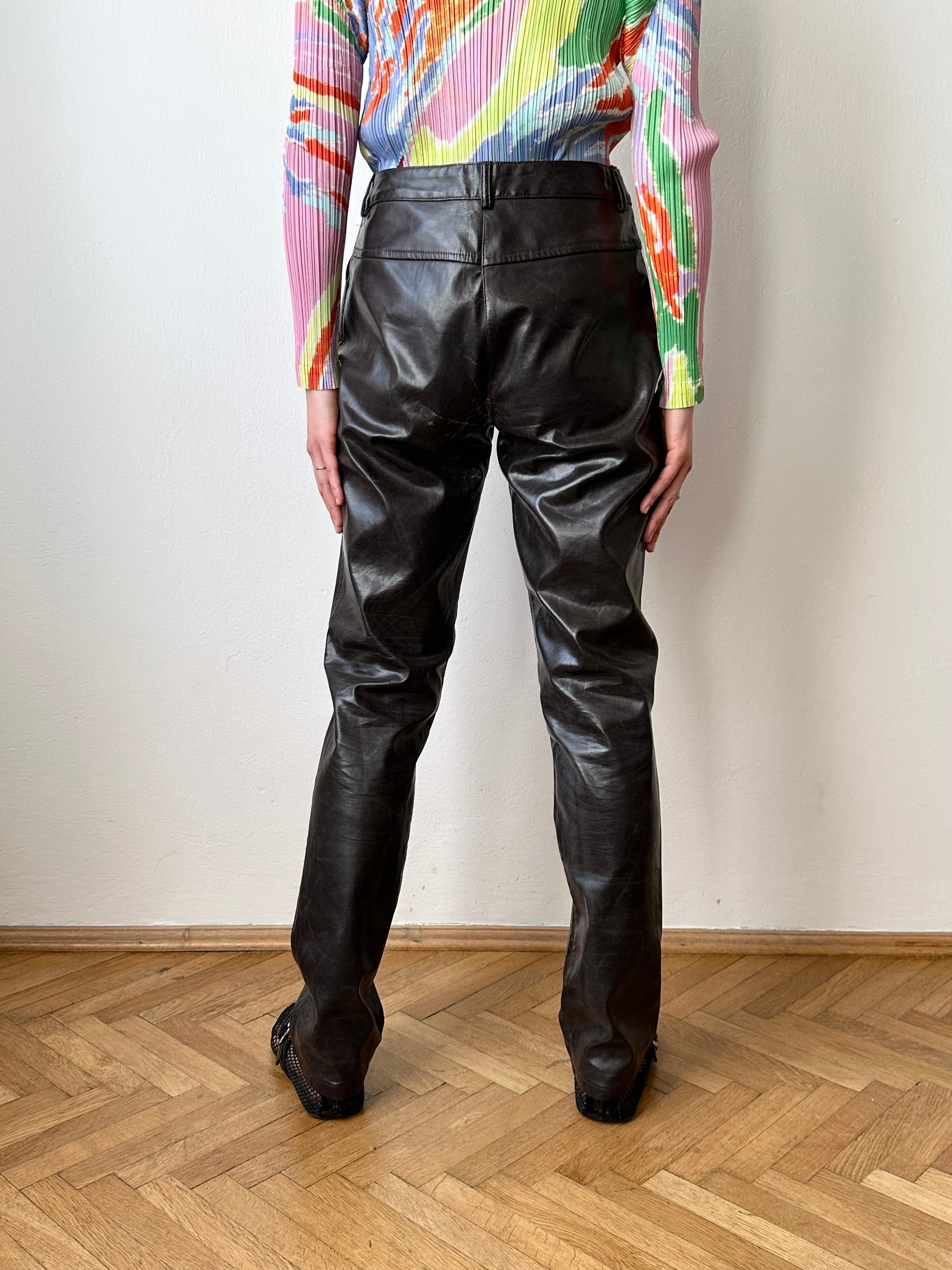 90年代のキャサリンハムネットのコットンポリウレタンのコーティングトラウザー。