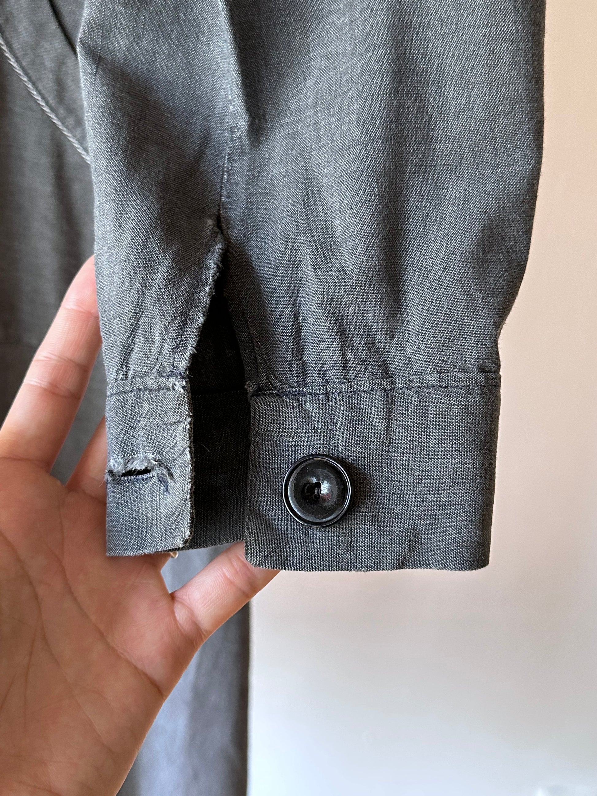 黒々と光るガラスボタンはオリジナル。片袖カフスのみ、プラスチックのワークボタンにリプレイスされています。