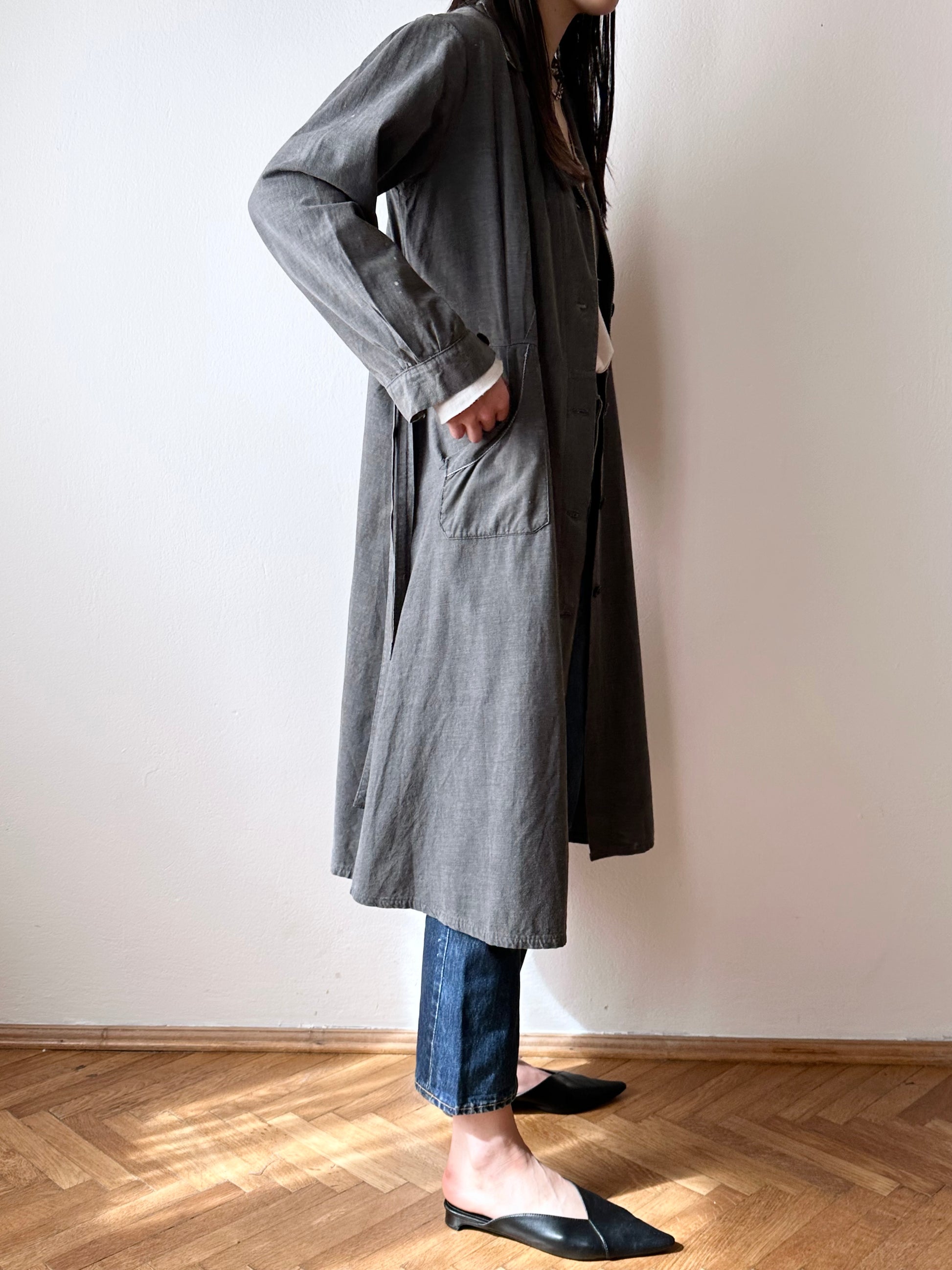 フランスのとても古いコットンシャンブレーシャツコート/ドレス。