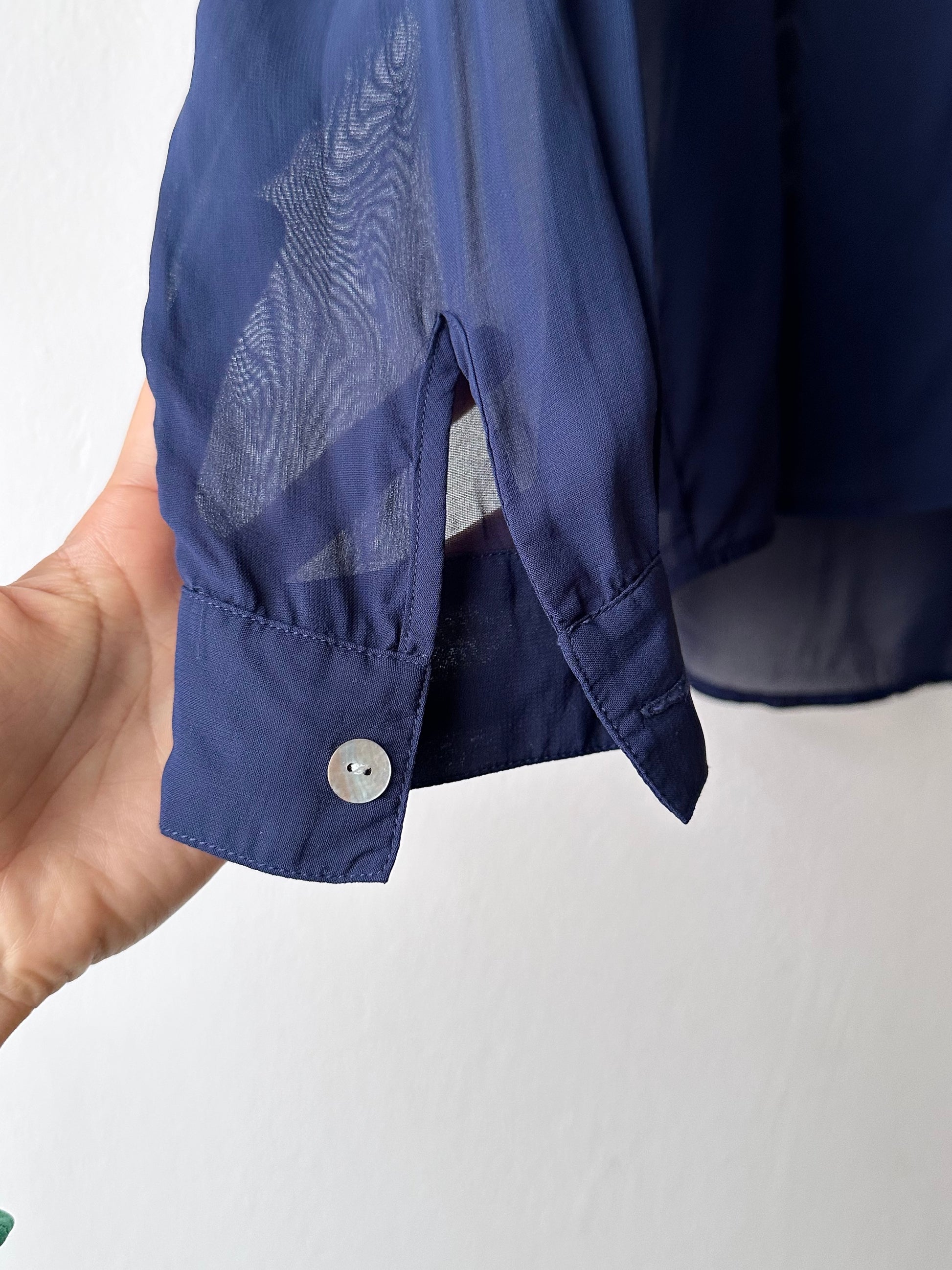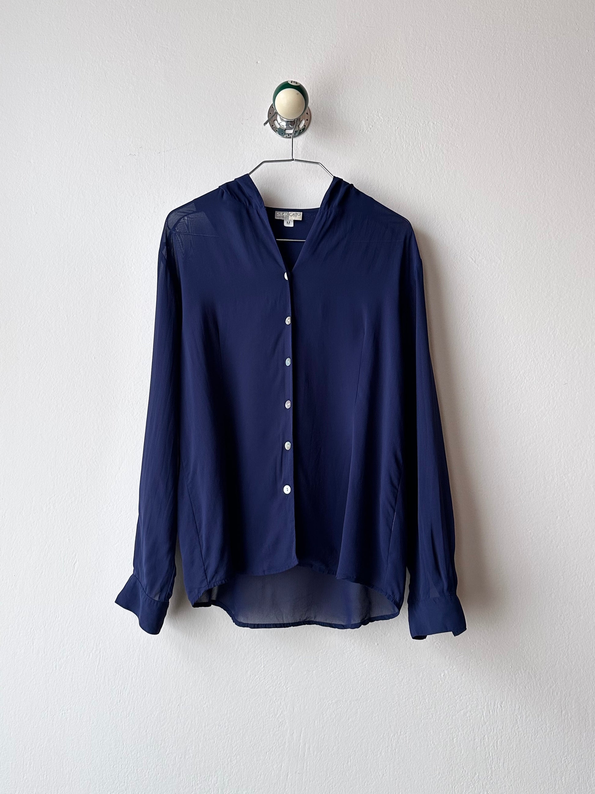 Hooded sheer shirt jacket in navy